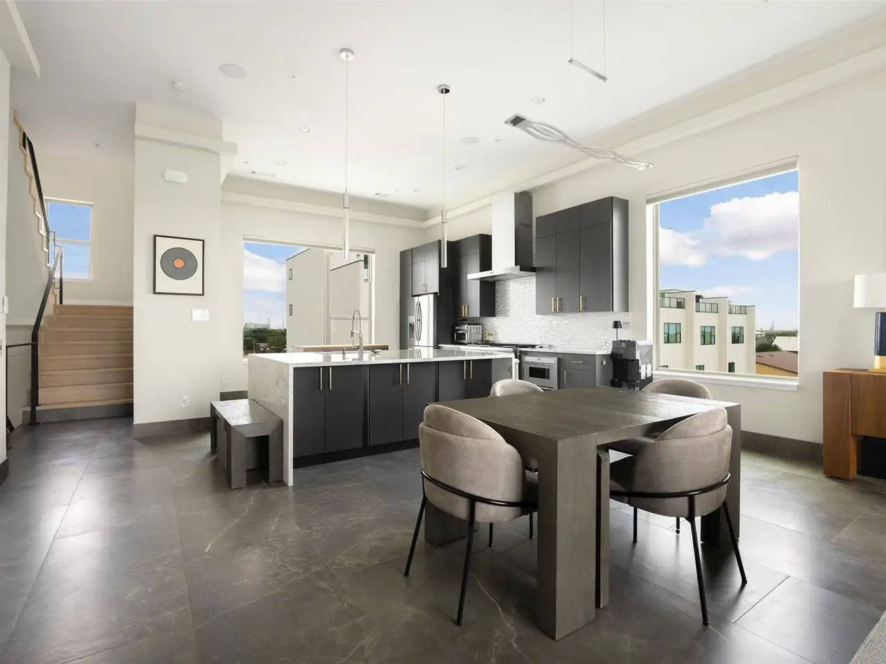 Luxury Corner Townhome with Rooftop Oasis + Smart Home Integration. Experience elevated living in this stunning four-story corner unit townhome featuring panoramic lake views + a fully integrated smart home experience. Built with contemporary elegance and top-tier materials, this newer construction boasts 5-inch wide plank real oak wood flooring throughout every level. With this Smart Home is complete control at your fingertips with whole-home audio, video, lighting, and blinds all operable via the RTI App. Speakers are integrated throughout every room, bathroom, and hallway. All lighting is on Lutron dimming switches, and every window is fitted with custom Hunter Douglas motorized shades. Step out to the Rooftop. Which is a true showstopper... complete with custom flooring, a built-in Coyote grill, outdoor fridge and sink, and two zones of outdoor speakers with a subwoofer. Relax year-round with a full sauna and motorized UV shades enclosing all sides of the pergola. An entertainers dream living room; the custom wet bar is the centerpiece of the living space, featuring a nugget ice maker, beverage fridge, dual-zone wine cooler, dishwasher, glass shelving, and a stunning glass tile backsplash. Step into the Chef's Kitchen with a professional Thermador appliance package, including a 48 6 burner range with griddle, steam and convection ovens, warming drawer, and commercial-grade hood. The showstopping 5x8 dual waterfall quartz island includes hidden storage and is complemented by a food-grade butcher block prep island. All cabinetry throughout the kitchen and bathrooms is high end Milania soft-close. Relax in the Spa-Inspired Bathrooms: Every bathroom features floating Milania vanities with vessel sinks. The primary suite showcases an oversized custom glass steam shower for the ultimate spa-like experience. This home effortlessly blends luxury, technology, + lifestyle perfect for the discerning buyer seeking modern elegance and convenience in one exceptional package.