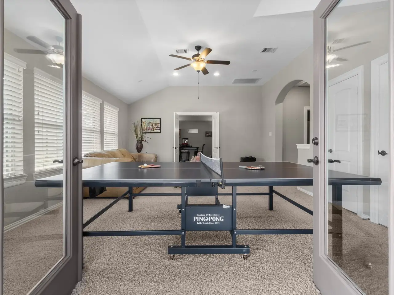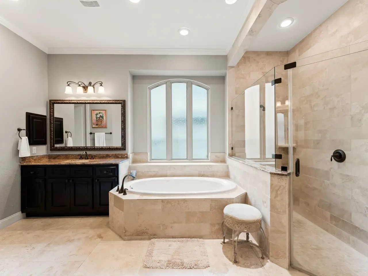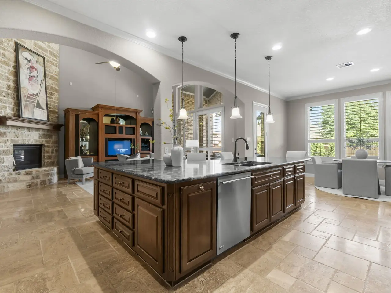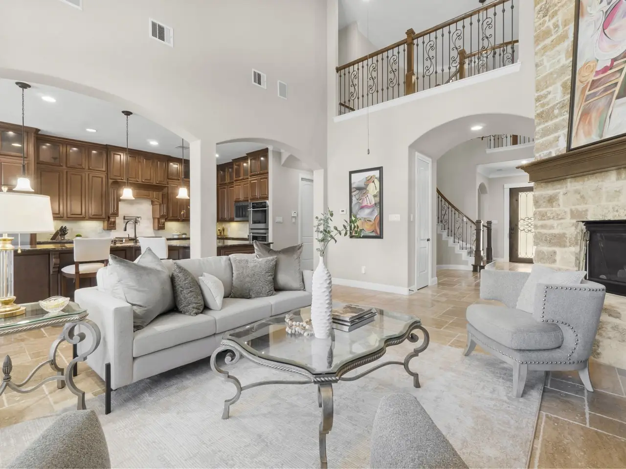 Elegant Tomball Home with Soaring Ceilings, Media Room & Pool