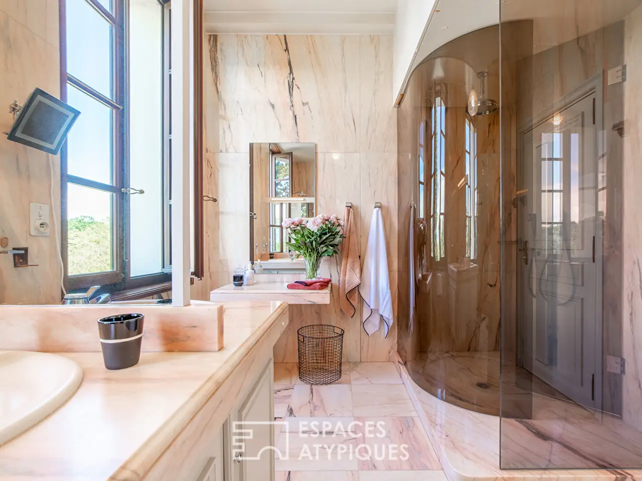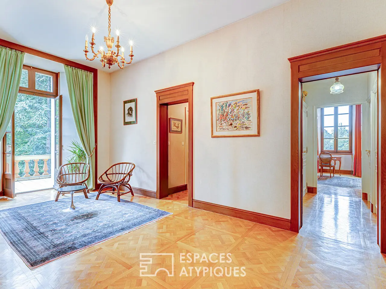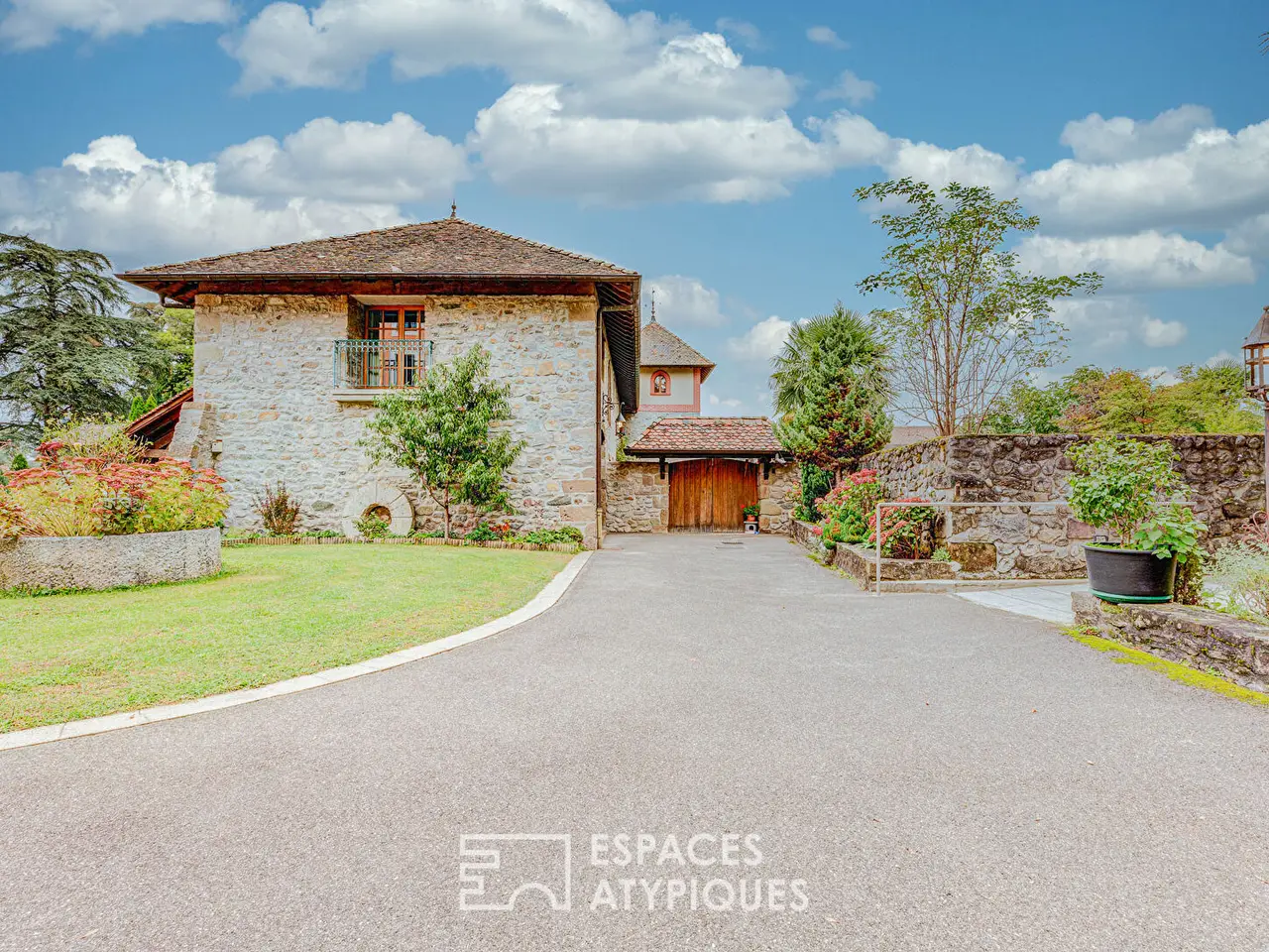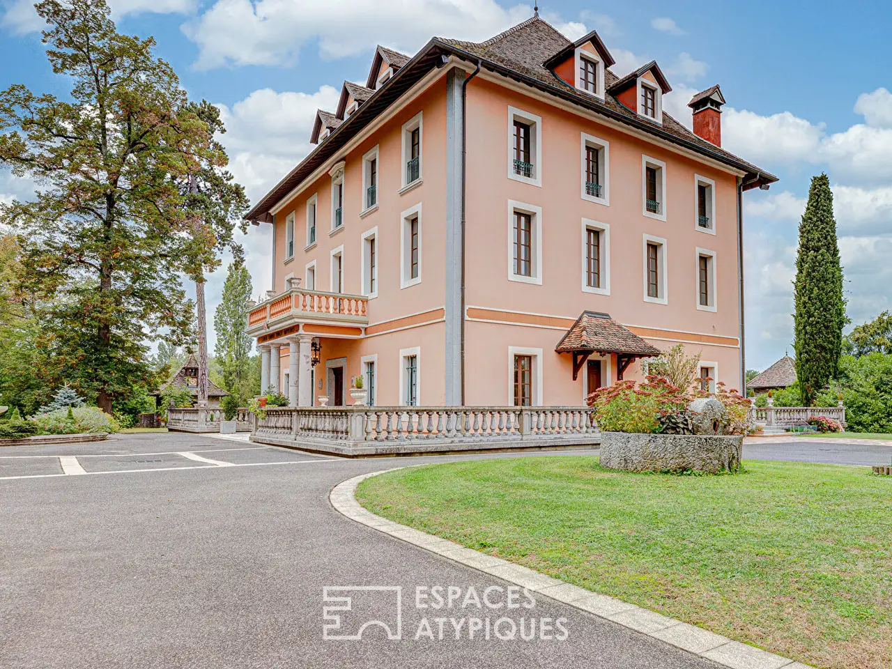 Built under strict protection on the site of the former 17th century castle, this 19th century residence of historic architectural and landscape value was partly restored in 1986, providing 744 sqm of living space. Set in a protected area, sheltered from view by 19,461 sqm of landscaped parklands planted with trees and enclosed by a perimeter wall, it includes an outbuilding with 249 sqm of living space, a private garden, a heated swimming pool, a tennis court and a chapel. The magic happens as soon as you enter. A majestic hall with high, moulded ceilings leads to a study with a wood-panelled bookcase and the living areas. The living rooms comprise a Louis XV-style marble lounge/living room with fireplace, a cosy dining room with French-style ceiling, and a kitchen with dining area and fireplace. All these rooms have direct access to a spacious terrace. A linen room completes this level. The upper floors, reserved for the sleeping area, offer every comfort. On the second level, there are five beautiful bedrooms, each with its own dressing room and private bathroom. One of the bedrooms has direct access to the master suite. This has a dressing room and a sumptuous pink marble shower room with two showers. On the third floor, an unfinished area is being converted into bedrooms and bathrooms. Finally, the fourth floor offers a free surface to be reinvented. The basement has two wine cellars and a vaulted cellar, a storage room and a machine room with a workshop. A lift provides access to the upper floors and basement. Two garages, with a total surface area of around 120 sqm, with space for 5 vehicles, and parking spaces, as well as a helipad, complete this unique and rare property. Close to the lake, shops and schools in the spa town of Thonon-Les-Bains. 30 minutes from the Swiss border and 36 km from Geneva international airport. ENERGY CLASS: E / CLIMATE CLASS: E. Estimated average amount of annual energy expenditure for standard use, based on energy prices for the year 2021: between EUR 14'710 and EUR 19'960. Additional information * 10 rooms * 5 bedrooms * 4 bathrooms * 1 bathroom * 3 floors in the building * Outdoor space : 19461 SQM * Parking : 10 parking spaces * Property tax : 11 250