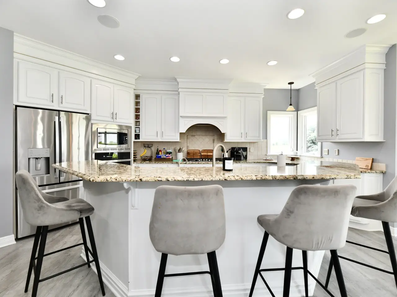 This 5 bedroom, 4 1/2 bath home on over 1.5 acres with a private ski lake in your backyard is the dream you have been waiting for! The kitchen has many features including an island, granite countertops, shaker cabinets, range hood, built in oven and microwave, walk in pantry and a gas stovetop that offers a fantastic cooking experience. In the living room you will notice soaring high ceilings that create an atmosphere of spaciousness and lots of natural lighting, complemented by the cozy ambiance of a fireplace and the decorative detail of crown molding. The main level owner's suite offers its own foyer, double walk in closest, walk in shower, dual vanities, soaking tub and amazing water views. The property offers an outdoor living space on multiple levels including a screened in patio and covered area on lower level which is perfect for enjoying the fresh air and creating lasting memories while watching amazing sunsets. The bar in the basement offers a dedicated space for entertaining with pool table and large sitting area. Located close to I-65 for easy access to almost anywhere. A lot of large items have been recently replaced including windows, roof, siding and HVAC upgrades as well as finished space above the garage.