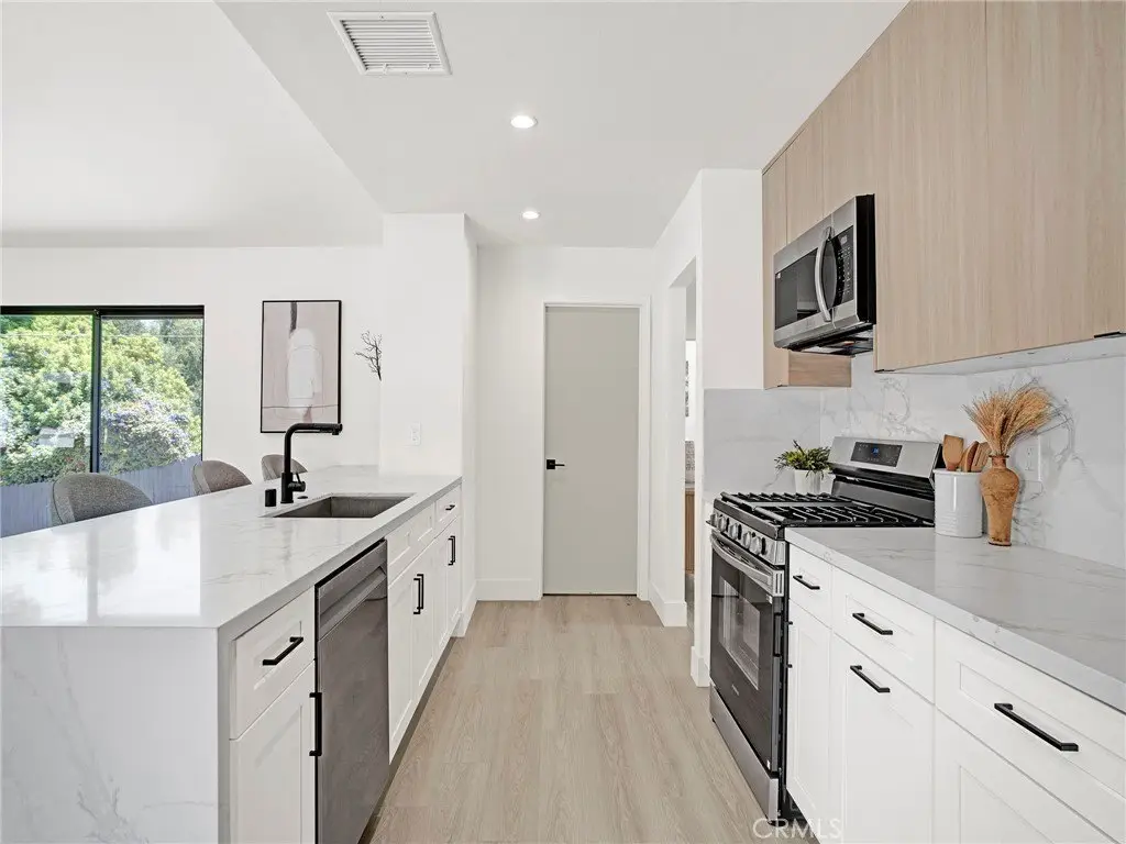 This truly exceptional property has been thoughtfully reimagined from the ground up, offering the perfect blend of modern luxury, functional design, and endless potential on a generous ½-acre lot. Ideally situated in the heart of Thousand Oaks, this beautifully renovated single-story home situated in a cul-de-sac sets a new standard for contemporary living. This home has been extensively upgraded with a brand-new roof, a new kitchen, and a newly plastered pool. Inside, you’ll find smooth-finish drywall, designer lighting, and high-end finishes throughout. The open-concept floor plan flows effortlessly, highlighting natural light and a timeless design. At the center of the home is a chef-inspired kitchen equipped with new appliances. The oversized quartz island and countertops, which offer seating and storage, are ideal for both everyday living and entertaining. Wide-plank laminate hardwood flooring runs throughout the home, complemented by sleek interior doors and thoughtfully designed bathrooms that feel like a spa retreat. The garage has been converted, creating an expansive and sun-filled primary suite that adds incredible value and flexibility. Step outside to a backyard built for both relaxation and possibility. Enjoy wide gated RV access and a deep driveway that runs to the back of the property, perfect for future additions, recreational storage, or custom builds. The large backyard is anchored by a sparkling, newly plastered pool, with ample space to create your dream outdoor oasis. Featuring six bedrooms and three modern bathrooms, this home offers flexibility for multigenerational living, a home office setup, or an income-generating ADU opportunity two of the bedrooms and one bathroom can easily be converted to a separate guest unit. There is no garage, but the large lot offers plenty of space to build one if desired and is conveniently located just minutes from Thousand Oaks High School, the 23 Freeway, Trader Joe’s, Gelson’s, The Oaks Mall, and some of the area’s top-rated schools and amenities. This rare, move-in-ready gem won’t last long. Experience the lifestyle, space, and value this extraordinary home offers. Schedule your private tour today!