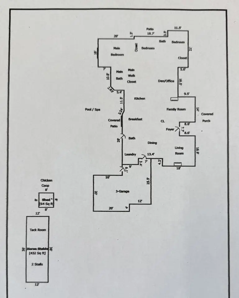 Single-Story Home With 4 Bedrooms, 3 Bathrooms, 2808 SF Of Living On 5 Acres With Gated Entry. Flagstone Path To Front Door & Covered Patio With Views. Chef's Kitchen With Granite Countertops, Stainless Steel Appliances, Electric Cooktop, Breakfast Bar, Skylight, Bay Window, Double Dishwasher With 2 Drawers, Built-In Bar With Wine Refrigerator & Pantry. Wood Laminate Floors Throughout Main Living Areas. Large Room Off Kitchen With Brick Fireplace, High Ceilings, Open Wood Beams & French Doors That Lead To The Front Covered Patio. Bright & Open Living Room With Marble Fireplace. Formal Dining Room With Tile Floor & Ceiling Fan. Guest Bedrooms Feature Mirrored Closet Doors & Ceiling Fan. Full Bathroom Includes Dual Sinks, Tile Countertops & Shower/Tub Combo. Additional Room With Built-In Cabinets & Ceiling Fan. Spacious Primary Suite Offers Vaulted Ceilings, French Doors, Dual Sinks, Jetted Tub, Walk-In Shower, Recessed Lighting & Walk-In Closet With Organizers. Separate Laundry Room With Cabinets, Sink, Washer/Dryer & Adjacent Full Bathroom With Walk-in Shower. Plantation Shutters Throughout, Dual Paned Windows, A/C, Skylights, Concrete Tile Roof, Storage Shed & Walk-In Attic With Full-Size Storage. Pebble Tech Pool & Spa With Cascading Waterfall, Covered Patio, Orange, Lemon & Over 400 Avocado Trees. Room To Park RVs, Horse Trailers, Toys & More. 3-Car Garage Includes Dog Wash, Sink & Ample Storage. 2-Stall Barn, Chicken Coop, Fencing & Zoning For Multiple Horses.-