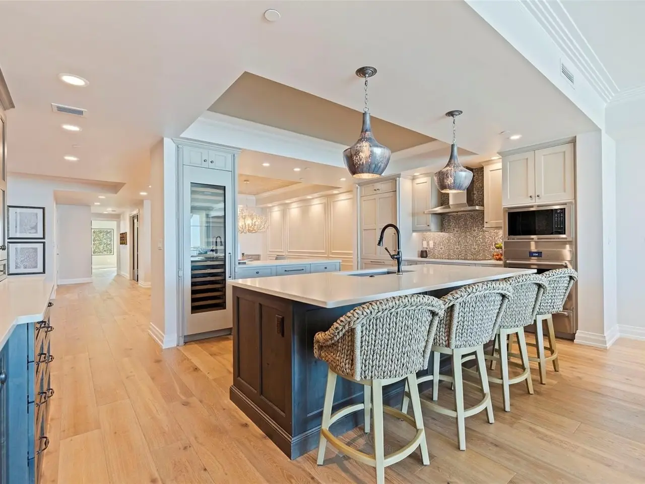 Your Exclusive Island Escape Awaits! Upon arrival, step off the elevator directly into your private foyer, where elegant designer lighting welcomes you. As you enter this bright and spacious residence, you are met with sweeping views of the white, sandy beach and the sparkling Gulf waters. The natural oak floors create a warm, inviting atmosphere. The dining area immediately catches the eye, featuring a stunning coastal chandelier. The chef-inspired kitchen with two-tone cabinetry and custom Italian tile backsplash adds texture and sophistication to the space. The premium appliances include a paneled Sub-Zero refrigerator, double wine cooler, Wolf convection oven, induction cooktop, and microwave. The open living room includes a built-in electric fireplace as well as floor-to-ceiling, hurricane rated, sliding doors with Lutron blinds. The sliding glass doors open to an oversized patio offering the perfect space to view the stunning Florida sunsets. The primary suite offers his & hers, walk-in closets, beachfront views, patio access, and a luxurious en-suite with a large tub, walk-in shower & double sinks. A split-floor plan places the office, with glass doors for privacy, on one side, while two en-suite guest bedrooms occupy the opposite wing. Guest rooms enjoy views of the Island and the Sunshine Skyway bridge, along with a secondary patio. Additional features include a laundry/utility room, air-conditioned storage and a private, two-car garage with built-in cabinets. Sunset Pointe at Collany Key is Tierra Verde’s most prestigious, gated, Gulf-front sanctuary, celebrated for its resort-caliber amenities, seclusion and luxury. Residents enjoy private beach access, a geo-thermal salt-water pool with spa, a beachside firepit, multiple grilling areas, and a premier fitness center. Pet-friendly with a dedicated dog park, the community offers a floating launch, private boardwalk and fishing pier, walking trails, the Sunset Point Pavillion with bocce courts and a seven-hole putting and chipping green. There are many restaurants nearby, and a short, 15-minute drive to vibrant downtown St. Petersburg. Traveling is easy with a 45 minute drive to Tampa International Airport and 20 minutes to St. Pete - Clearwater International Airport. Call today to arrange your private showing!
