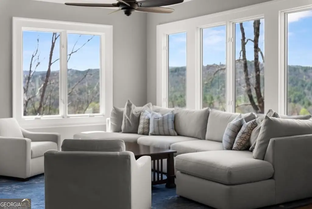 Nestled amidst the serene splendor of Tiger Mountain, this breathtaking 9-acre homestead seamlessly blends natural beauty with refined luxury. Located just 90 minutes from the heart of Atlanta and 12 minutes from the shores of Lake Burton and the charming town of Clayton, this property offers the perfect balance of accessibility and tranquil retreat. Perched high up the mountain the homestead boasts uninterrupted, panoramic views of pristine wilderness, facing expansive land managed by the US Forest Service-ensuring a timeless sanctuary with little chance of future development. Surrounded by towering hardwoods and the gentle whispers of nature this estate invites you to unwind and reconnect. The sprawling acreage provides endless possibilities whether you envision private hiking trials, a thriving garden, or simply a haven of peace and privacy. At the heart of this retreat lies an outdoor oasis designed for unforgettable gatherings: a heated pool with attached jacuzzi and cascading waterfall, a fully equipped outdoor kitchen, and a cozy fire pit area. All are crafted to elevate entertaining to a luxurious art form. Imagine hosting family and friends under the open sky, with ample space to invite then all- these amenities promise cherished memories filled with laughter, warmth and relaxation. The multilevel, Craftsman style, main house and accompanying pool house offer 8 spacious bedrooms, 8 full and 3 half bathrooms ensuring comfort and privacy for every guest. Enter the beautiful alder wood front door to discover rich hardwood floors that flow throughout. Ten-foot ceilings and eight-foot doors create an airy, expansive ambiance in every room. Adding to the allure are two stone fireplaces for those cool evenings. The owner's suite elevates luxury further with a spa-inspired bathroom featuring marble tile and a beautiful soaking tub room with a view overlooking the mountains. Convenience meets indulgence with two full kitchens, two additional kitchenettes, four laundry areas and a rejuvenating indoor sauna. Every detail has been thoughtfully designed to make life effortlessly enjoyable whether you're preparing a feast, unwinding after a day of mountain or nearby lake adventures or simply soaking in the serenity. From the crisp mountain air to the star-filled skies, this Tiger Mountain gem promises a lifestyle defined by natural wonder, boundless possibilities and the ultimate in sophisticated comfort. Imagine the memories waiting to be made in a place where luxury and nature unite in perfect harmony.