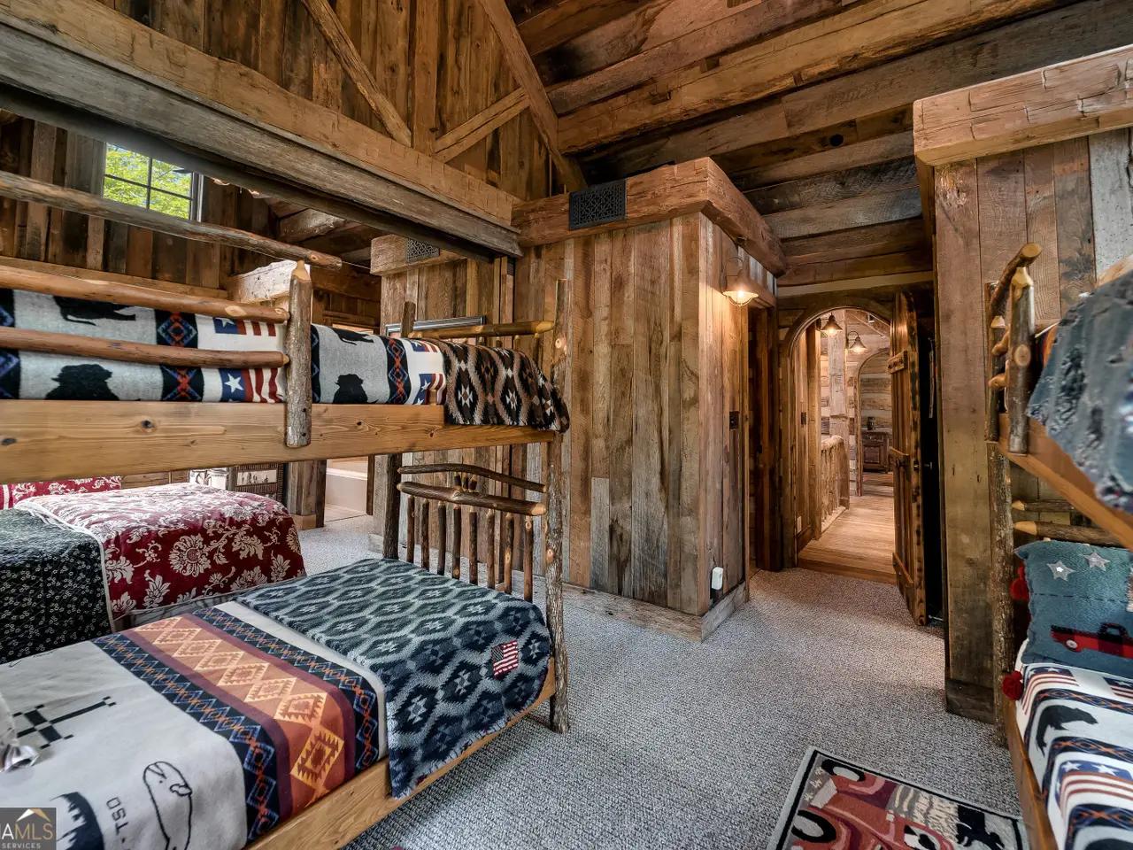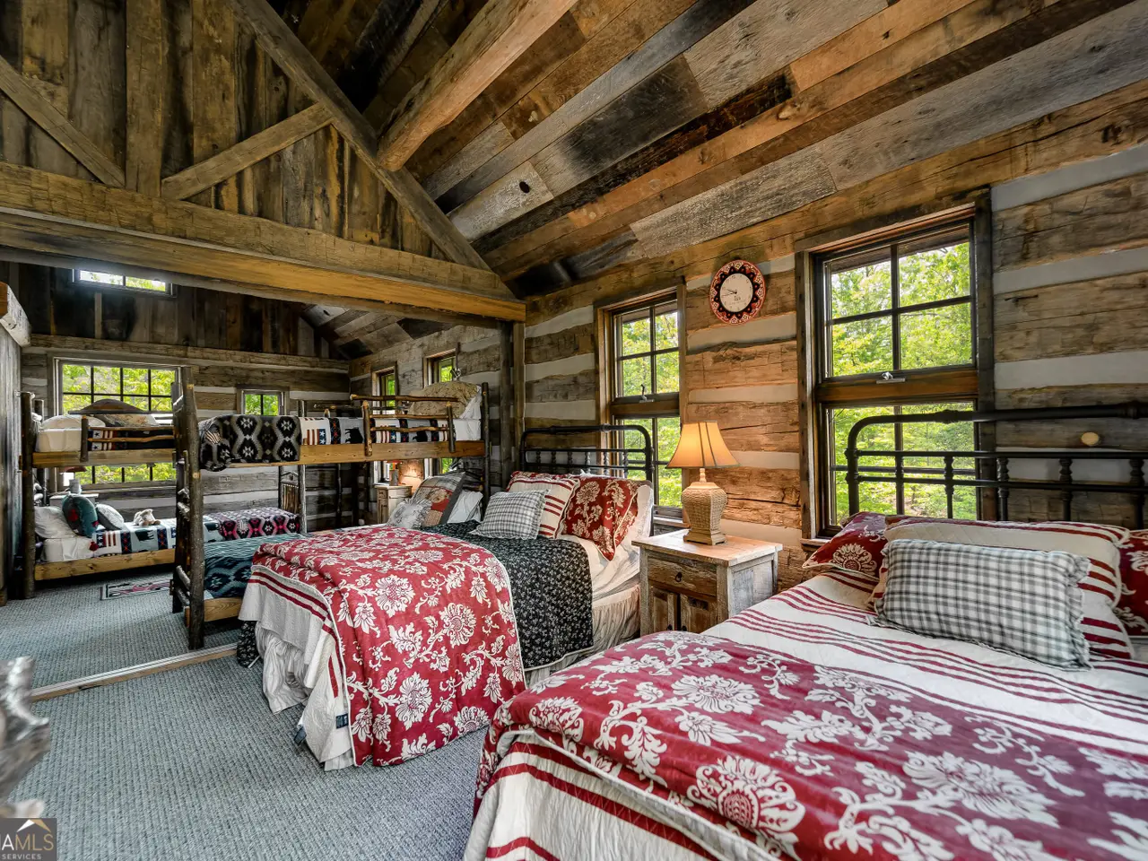 Once-in-a-Lifetime Private Island Estate on Lake Burton Discover the pinnacle of lakeside luxury with this extraordinary 6,186 sqft mountain lodge, perched on its own private island in the heart of Lake Burton's coveted big basin. Offering 360- degree lake and mountain views, total privacy, and Yellowstone-inspired rustic elegance, this one-of-a-kind estate redefines waterfront living. Crafted from reclaimed timbers sourced from Southern cotton mills, the residence exudes old-world craftsmanship and frontier charm. Hand-hewn oak siding with classic chinking, dry stack Tennessee fieldstone, rough-sawn wide plank oak floors, and steel structural supports anchor the home with strength and character. An elegant entry foyer welcomes you from two directions, showcasing east and west views through an open riser staircase with reclaimed treads and flagstone flooring. The soaring great room features lake views from 2 walls, a dramatic cupola, flanking fireplace posts reclaimed from Zachary Taylor Scott's historic home, and a moose antler chandelier complete with a buckshot hole. The chef's kitchen blends style and substance with black soapstone countertops, custom barn wood cabinetry, Viking 6-burner range, dual Bosch dishwashers, refrigerator drawers, custom soapstone sinks and two pantries. The private owner's suite features 3 walls of lake views, a barn wood clad vaulted ceiling and stone fireplace. Each guest bedroom offers unique views and details. The main floor provides 2 guest bedrooms, each with chinked log walls and a private bath. Upstairs, a clever bunk room offers access from 2 separate hallways with a full bath on each end. A large hidden pocket door opens to separate the space into 2 separate bunkrooms when desired. A library with a vaulted ceiling and lake views is currently styled as another guest bedroom upstairs. The terrace level offers a spacious yet cozy media room with a wall of bunk beds against the back wall, a kitchenette with a full fridge/freezer combo, range, sink and dishwasher and laundry room with sink. The gym was designed to mirror the upstairs bunk room, featuring full bathrooms on each end. This space could easily be converted into 2 separate guest bedrooms with the addition of a wall. Outdoors, expansive flagstone patios wrap the home offering views from all directions. Meandering trails of recycled tire wrap the Island, leading to the east wharf and swim dock, putting green, and west side 2-story, 2-stall covered boathouse overlooking one of the most epic sunset views on Lake Burton. Additional Details include: self-contained fire suppression system, copper-clad Kolbe windows, antique terracotta tile, LiteTouch lighting system, extensive security system, 1GB Fiber Optic Internet, slate roof, lightning rods, Generator, central vac. Proof of Funds required before showing. There are security surveillance cameras throughout the island. Do not attempt to access the property without listing agent being present.