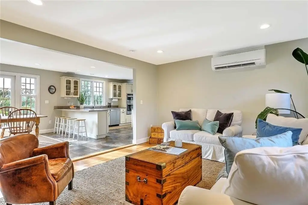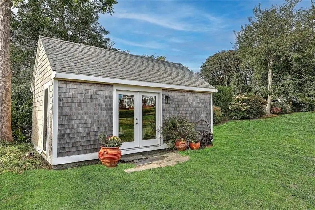 Just steps from the Sakonnet River, with deeded shoreline access and a mooring, 80 Leonard offers the best of coastal living. This 3-bedroom home features an updated, open floor plan that flows effortlessly from kitchen to dining to living areas—perfect for entertaining or simply enjoying the relaxed seaside lifestyle. A first-floor bedroom with fireplace, two additional bedrooms and a full bath upstairs, and fully renovated bathrooms throughout provide comfort and flexibility. Multiple doors open to expansive decks and a generous lawn, where sweeping sunset views over the water create the ideal backdrop for gatherings. Privately tucked at the end of a cul-de-sac, the property also includes an attached garage, a 300 SF studio/retreat, and an outdoor shower for rinsing off after a day on the water. Whether year-round or seasonal, this home is a true coastal retreat.