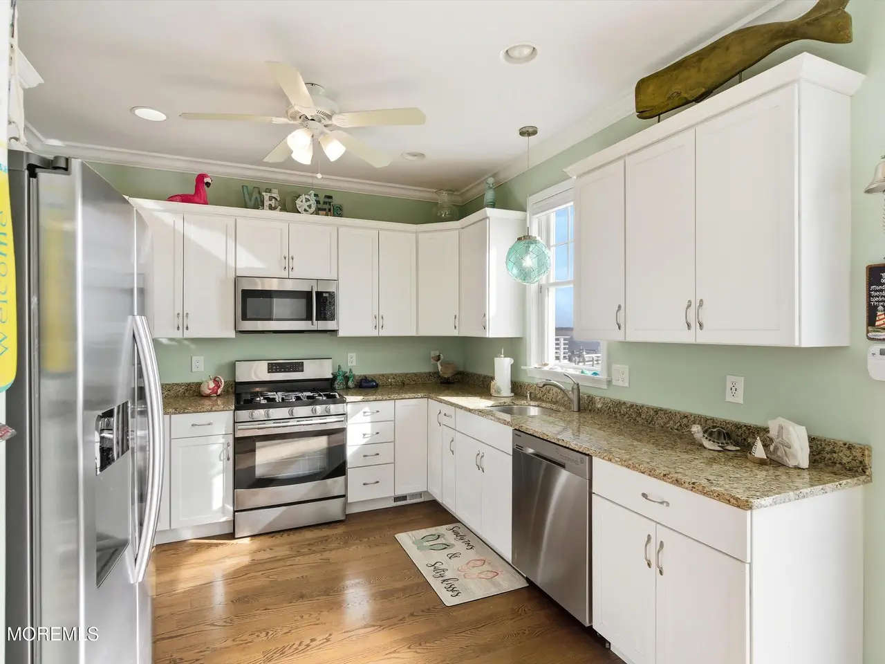 Experience coastal luxury in this beach-chic home built in 2016, located in the highly sought-after Green Island waterfront community. This spectacular Bayfront property offers breathtaking views that you'll fall in love with from both inside and out. The bright and inviting interior features sun-filled rooms, gleaming hardwood floors, and a cozy gas fireplace. The gourmet kitchen is fully equipped with granite countertops and quality finishes, while each of the three pristine bathrooms includes granite-topped vanities. Andersen 400 Series windows and motorized shades enhance both comfort and style. Step out onto the front balcony to enjoy tranquil bay breezes or relax on the rear deck just off the kitchen, perfect for watching sunrises and sunsets. The large pier is complete with two jetski lifts, a boat lift, water, and electric, offering everything you need for waterfront living at its best. Enjoy two nearby beaches and parks, plus an unbeatable location close to shopping, restaurants, and all the Shore has to offer. This vibrant Bayfront home is a must see come experience the lifestyle you deserve!