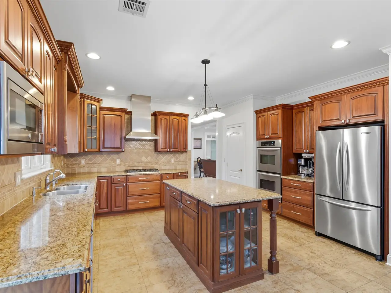 Gourmet chef's kitchen with granite countertops