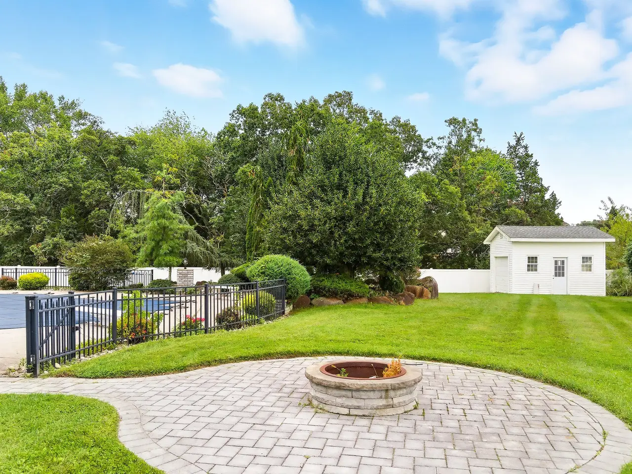 Landscaped yard backing to woods