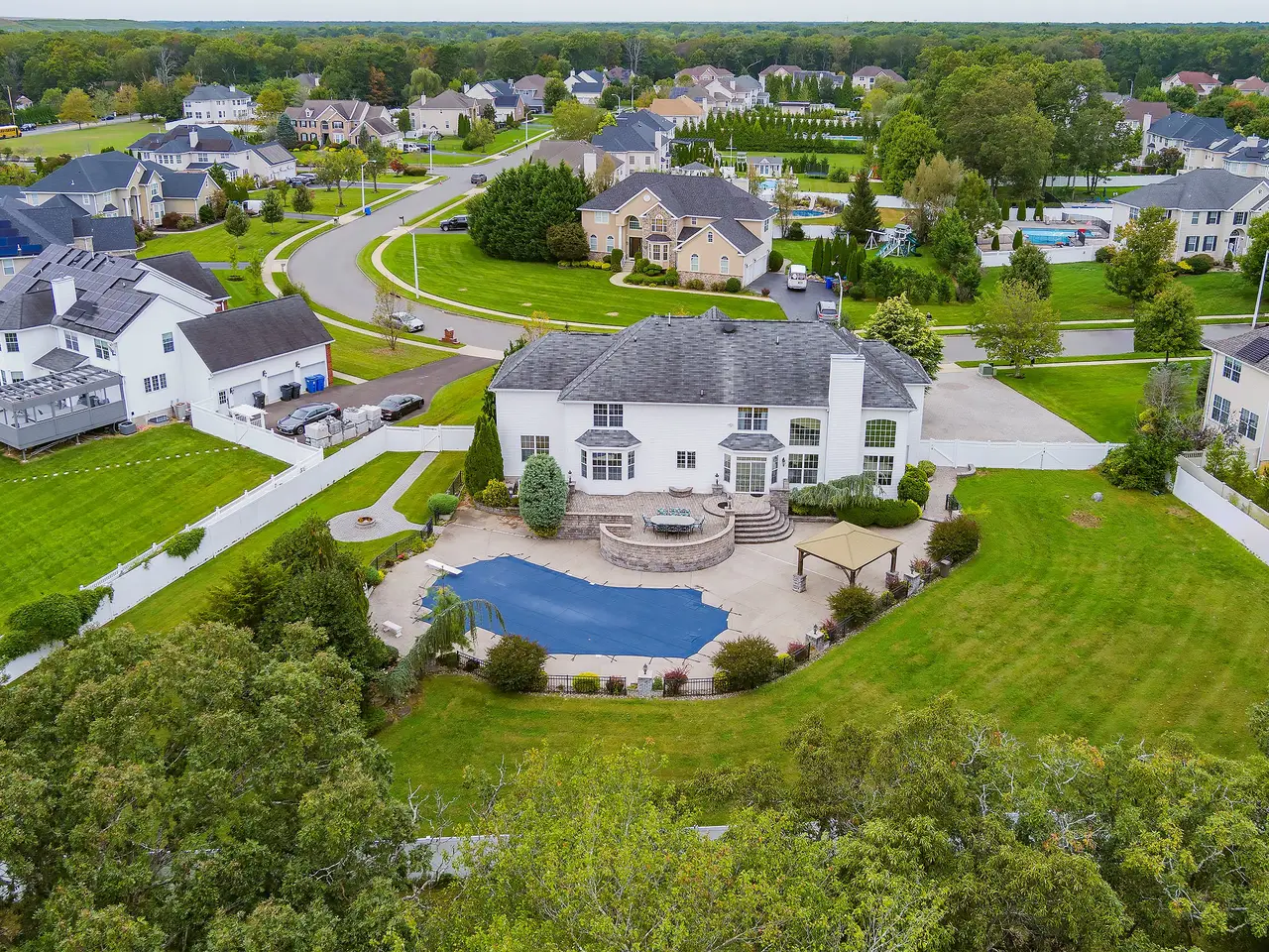 Welcome to Charlton Circle - one of North Dover's most exclusive addresses. This striking white stone and stucco colonial blends luxury, family comfort, and entertainer's appeal in one incredible package. The beautifully landscaped, fenced-in yard backs to woods for privacy and features a wide paved driveway plus an oversized heated inground saltwater pool your own backyard oasis, ideal for summer gatherings. Inside, gleaming hardwood floors and custom trim and molding elevate every room with timeless sophistication. The gourmet chef's kitchen shines with granite countertops, 42-inch custom cabinetry, and ample space for meal prep and entertaining. A formal living room with fireplace, dining room, and a first-floor office (or bedroom) provide flexibility. Additional highlights include a cozy sitting room and a spacious bonus room with French doors perfect for a media room, second office, playroom, or private retreat. Upstairs, discover four generously sized bedrooms and two full baths. The primary suite is a retreat of its own, featuring an additional bonus area ideal for a massive custom closet, home gym, or private study, plus another large walk-in closet. The finished basement is a home within a home, complete with a full bathroom, a second kitchen, an enclosed room, and plenty of storage - perfect for guests, extended family, or entertaining. All this sits on a generous lot in highly sought-after North Dover, close to beaches, shopping, dining, and commuter routes, yet tucked away on a quiet and prestigious circle. Whether hosting poolside parties, enjoying quiet family time, or creating multi-generational living with the finished basement, this home has it all. A rare find where elegance, practicality, and entertainment come together seamlessly.