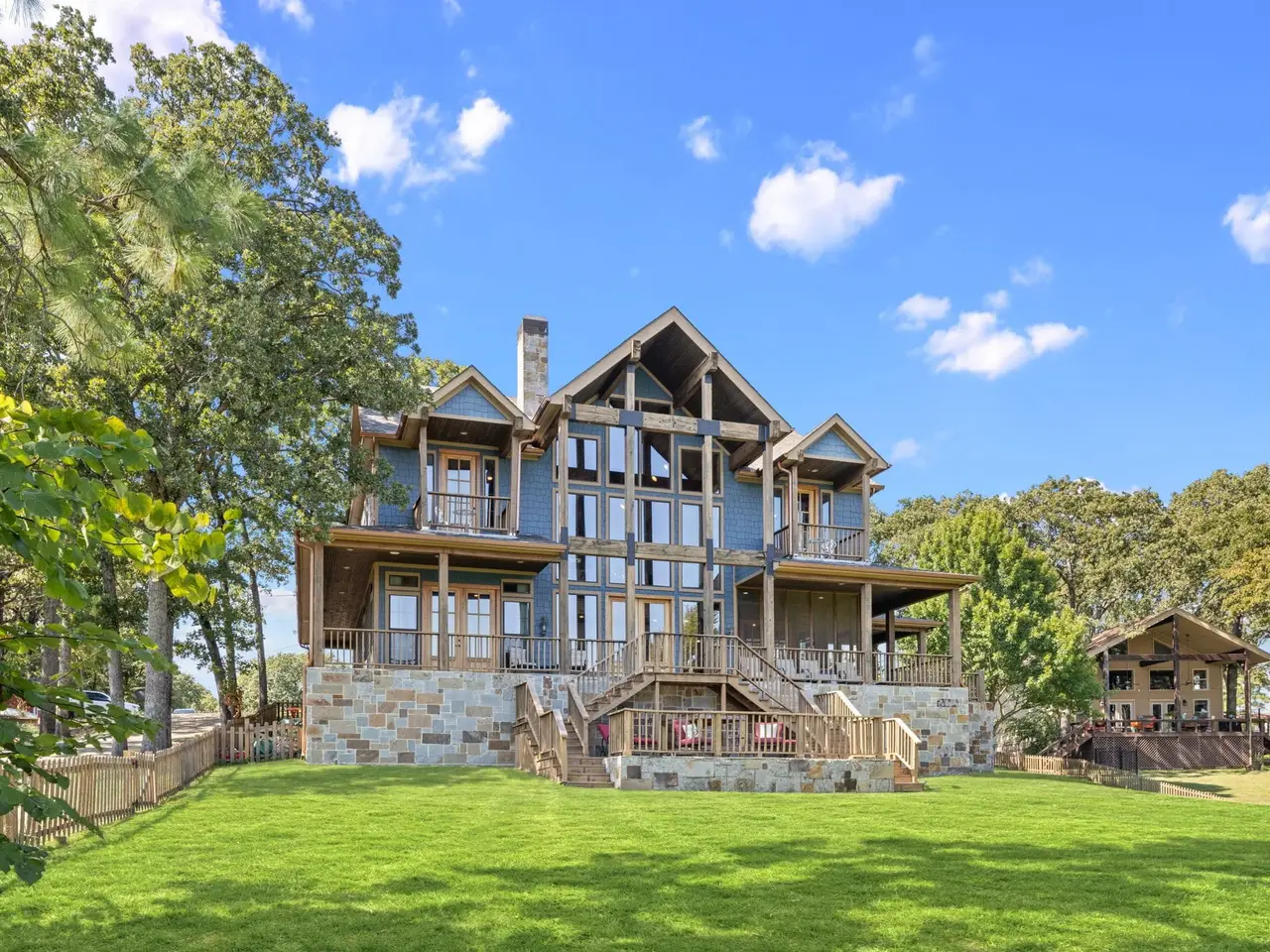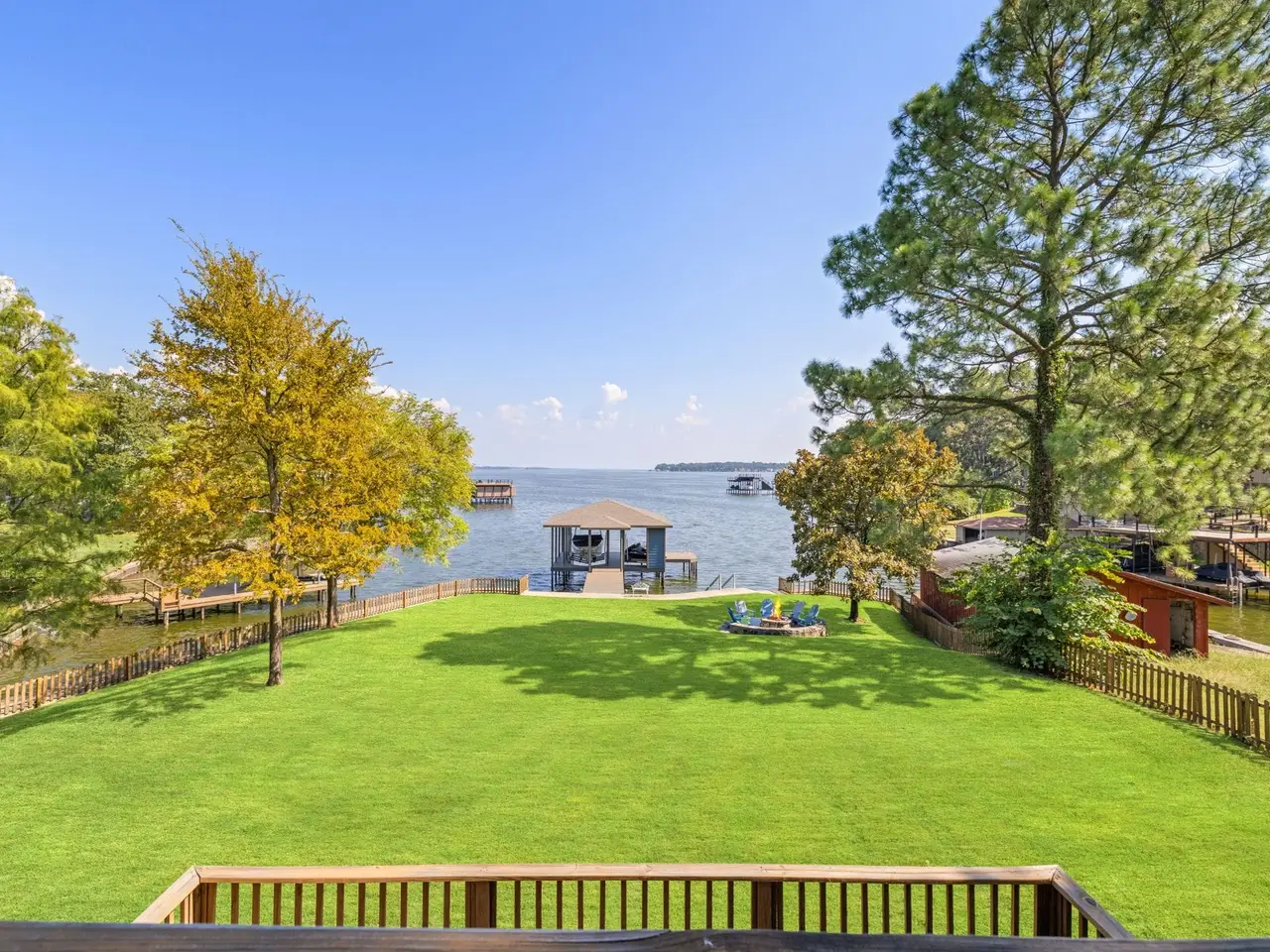 Set on the coveted shores of Cedar Creek Lake, this five-bedroom, three-and-a-half bath masterpiece redefines lakefront living with 2,933 square feet of refined comfort and style. Showcasing rustic elegance at its finest, the home features dramatic ceilings, striking wood and stone accents, and an open floor plan wrapped in windows that capture dazzling water views from every angle. Designed for both grand entertaining and relaxed living, the residence offers multiple patios, a wraparound porch and an expansive backyard anchored by a lakeside firepit. Whether hosting sunset dinners by the built-in outdoor grill, enjoying morning coffee on the porch, or gathering under the stars, every moment here feels like a private retreat. Direct access to the water elevates the experience, with a private boat ramp and dock offering endless opportunities for boating, fishing, and waterfront leisure. After a day on the lake, retreat to your serene patio or welcome guests with ease thanks to ample parking and thoughtfully designed outdoor spaces. Rarely does a home of this caliber become available combining rustic charm, modern luxury, and unrivaled lakefront access in one of the area’s most desirable settings. Perfect as a year-round residence or a luxurious getaway, this property represents the pinnacle of Cedar Creek living.