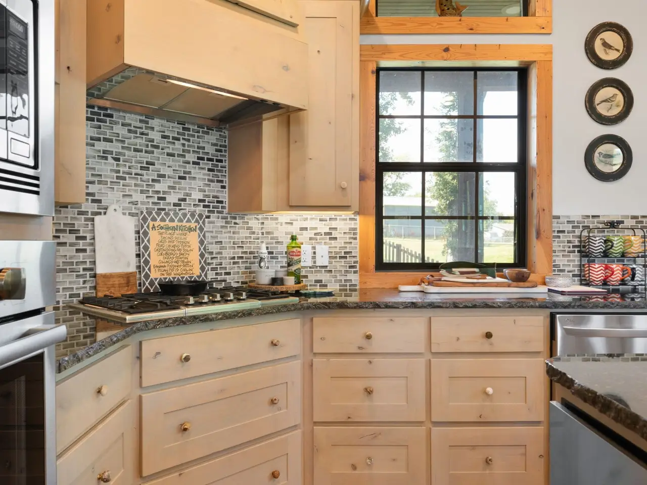 • Stone and wood accents