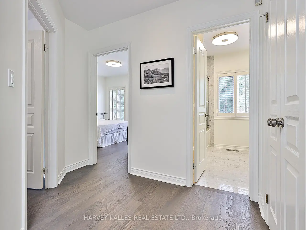 Welcome to 8 Weetwood Street, a beautifully updated family home on a rare, child-safe cul-de-sac in the heart of Bedford Park-Nortown. Perfectly situated just steps from Avenue Road, top-rated public and private schools, parks, shops, and transit, the location is truly exceptional. Set on an impressive 30' x 150' lot, the home offers approximately 2,186 sq. ft. above grade plus a fully finished lower level. A thoughtful blend of classic design and modern upgrades, the residence features new hardwood flooring, pot lights, and a frameless glass staircase railing. The chef's kitchen features granite counters, custom cabinetry, and stainless-steel appliances, and opens seamlessly to the breakfast area and family room with built-ins and a wood-burning fireplace. Upstairs, the vaulted-ceiling primary suite is a private retreat with his-and-her walk-in closets and a spa-like 5-piece ensuite. Two additional bedrooms are generously sized and share a renovated 5-piece bath. The finished lower level features a recreation room, 3-piece bath, laundry, and direct garage access. Recent updates include a new roof and skylight (2024), new garage door, interlock walkway, and refreshed front landscaping (2025), and new HVAC ensuring peace of mind for years to come. The deep, landscaped backyard with mature trees offers exceptional privacy and ample room for recreation or entertaining. Additional highlights include a built-in double garage with private drive, backup generator, central vacuum, smart home features, and a security system. Built in 1994 and meticulously maintained, this move-in-ready home combines timeless curb appeal with modern convenience in one of Toronto's most coveted neighbourhoods.