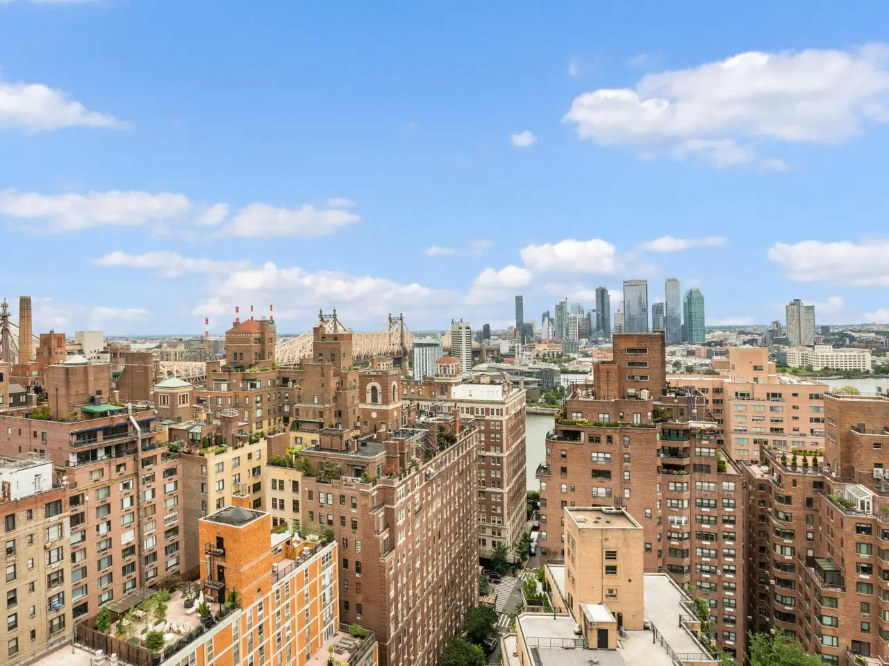 Welcome to Residence 26L at Plaza 400 - A Bright and Expansive Corner Home with City and River Views Step into this stunning, nearly 1,500 square foot two-bedroom, two-bathroom residence perched high on the 26th floor, where open skies and sweeping river and city views surround you from three exposures. A private balcony invites you to soak in the sun or unwind with a glass of wine as the skyline unfolds before you. This sun-drenched home features an expansive and flexible layout with a grand living room that easily accommodates a separate formal dining area or the opportunity to create a windowed eat-in kitchen while still maintaining a generous dining space. Perfect for entertaining or simply living in comfort and style. The king-sized bedrooms are thoughtfully split for optimal privacy and share no adjoining walls with neighboring units, offering exceptional tranquility. The primary suite boasts direct river views, a windowed en-suite bath, and a linen closet for added convenience. Storage abounds with seven oversized closets, including three walk-ins and a spacious 6" x 11" entry foyer. Lovely parquet floors run throughout the home, and a discreet service entrance adds to the functionality of this elegant layout. Plaza 400 is a prestigious, white-glove, self-managed cooperative in the heart of Sutton Place, a stroll away from the beautiful East Midtown Waterfront Esplanade .  Amenities are truly top-tier: - A newly renovated Sky Top Lounge - Heated rooftop pool with panoramic views - Children's playroom on the penthouse level - Fully equipped fitness center with yoga studio - Professional-grade laundry facilities - Storage and bike rooms - Concierge, 24-hour doorman, on-site security, management and live-in super - Parking garage with discounted rates for residents Pet-friendly Plaza 400 allows pieds-à-terre, co-purchasing, guarantors, and parents buying for children. Maintenance includes all utilities, and subletting is permitted after three years of residency (for up to three out of every five years, with board approval). Up to 70% financing allowed. 2% flip tax payable by the Buyer. With its elegant circular driveway, stately lobby, and unmatched amenities, Plaza 400 is a standout in Sutton Place. Just moments from the East River Esplanade, Trader Joe's, Whole Foods, top restaurants, and multiple subway and bus lines, this home offers the very best of Manhattan living. Residence 26L is not just a home, it's a lifestyle. Come experience it for yourself.