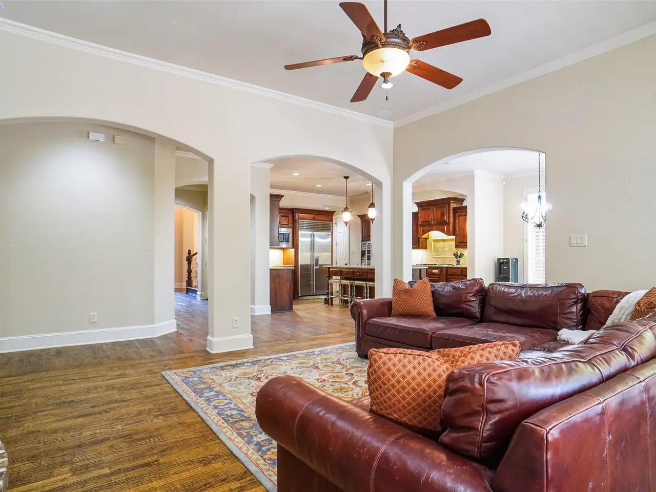 Welcome to this extraordinary home in the highly desirable Hidden Lakes community, where timeless craftsmanship meets comfort. Set within the award-winning Keller ISD and the exclusive Hidden Lakes Elementary, this five bedroom, five bath residence offers an exceptional combination of luxury, functionality, and style. From the moment you enter, you're greeted with soaring ceilings, immaculate custom woodwork, and hardwood floors that flow seamlessly throughout the home. The elegant foyer opens into inviting living spaces designed for both grand entertaining and everyday comfort. Rich architectural details make this home truly special. The gourmet kitchen is the heart of the home, featuring an oversized island, custom cabinetry, and premium finishes, all opening to a spacious family room accented with warm wood tones and a cozy fireplace. A formal dining room provides the perfect setting for hosting memorable gatherings. Retreat to the luxurious primary suite, complete with a spa-inspired bath, generous walk-in closet. Additional bedrooms are generously sized, each offering their own access to beautifully appointed bathrooms. Upstairs, the expansive game room with wet bar sets the stage for endless entertaining, while the dedicated media room creates the ultimate movie-night experience. Step outside to your own private backyard retreat perfect for summer barbecues, relaxing evenings, and creating cherished memories. With mature landscaping and space to play, this outdoor area balances comfort and privacy. Residents of Hidden Lakes enjoy more than 10 miles of scenic walking and biking paths, three sparkling community pools, playgrounds, and neighborhood parks. You’ll also love the convenience of being able to walk directly to Sky Creek Ranch Golf Club and Country Club, where golf, dining, and social activities create a true resort-style living experience. Ideally located minutes from premier shopping, dining, and outdoor recreation, this not only a home, but a lifestyle.