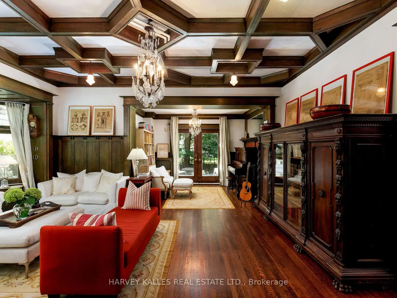 Nestled in Toronto's prestigious Rosedale neighbourhood, this landmark mansion occupies an expansive 100' x 122' estate-sized lot and offers over 7,500 square feet of impeccably designed living spaces. With 7 + 1 generously proportioned bedrooms, 8 bathrooms, and an exceptional third-floor loft, this grand residence seamlessly blends historic architecture with the scale, elegance, and functionality. Originally built circa 1900 for the distinguished Applegate family, the home has been meticulously restored and thoughtfully maintained to preserve it's architectural heritage including a selft portrait stain glass window of Mrs. Applegate herself. Drawing inspiration from the classical traditions of Italian Renaissance architect Andrea Palladiio - most notably his iconic Villa Rotunda in Vicenza, Italy - the home reflects timeless design and exceptional craftmanship. A majestic octagonal central hall, framed by twelve lonic columns, creates an unforgettable first impression and sets the tone for the rest of the residence. Throughout the home, rich period details abound: original oak hardwood floors, finely hand-craved oak mouldings and wainscoting, intricate millwork, and 6 fireplaces with decorative tile and brick hearths. The soaring 10-foot ceilings are adorned with ornate plaster crown mouldings, ceiling medallions, and oak-beamed details that speak to the home's historical significance. Expansive bow windows and beautifully preserved stained glass flood the interior with natural light and highlight the warm, elegant atmosphere. Outside, the property is a private oasis, surrounded by mature trees, lush landscaping, and tranquil gardens that offer rare serenity in the heart of the city. A detached two-car garage and additional parking for three vehicles provide added convenience. This is a once-in-a-generation opportunity to own a truly iconic Rosedale residence - an architectural treasure steeped in history and timeless charm.