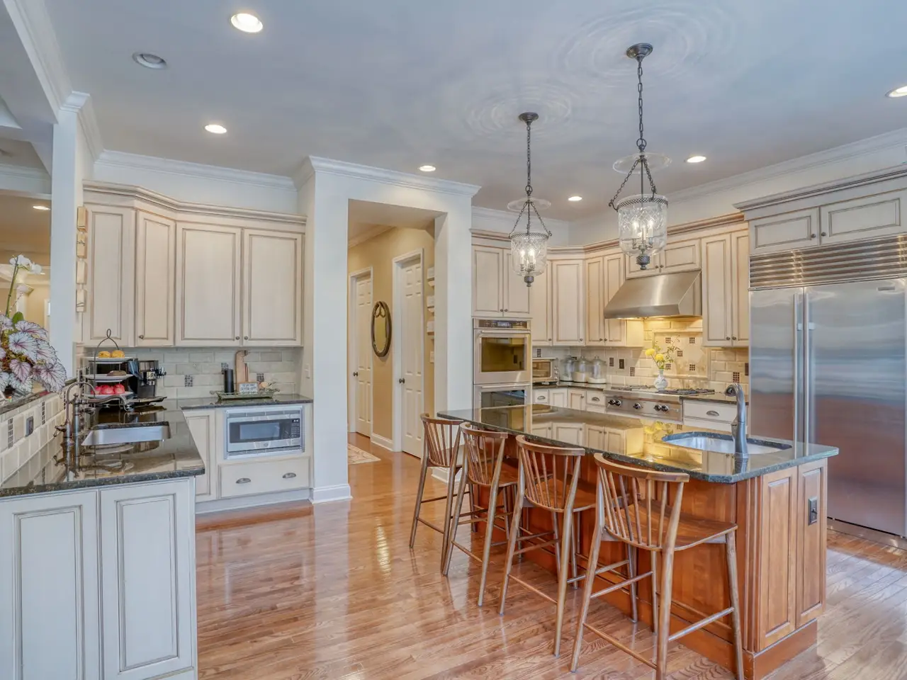 Welcome to 415 Spring Hollow Drive located in the sought after community of PARKSIDE. This breathtaking home features 10 foot ceilings on the first floor, 8 foot doorways and hardwood floors throughout .. it is JUST breathtaking! Lets start from the outside.....This home is located on the stunning street that represents Parkside, this large estate home has a 3 car side entry garage with a large STONE/SLATE massive patio in the yard that is surrounded by 25 foot trees. A private oasis that is fenced in and offers off the back door a Brazilian Ipe wood deck that leads to that stunning patio... adding to that, is a large walk up that leads down to a double French door entrance into the basement. Besides the large privacy trees, the landscaping is breathtaking....Now lets head inside, Hello Classic traditional beauty!!!! This 4 bedrooms, 4.1 bathrooms with a finished basement is your dream home. The formal living room, formal dining room have great size... hardwoods.... large windows.... upscale lighting fixtures and stunning moldings. The foyer offers a grand feel with the 10 foot ceilings and the curved staircase set back into the middle of the home....The large office off to the side of the home offers privacy....the family room that is open to the kitchen has coffered ceilings and a gas fireplace....the kitchen has so much to offer... 2 sinks, large island, Wolfe range, subzero refrigerator, built in seat, plantation shutters and this overlooks the beautiful yard. Not one but a second staircase off the kitchen, with a large pantry, mud room and butlers station that leads into the dining area. Now one of my favorite... the half bathroom that has been done that will make your draw drop!!!! a must see. As we head upstairs we are greeted with all hardwoods again... a massive impressive entrance into the Primary bedrooms with 2 large custom closets and a large primary suite.... Bedroom two is a princess suite with a large bay window... bedroom 3 and four are great size rooms with a very large Jack and Jill bathroom to share. The upstairs laundry room offers convince with a slop sink also. Now the finished basement has all the upgrades one could imagine.. beautiful bathroom, a full gym with large glass door, Natural light from not only the French doors but a large full window, a lovely granite large island to host all your games and counter tops for entertaining guest .... and a custom designed family area. This home is a must see!!!