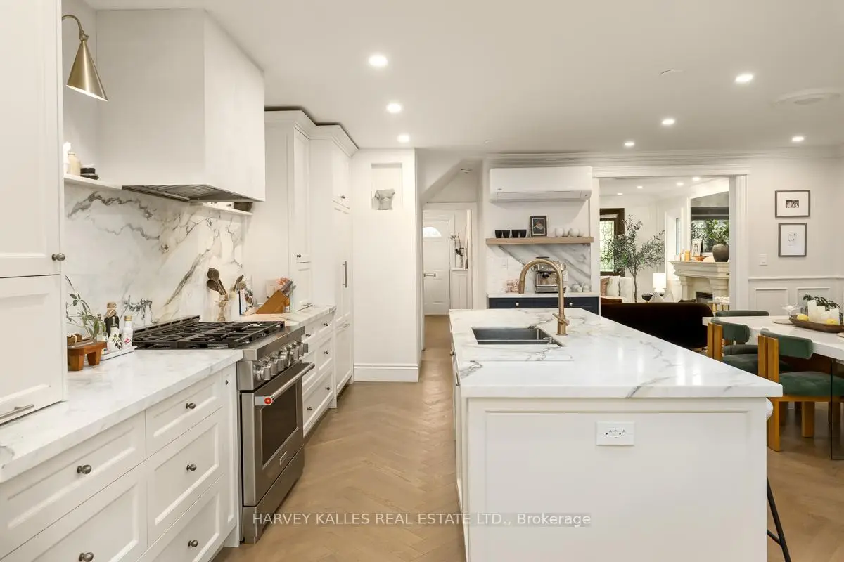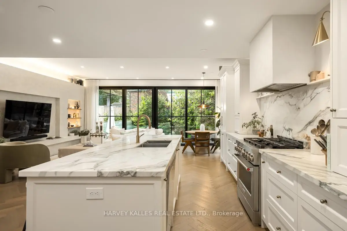 A lifestyle of elegance and ease awaits on one of Allenbys most coveted streets. 52 Castle Knock is a meticulously renovated home where every detail has been thoughtfully crafted for comfortable family living in the heart of the Allenby school district, Forest Hill North. This is a true family-friendly home. The main level features a bright open-concept layout anchored by an Italian-style chefs kitchen with a massive Calacatta marble island, marble backsplash, built-in Fisher & Paykel fridge and freezer, and a cozy coffee station overlooking the lush backyard. The adjoining family room, part of a custom-built extension, boasts 11-foot ceilings, art lighting, European flooring, and solid wood patio doors that open to a private backyard oasis with a heated pool and spa-style patio. Upstairs, four spacious bedrooms include a luxurious primary suite with a spa-inspired ensuite and large walk-in closet. One of the bedrooms is thoughtfully designed as an office with a built-in desk, shelving, its own walk-in closet, and a skylight. The second floor also features a SpacePak heating and cooling system for year-round comfort. The backyard is a serene retreat with mature greenery, ideal for relaxing or entertaining. With rare three-car parking, a large family room, and in close proximity to top-rated Allenby schools, parks, shopping, restaurants, and coffee shops, this home offers an exceptional lifestyle on one of North Forest Hills finest streets.