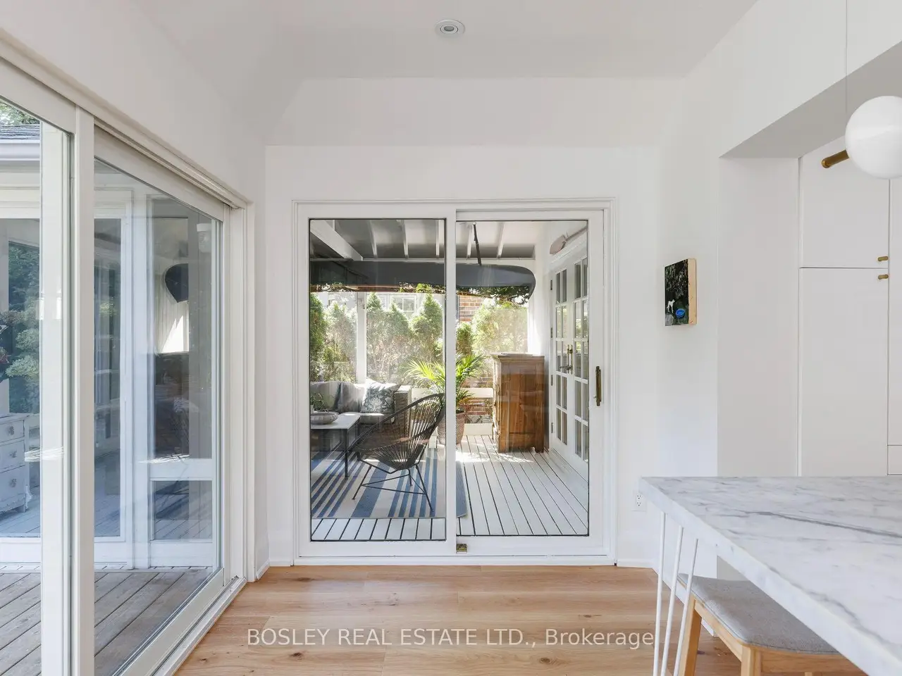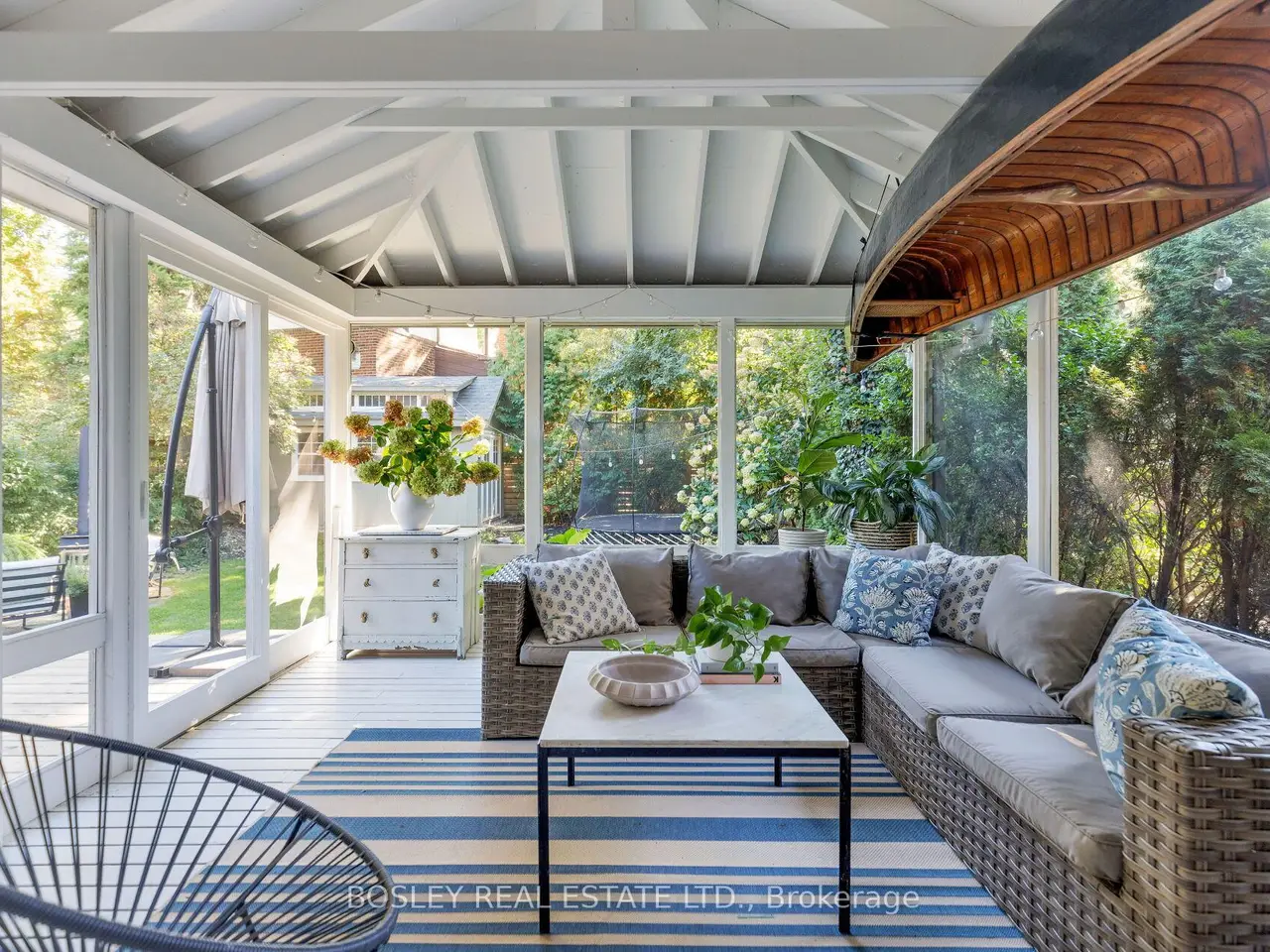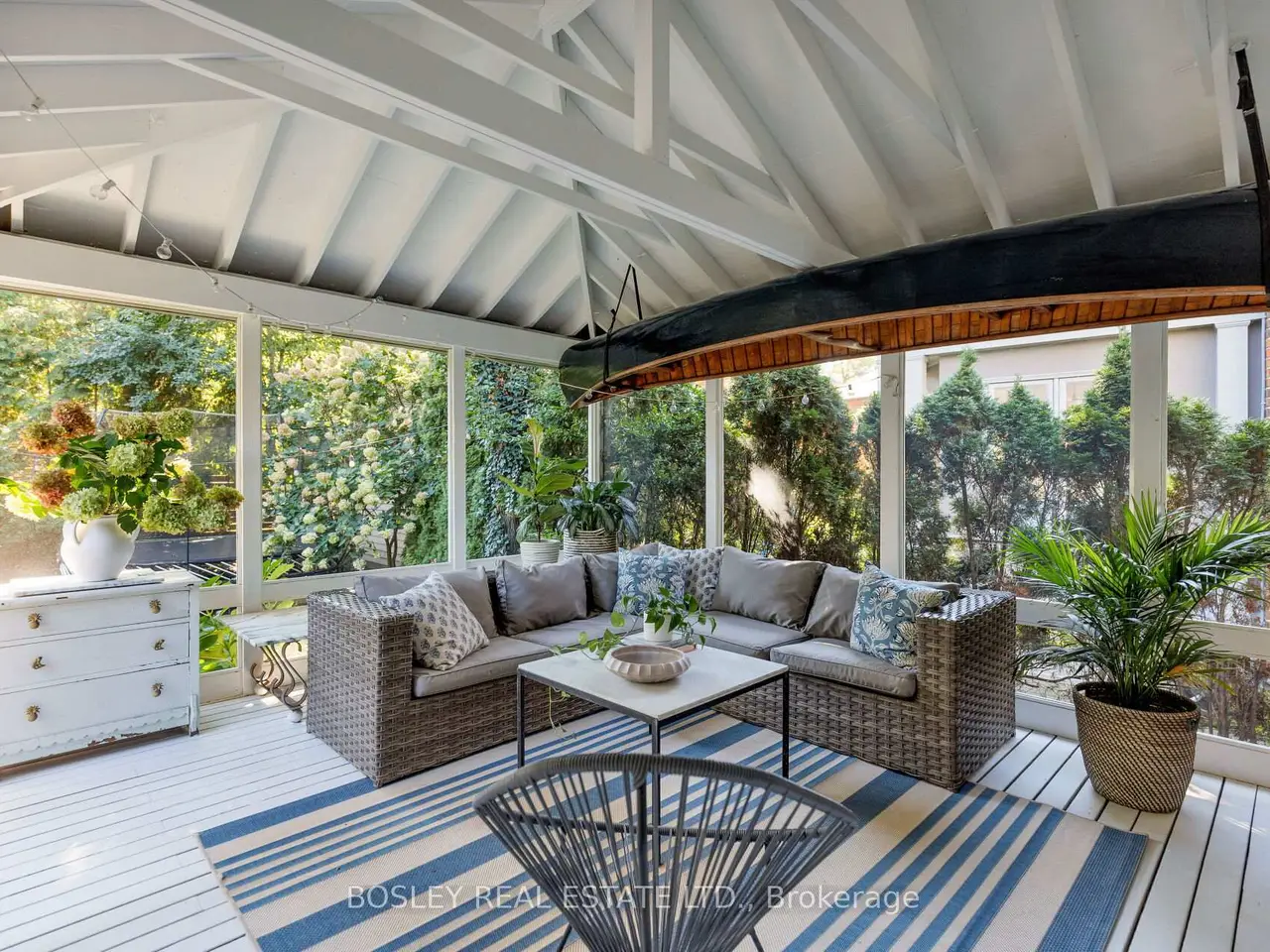 Designed with families in mind, this elegant residence blends period charm with modern design. Generous room sizes, thoughtful flow, and beautiful finishes make it as stylish as it is practical for busy family life. At the heart of the home, the chefs kitchen is anchored by a massive marble island (perfect for cooking, homework, or family gatherings), complete with heated wide-plank white oak floors, a 6-burner AGA stove, dual KitchenAid dishwashers, sleek cabinetry, and brass accents. Sliding doors open seamlessly to a cedar deck and private backyard, while the screened Muskoka room extends the seasons for outdoor living. The formal living room, with leaded-glass windows and an oversized Valor gas fireplace, offers a warm space for family downtime or entertaining. Upstairs, three generous bedrooms and a charming family bath with clawfoot tub provide plenty of room for children. The third-floor primary retreat is a serene escape, featuring cathedral ceilings, a cozy lounge area, walk-in closet, and a 5 piece ensuite with custom double vanity, quartz counters, and champagne-brass fixtures, all framed by tranquil treetop views.The bright, professionally waterproofed lower level functions beautifully as an in-law or nanny suite with private side entrance, kitchenette/laundry, a large bedroom, and a spacious rec room, ideal for kids' play or teen hangouts. Outdoors, enjoy landscaped front gardens with hydrangea and a maple tree, a lush fenced backyard with privacy hedging, and parking for three on the private drive.A rare opportunity to own a home that radiates warmth, character, and style- plus all the practicalities of family living- in a coveted neighbourhood setting, just steps from top schools, the Baby point club, Bloor's shops and restaurants, the Humber River parks and bike path, and the TTC.