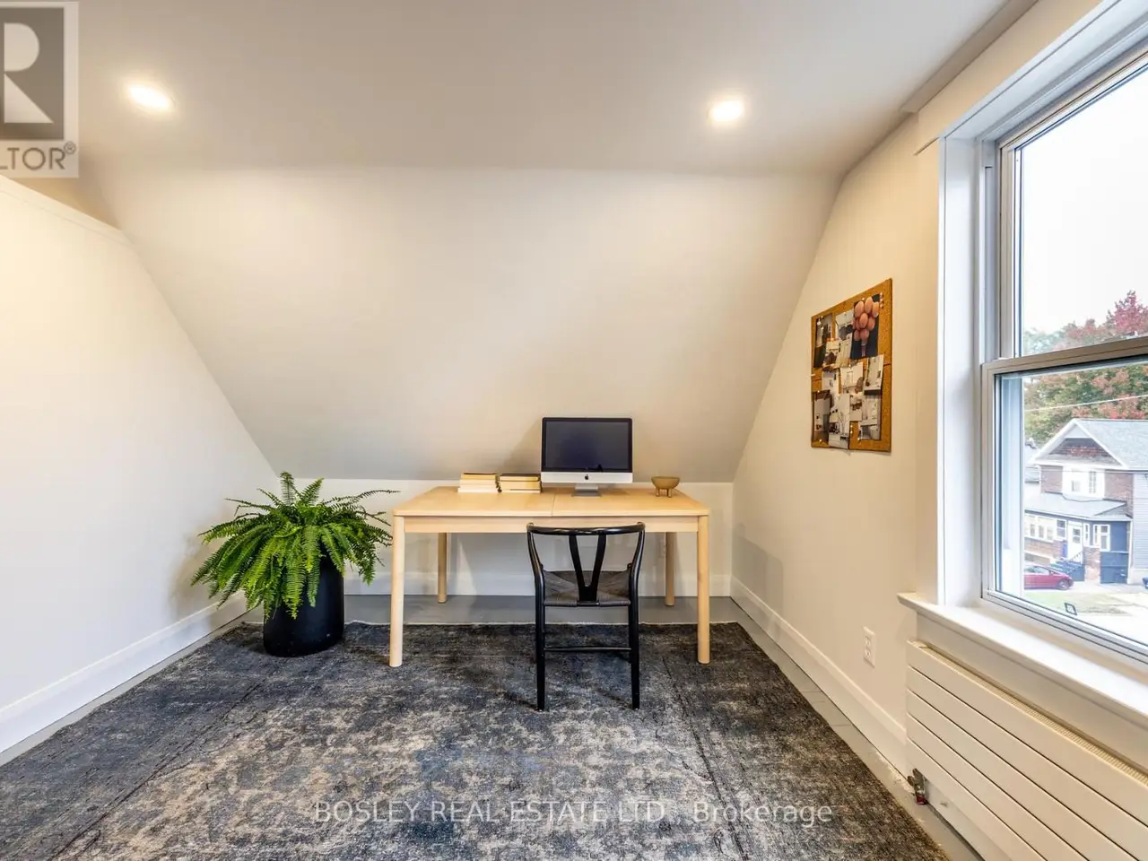 Welcome to 12 Coleridge Avenue, a spectacular home that welcomes you with character, comfort, and versatility. This 5-bedroom detached residence spans four levels and approximately 2,200 square feet of total living space with thoughtful details and loads of function. Spacious and bright principal rooms, offer welcoming and relaxed sophistication. The family size bistro kitchen blends charm and function, complete with stainless steel appliances, quartz counters, and a smart layout with lots of storage. A convenient laundry chute from both the kitchen and the second floor closet delivers directly to the basement, making daily life effortlessly efficient. Bonus main floor office is naturally bright with custom double built-in workstations. The rear mudroom offers a practical touch, with an organized place for everything: coats, boots, and all the gear of an active household. On the second floor, three bedrooms surround a classic four-piece bath, on the third floor, two bright & spacious rooms offer lots of versatility. The finished lower level provides a dedicated laundry room, three-piece bath, an open flex space/rec room, wet bar, storage and separate entrance, extra space for growing families but also the potential for an income/in-law suite. Currently Freehold, the property is in the process of converting into a two-unit, self-managed condominium. Each home, the front house and the laneway house, will function independently, with a monthly condo fee of $320.37 covering insurance and common elements. Just steps from Woodbine subway station and a short stroll to the cafés, shops, and restaurants of the Danforth, this home offers a rare mix of character, convenience, and community in the heart of East Danforth. (id:7434)