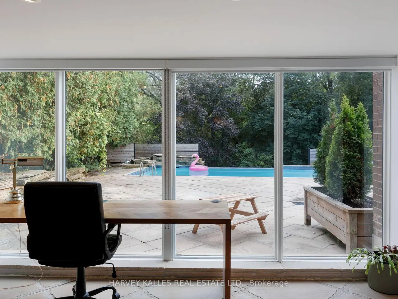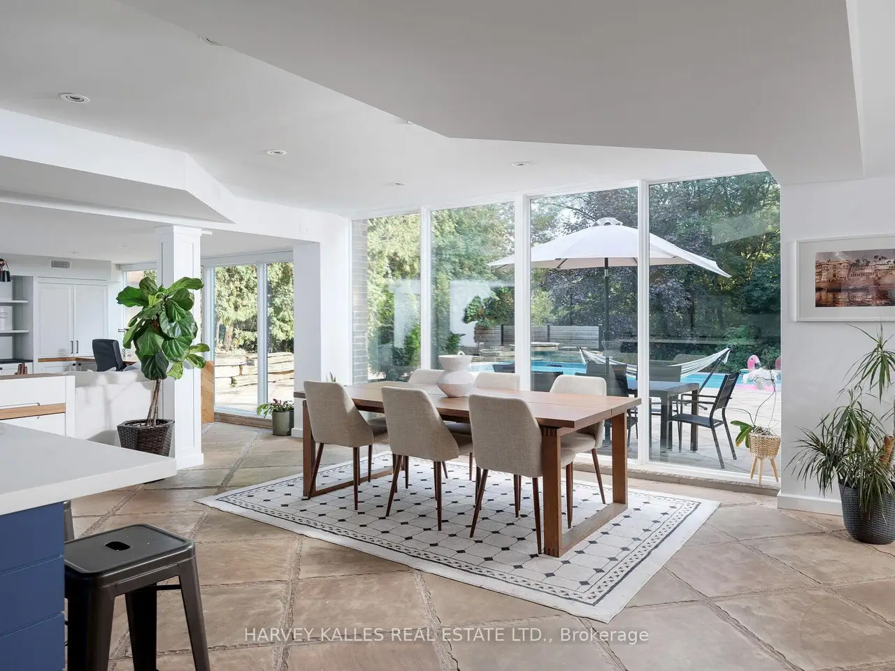 Say yes to the absolute best; this Markland Wood mid-century modern home is the pinnacle of style and comfort with unique details and a timeless aesthetic. Modern living and beautiful mid-century modern architecture? Check! Close to every amenity imaginable? You've got it! A beautiful backyard paradise on a ravine lot and an inground pool that makes you feel like you're on a tropical vacation every day, all day? Naturally. A brand-new mud room with direct access to the garage and side entrance? Oddly specific ask, maybe but yes, that too! Your new dream house offers so many perks that you may never need to board an airplane again. Designed by Award Winning Architect, Anthony Ferracuti (Global Architects), this 4+1 bedrooms, 3.5 bathrooms, plus a half bath home provides room to spare. The eat-in kitchen comes with professional-grade Frigidaire and Miele appliances, while a walkout basement makes entertaining a breeze, with its own kitchen, dining area, lounge spaces and sauna. Community features include Neilson Park Creative Centre, Markland Woods Golf Club, and walking/bike trails along the Etobicoke Creek Ravine (and CF Sherway Gardens, of course!) The home is also in the catchment area of top-rated schools, including St. Clement Catholic School. With an oversized pie-shaped lot, opportunities for outdoor enjoyment open up. This home was made for making memories. With an expansive primary bedroom complete with its own sitting area and a four-piece ensuite, it's hard to pick a favourite feature in this glorious oasis. This is your perfect home for everyday luxury.