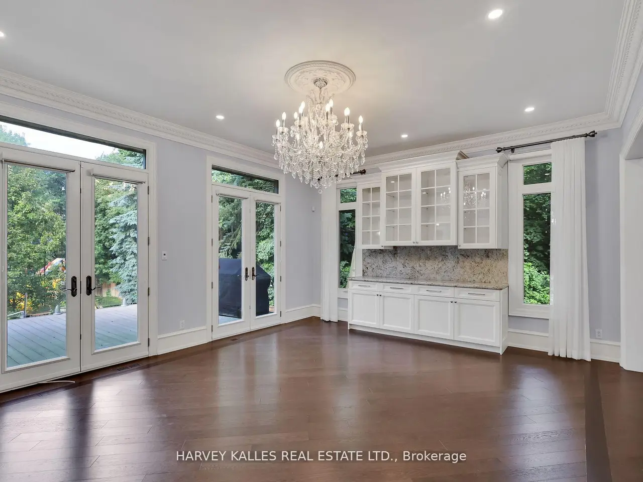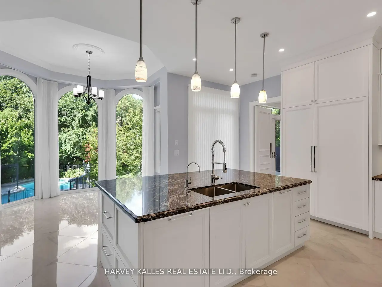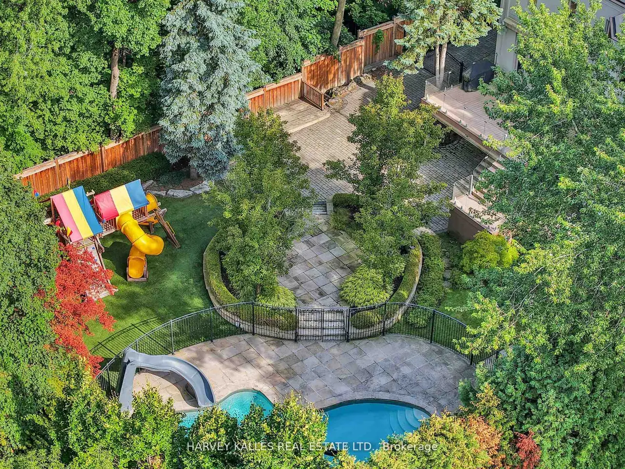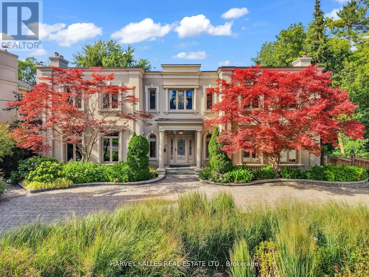A unique offering in the heart of Lytton Park. Rarely does an opportunity arise to own a residence in this coveted location that also boasts a serene, country-like ravine setting paired with oversized estate frontage and depth. This lovingly cared-for and thoughtfully updated home welcomes you with a grand entrance and soaring foyer, leading into expansive living and dining areas under dramatic ceilings. An updated eat-in kitchen connects seamlessly to the family room and private office with a separate servery and staircase to lower level. The second level showcases a spacious primary suite with a luxurious ensuite and walk-in closet, complemented by three additional sizable bedrooms with ensuites, plus an office or nursery. The lower level offers a flush walkout to a beautifully landscaped yard and is complete with an oversized entertainers recreation room, gym, home theatre, and a guest suite with spa. An oversized integrated garage accommodates two SUVs with ease, with epoxy flooring. Outdoors, an entertainer’s dream awaits with professionally landscaped parklike oasis with an inground pool, playground, outdoor deck with gas barbecue, and a gated heated driveway ensuring privacy. All this, just moments to John Ross Robertson, LPCI, lush parks, shops, restaurants, and more. Truly, this is a home not to be missed.