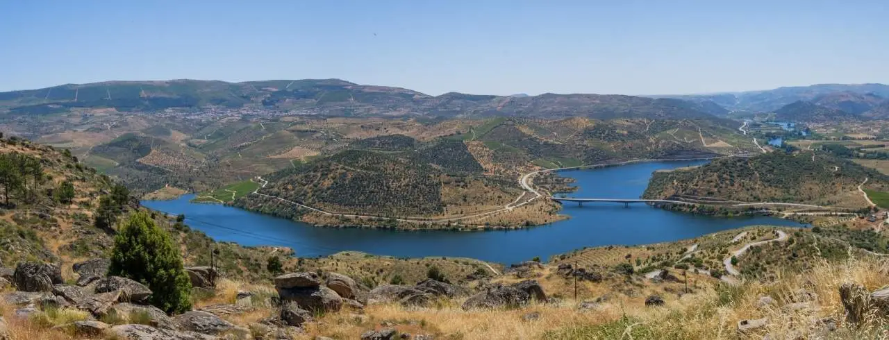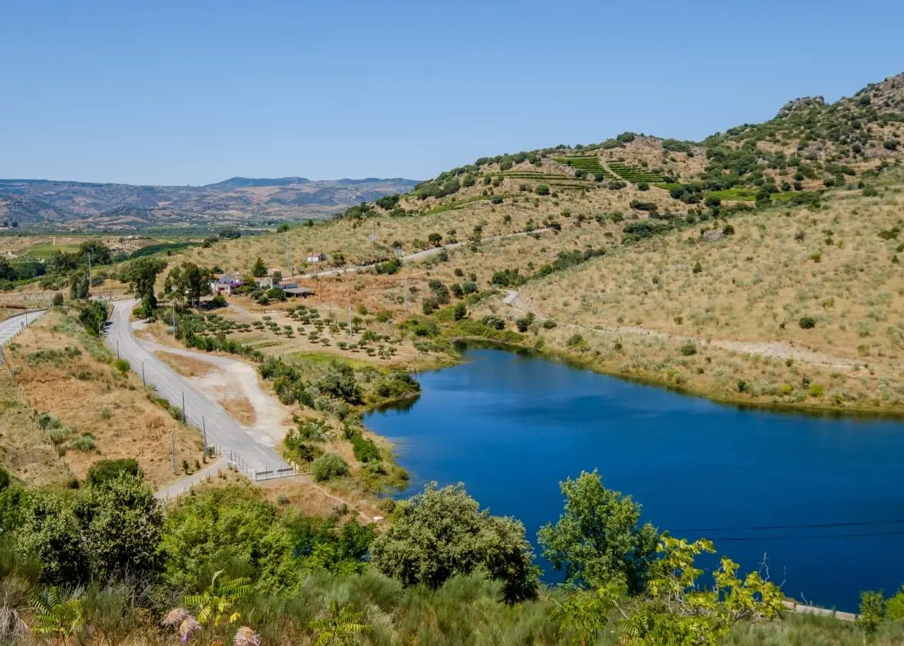 Agricultural Property in the Upper Douro region, integrated in the most fertile region of the Northeast Transmontano and inserted in the Douro Demarcated Region. Unique location, near the mouth of the River Sabor, being serpentada by the Albufeira in an extension of 5 Km. Main house of typical transmontana architecture, of secular origin, with breathtaking views of the river Sabor and its lake. Property with great potential for agricultural production: vineyards, olive groves, almond trees, cork oak groves, vegetable gardens, fruit crops, wheat, rye, forest, and also an area of great pastures for cattle breeding. The property also owns a vineyard with 6Ha, olive grove with 930 olive trees and almond with 820 almond trees. Excellent investment for the development of the tusistical/hotelier project according to its geographic and landscape context. Great access through IC5, IP2 and A25 roads. 1h45 minutes from Porto, 60 minutes from Vila Real, Bragança and Spain and easy connections to Guarda, Vilar Formoso, Coimbra and Aveiro. CHARACTERISTICS: Plot Area: 1 839 800 m2 | 19 803 442 sq ft Building Area: 800 m2 | 8 611 sq ft Energy efficiency: Free