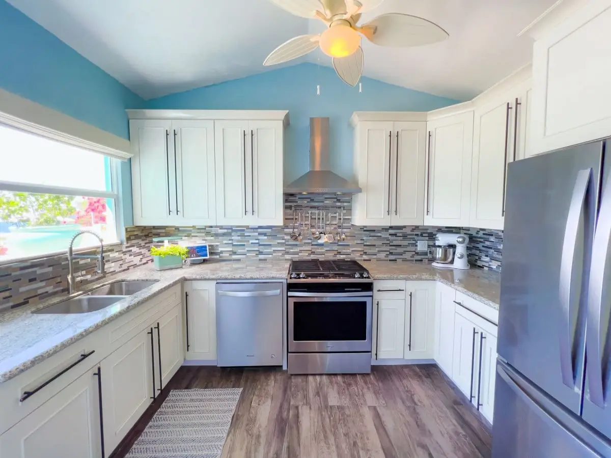 The 2nd house, is located a little further up the driveway, but landscaping makes it almost invisible from the main house. 2 bedrooms, 1 bathroom and an open plan living room kitchen make this an ideal vacation cottage or long term rental unit. Like the main house, design is centered around outside living and this house has a patio to the rear and ample covered deck to the front. Please note that this unit is currently rented long term and the furniture belongs to the tenant.