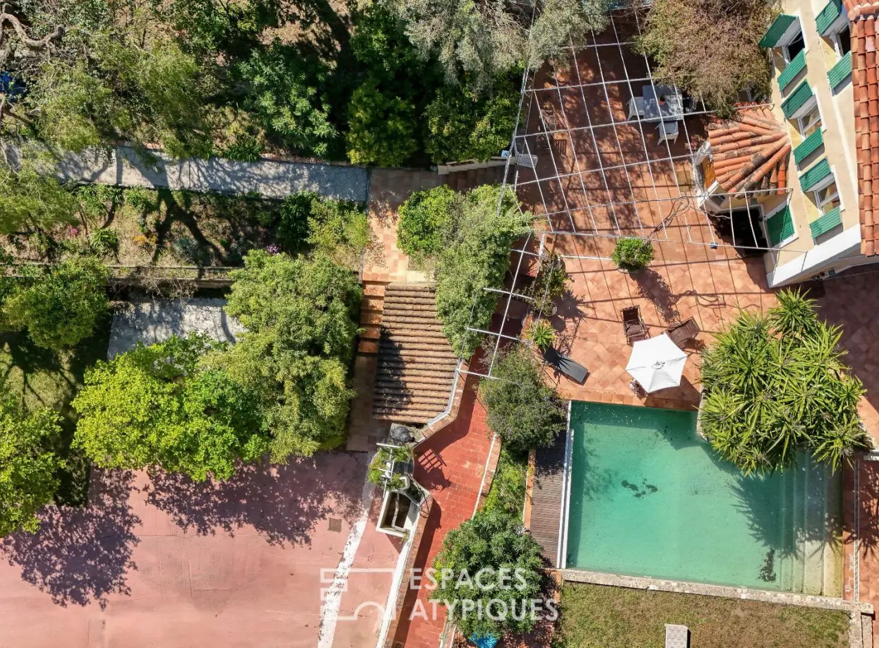 Character Villa In a commanding position, this imposing character house, steeped in history and dating from the 19th century (1820), offers unobstructed views of the harbor of Toulon in the Var region. It sits on a 1600m² plot of land adorned with terraces and three-hundred-year-old Mediterranean trees. The charm of this property is irresistible. The main entrance opens onto a living room and a dining area open to the kitchen. The entire space is decorated with original cement tiles. This approximately 50m² living room provides direct access to the pool house and its swimming pool. A staircase with Salernes terracotta tiles leads to two large bedrooms, a dressing room, and a bathroom on the first floor. Continuing on, on the second floor, a master bedroom completes this unique property. A large parking area can accommodate around ten cars. This unique property, due to its location and authenticity, is ideal for a family looking for a home with character. Immediately close to Toulon city center and its TGV train station. 20 minutes from Hyères-les-Palmiers airport. ENERGY CLASS: C (83 kW/m²/year) - CLIMATE CLASS: A (5 kg CO²/m²/year). Information on the risks to which this property is exposed is available on the Georisques website: www.georisques.gouv.fr REF. 10797 Additional Information * 5 rooms * 3 bedrooms * 2 floors in the building * Land area: 1,600 m² * Parking: 10 spaces * Property tax: €2,291 Energy performance audits Primary energy consumption b: 83.4 kWh/m²/year