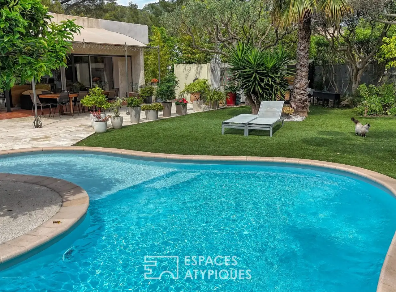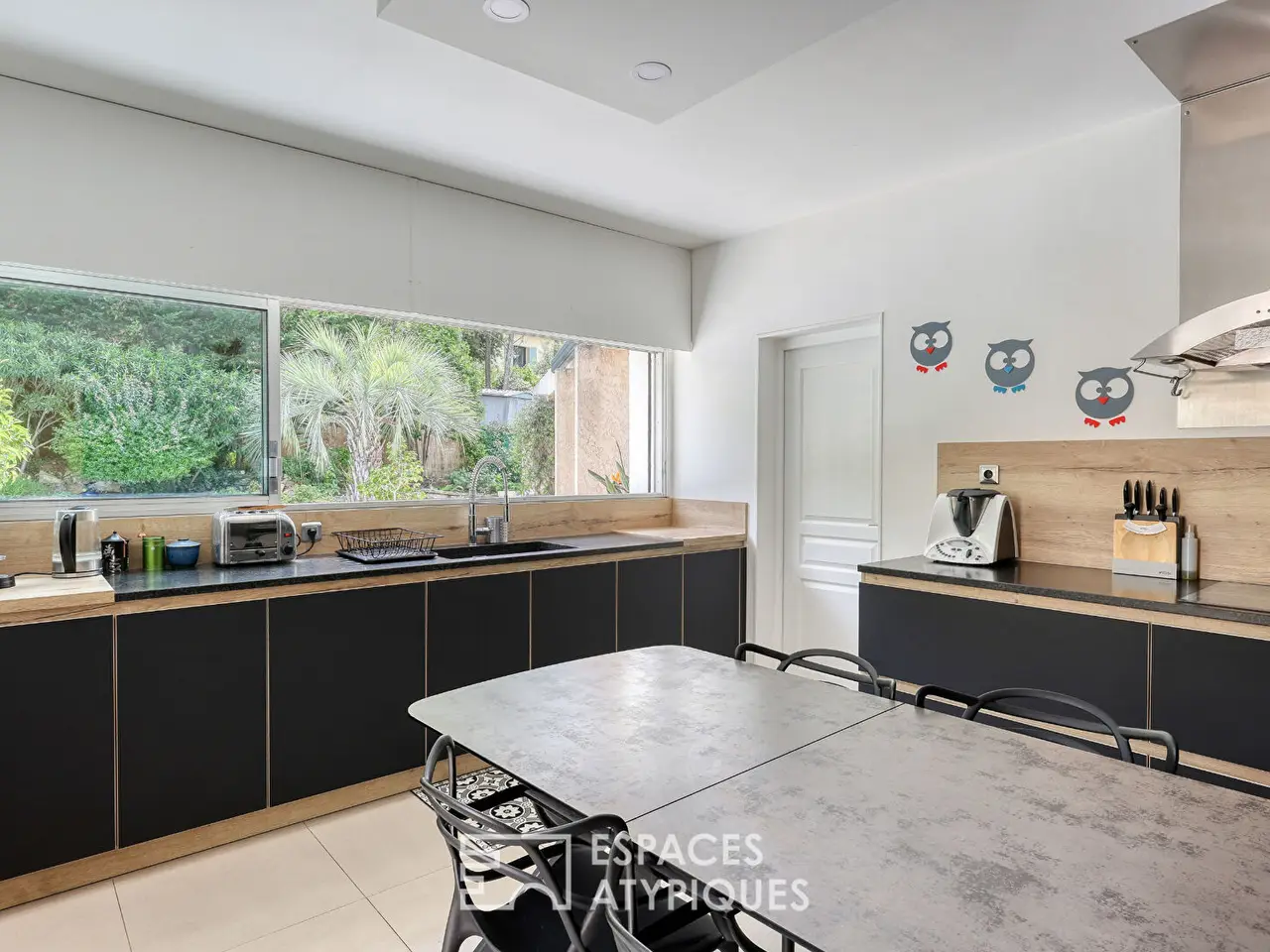 Villa de caractere avec jardin et piscine Located in a quiet and residential area, this superb contemporary achievement extends over a living area of 250 square meters on one level for the main residence. Perfectly located on landscaped grounds of almost 20 acres, offering a natural living environment on the outskirts of Toulon. Designed for optimal comfort, this unique habitat has generous and functional volumes adapted to a family and friendly lifestyle. Its perfectly studied geometry skilfully delimits the spaces, a large hall distributes the day area on one side, the sleeping areas on the other and in the center an elegantly fitted dining kitchen facing the outside. The 70 square meter living room benefits from beautiful light thanks to large bay windows overlooking the garden and its swimming pool and on the other side a terrace offering a panoramic view of the Toulon mountains. The high ceilings and the wood stove make it a convivial, spacious and warm space. The sleeping area where all the rooms have access to the garden through large bay windows, offers 4 bedrooms, a master suite, and two bathrooms, distributed via a corridor equipped with large storage spaces. The lower level, accessible by a sublime wooden and metal staircase, is devoted to ancillary spaces and totals approximately 200 square meters of surface area, 70 of which are allocated to the garage. The landscaped garden, hidden from view, houses a beautiful swimming pool around which different relaxation areas are arranged. Brightness, volumes, and atmosphere are the key words of this luxury villa designed with taste and functionality. An independent type 2 apartment with its private garden offers an attractive rental income. Possible parking for 6 vehicles. Toulon-Hyeres airport 10 minutes. Toulon TGV station 20 minutes. ENERGY CLASS: C 160/ CLIMATE CLASS: A 5Estimated annual energy cost for standard use (DPE carried out after January 1, 2022) between 2550 and 3520 euros Regulatory information on the risks to which this property is exposed is available on the Georisks website: www.georisks.gouv.frNathalie Delahaye REF. 11106Additional information* 8 rooms* 5 bedrooms* 1 bathroom* 3 shower rooms* 1 floor in the building* Outdoor space : 1900 SQM* Parking : 4 parking spaces* Property tax : 4 950 €Energy Performance Certificate Primary energy consumptionc : 160 kWh/m2.yearHigh performance housing*A*B*160kWh/m2.year5*kg CO2/m2.yearC*D*E*F*G Extremely poor housing performance* Of which greenhouse gas emissionsa : 5 kg CO2/m2.yearLow CO2 emissions*5kg CO2/m2.yearA*B*C*D*E*F*G Very high CO2 emissionsEstimated average amount of annual energy expenditure for standard use, established from energy prices for the year 2025 : between 2550 € and 3520 €Agency fees The fees include VAT and are payable by the vendor MediatorMediation Franchise-Consommateurswww.mediation-franchise.com29 Boulevard de Courcelles 75008 ParisInformation on the risks to which this property is exposed is available on the Geohazards website : www.georisques.gouv.fr