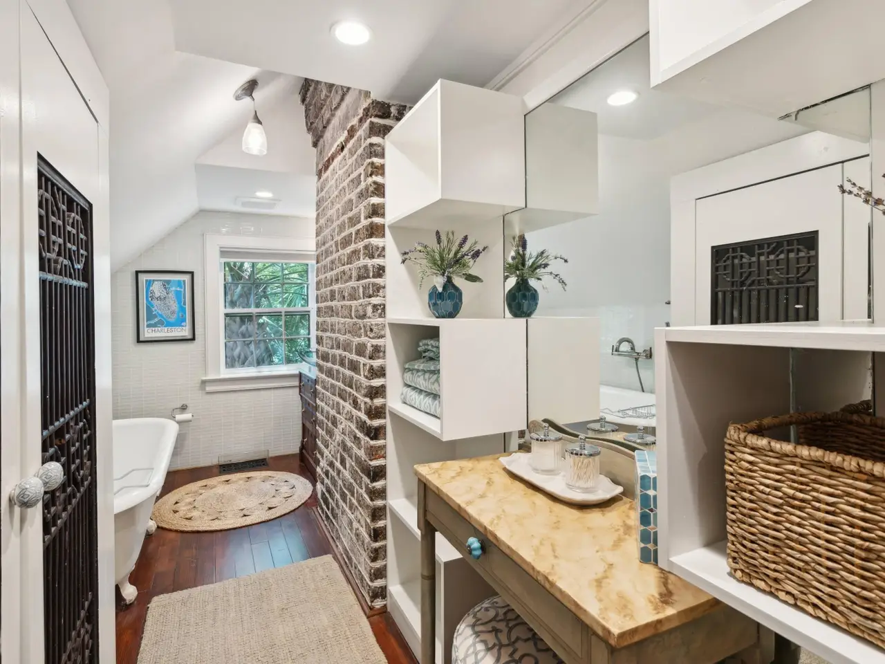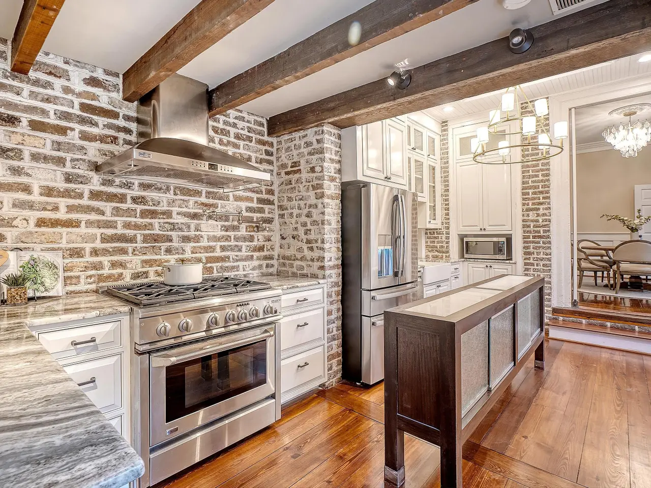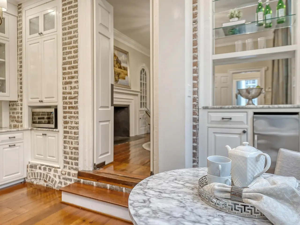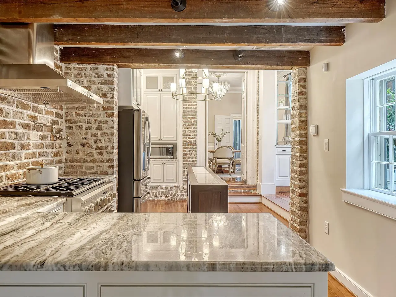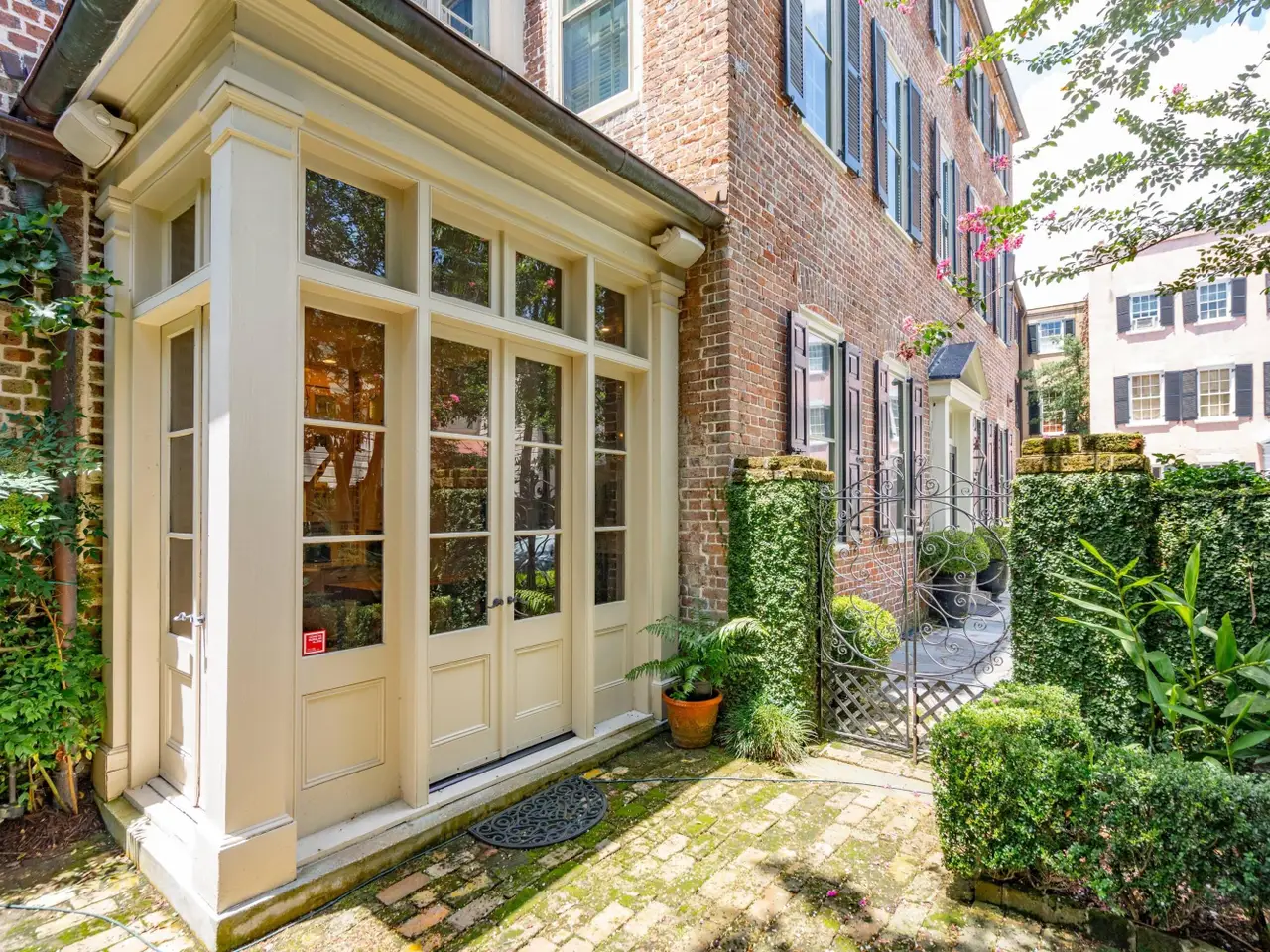 Circa 1764. The Jonathan Badger House. Built by Charleston cabinet maker Badger, this fine Pre-Revolutionary structure is considered to be one of the best examples of exposed Flemish and English bond brick construction from the Georgian period within the old walled city. In its original form, with the main residence now combined with the kitchen house to offer modern comforts with 18th-century architecture. 3,200 sqft, 4 bedrooms, 4.5 bathrooms, generous off-street parking, charming walled garden, high elevation.