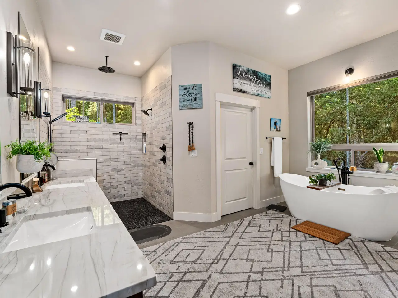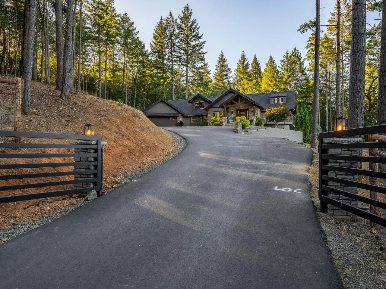 Mountain Lodge Retreat!! Custom Home is app 3157 sq ft, 4 bed, 4.5 baths, with additional Studio D/S of app 390 sq ft for visitors or family. Perched perfectly on 3.43 acres overlooking the valley, hills, and the city in the distance. Upon entry, greeted with soaring vaulted L/R, gas fireplace, expansive windows that allow for stunning views, natural light, and access to the open beam covered porch. Primary ensuite, is vaulted as well, with its own gas f/p & side porch. Main bath offers heated tile flooring, curb less oversized shower, soaker tub, spacious walk in closet, and water closet. Expansive kitchen is equipped with high end appliances designed for both serious cooking and entertaining. The loft hosts a 2nd ensuite, and seating area. The main floor also offers a spacious dining room, 2 b/r full guest bath, 1/2 bath for guests, and large laundry room. There is interior & exterior access to the fully equipped guest studio quarters below. Property is fenced, with lush back lawn.
