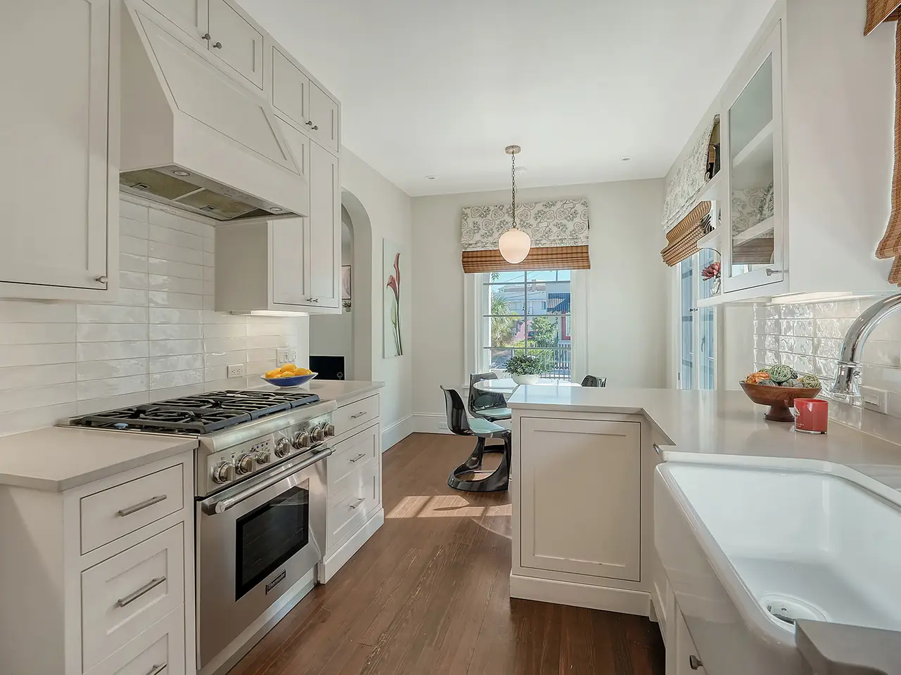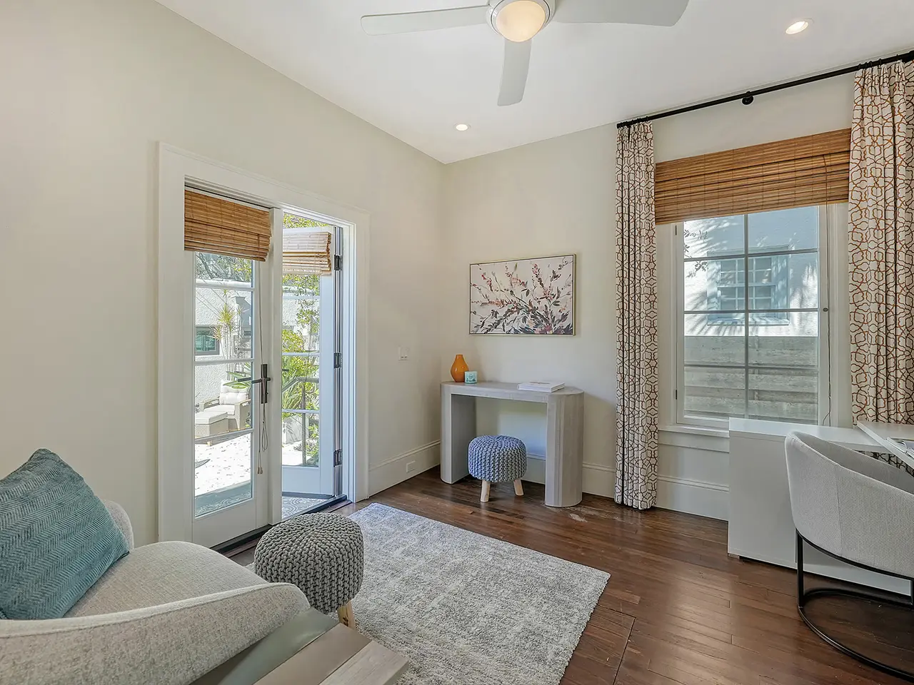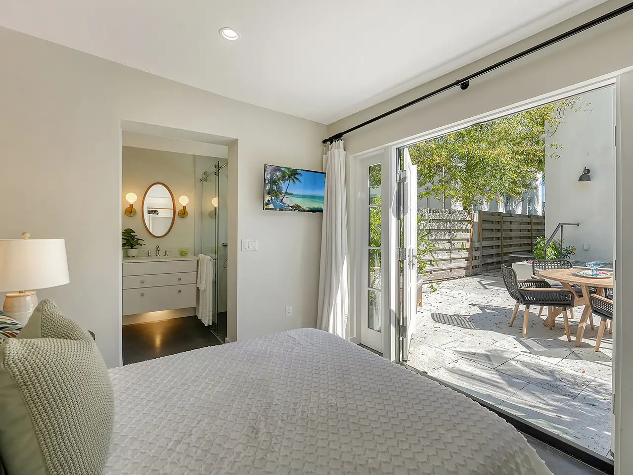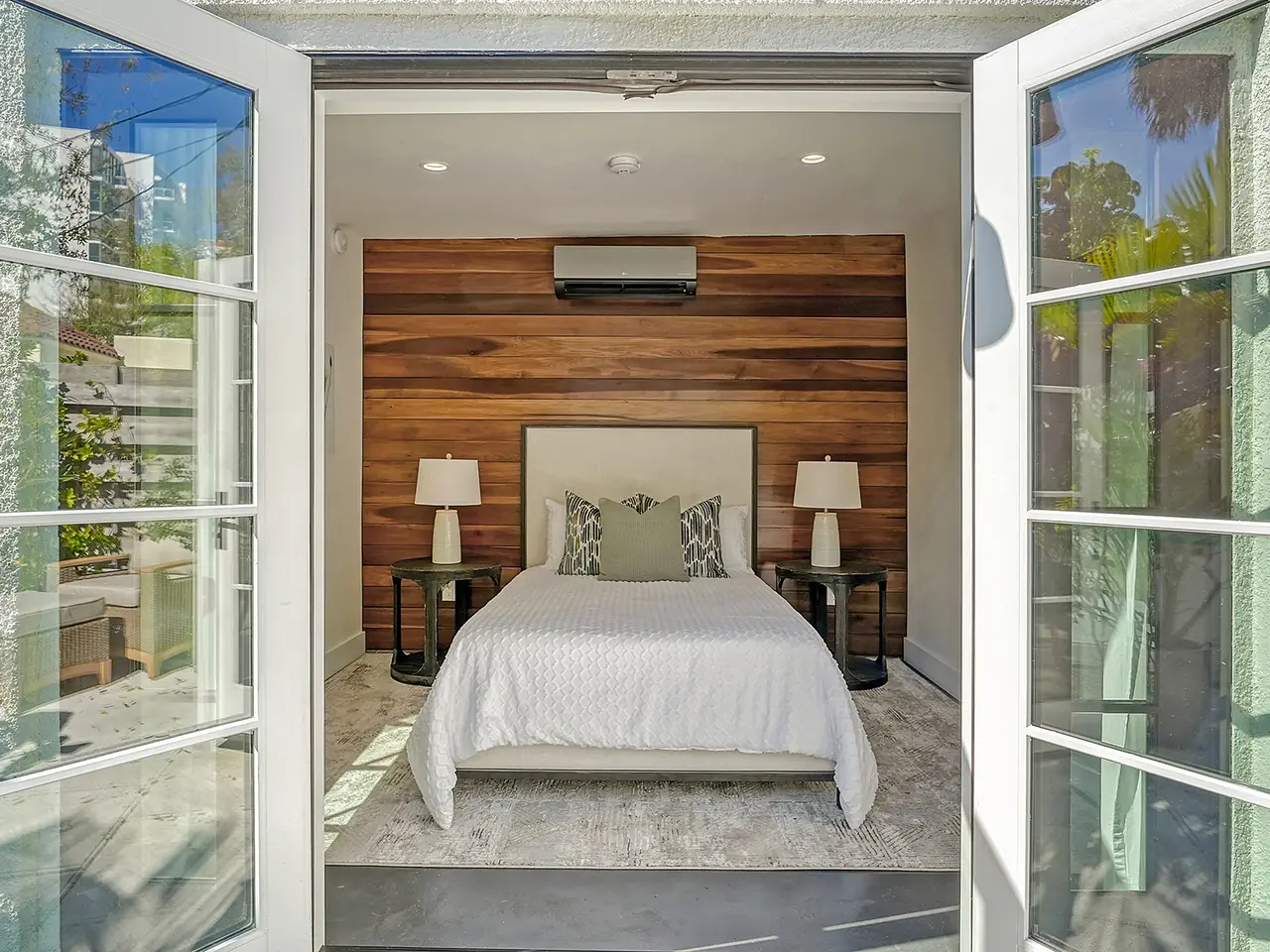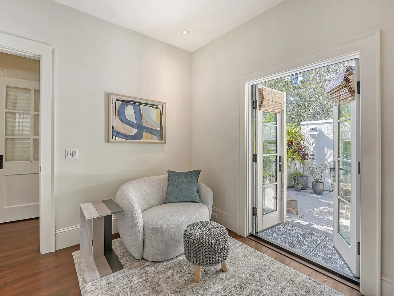Welcome to Historic Burns Court! -- A quaint neighborhood dating back to the John Ringling Era, located in the heart of downtown Sarasota. This Spanish/Med bungalow has been featured and awarded many times across the span of a century. Recognized as one of 17 most breathtaking Mediterranean homes around the country, featured in an article published by TheSpruce.com. Built in the mid 1920’s by architect Thomas Reed Martin and recently renovated by Ryan Perrone of Nautilus Homes, with renowned interior designer, Ellen Hanson. Partnering together, they reimagined this petite bungalow using distinct Mediterranean Revival materials, seamlessly blending timeless elegance with modern comfort, all while retaining the home’s rich heritage. Greeted by a charming, gated front courtyard, with lush landscaping and with a few steps up: a lovely front porch with custom designer tile flooring. Once inside, you are immediately met with refined original wood flooring and custom window treatments throughout. The chef-inspired kitchen features high-end appliances, a discreet paneled refrigerator, soft-close cabinetry, a back door entry, and dining area, all with a timeless soft color palette. Down the hall, two bedrooms await, complete with custom light fixtures and window treatments, custom built-in closet cabinetry, and hard wood flooring. French doors from the rear bedroom lead to a serene backyard oasis, where you can dine al Fresco in the Florida sunshine on your private patio, featuring stone pavers, complete privacy fence and back gate. The separate guest quarters offer another bedroom, full bathroom, ample closet space, and a welcoming ambiance for visitors. Positioned in one of downtown Sarasota’s most highly desired urban neighborhoods, this bungalow offers unrivaled convenience, within walking distance to exquisite dining, art galleries, boutique shops, cozy cafes, Selby Gardens, the downtown farmer’s market, Marina Jack, and much more. Additionally, the property’s Downtown Core zoning classification allows for a variety of commercial uses, including retail shops, restaurants, office space and lodging. You can’t beat this extraordinary opportunity to own a piece of Sarasota’s history!