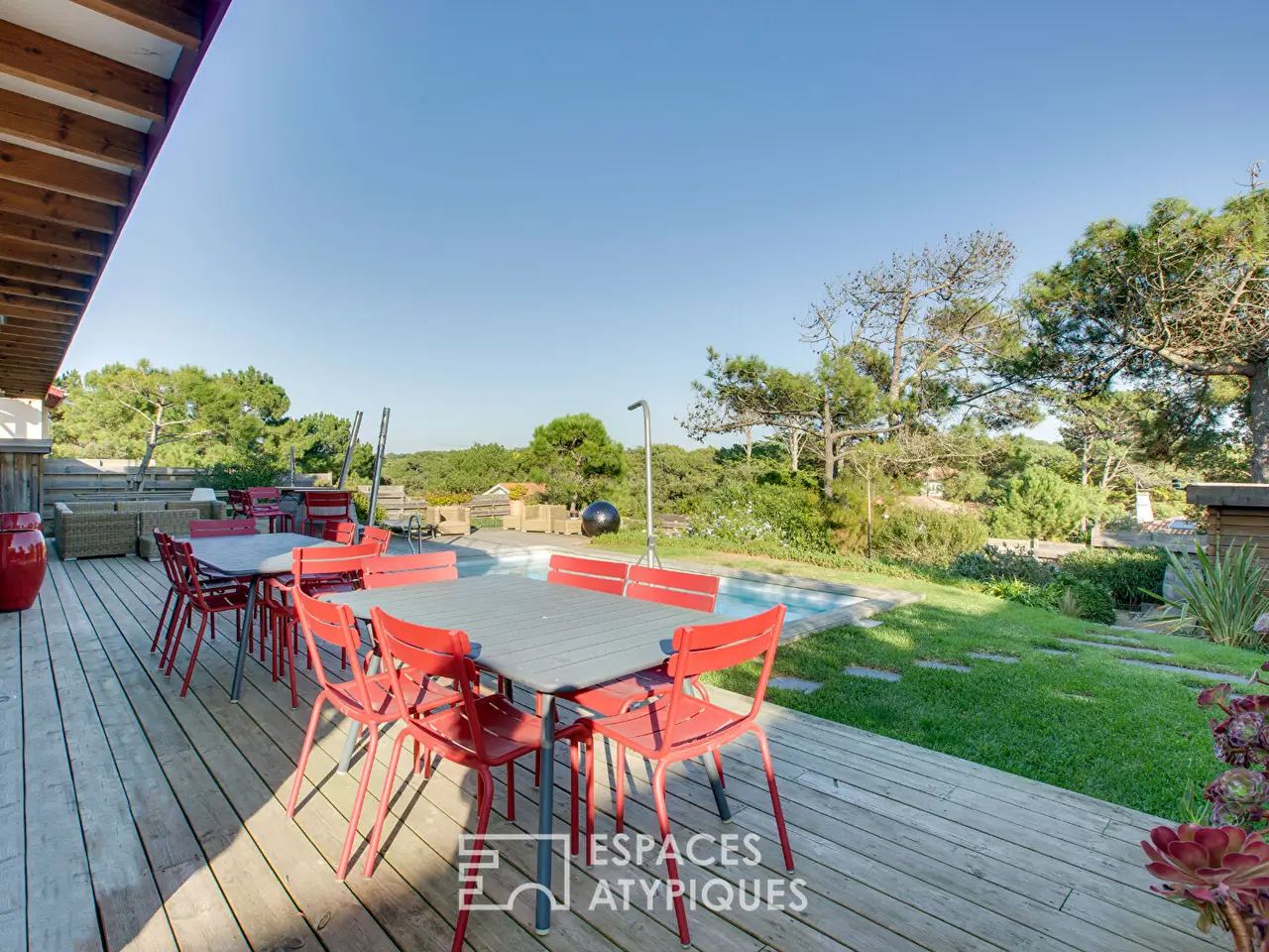Nestled in the heart of a protected natural environment, this Landes-style family home of approximately 208 sqm opens onto a landscaped garden of 977 sqm.Completely renovated with a contemporary feel, it combines traditional charm with modern comfort. At the rear, a generous wooden terrace extends the living spaces to the swimming pool, offering unobstructed views of the surrounding greenery.The interior boasts high ceilings and a large, light-filled, open-plan living area thanks to its east-west orientation. The spacious living room features a cozy lounge area, a dining area, and a functional yet stylish open-plan kitchen.Spread over two levels, the six bedrooms comfortably accommodate family and guests, including a master suite with an en-suite bathroom. The meticulous finishes, high-quality materials, and interplay of perspectives enhance the harmonious atmosphere.Outside, the wooden terrace extends into spacious areas around the heated swimming pool, creating an ideal relaxation space for sunny days. The enclosed, structured, and landscaped garden ensures complete privacy and a peaceful living environment, nestled between the sea and the forest. The petanque court promises enjoyable moments together.The immediate proximity to beaches, shops, and schools makes this a rare find in this sought-after area. A successful blend of authenticity and modernity, this family home offers a unique living environment just steps from the ocean.REF. 13354EALDAdditional information* 9 rooms* 6 bedrooms* 1 bathroom* 2 shower rooms* Outdoor space : 977 SQM* Parking : 4 parking spaces* Property tax : 2 249 €Energy Performance CertificatePrimary energy consumptionc : 134 kWh/m2.yearHigh performance housing*A*B*134kWh/m2.year4*kg CO2/m2.yearC*D*E*F*GExtremely poor housing performance* Of which greenhouse gas emissionsa : 4 kg CO2/m2.yearLow CO2 emissions*4kg CO2/m2.yearA*B*C*D*E*F*GVery high CO2 emissionsEstimated average annual energy costs for standard use, indexed to specific years 2021, 2022, 2023 : between 1920 € and 2680 € Subscription IncludedAgency feesThe fees include VAT and are payable by the vendorMediatorMediation Franchise-Consommateurswww.mediation-franchise.com29 Boulevard de Courcelles 75008 ParisInformation on the risks to which this property is exposed is available on the Geohazards website : www.georisques.gouv.fr