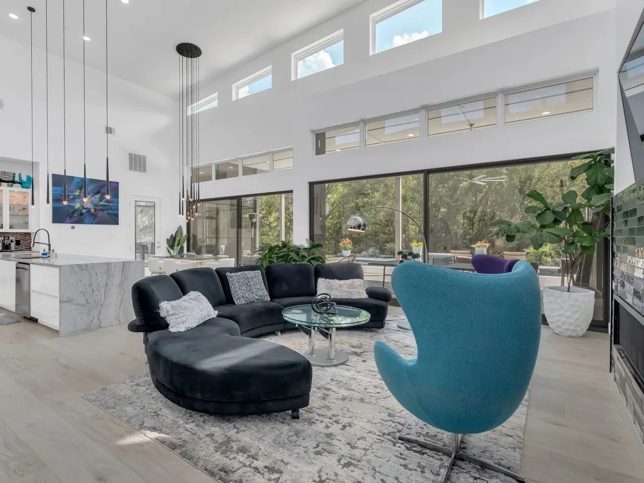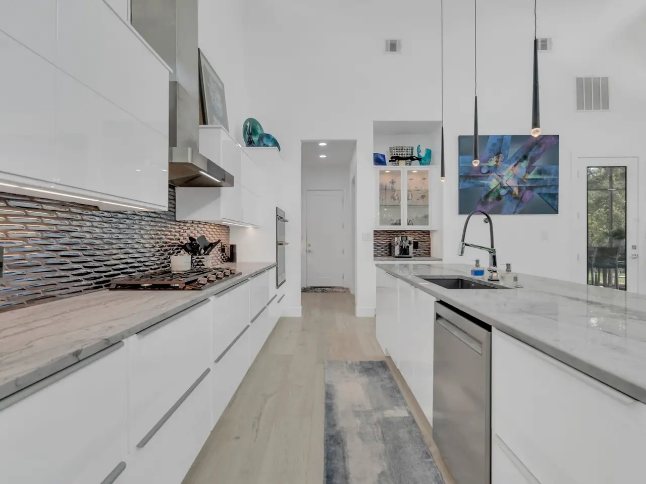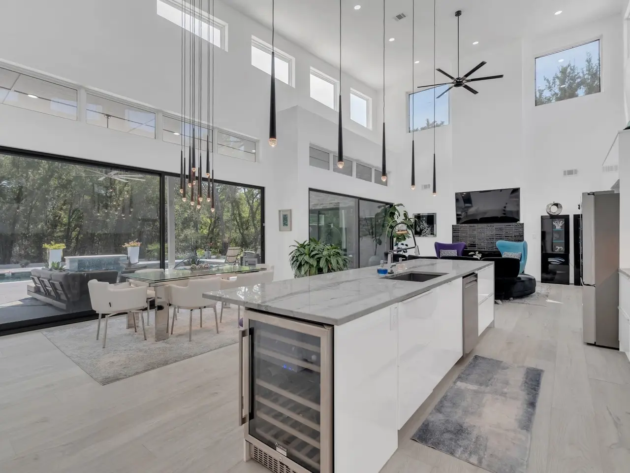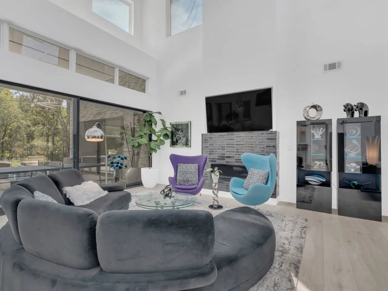CONTEMPORARY LIVING AT ITS FINEST. Quietly tucked away on a 1+ acre wooded corner lot near the lake in Sunrise Bay, you will find all of the boxes checked. Home boasts superior finishes and detail at every turn. Inside, youll find spacious living areas, generously sized bedrooms, and flexible spaces ideal for entertaining or relaxing. This show-stopping kitchen features a high-end design. Custom cabinetry, whisper close cabinet doors and drawers. designer pendant lighting adds warmth and sophistication. The space is anchored by an oversized island with a gleaming waterfall style quartzite top, abundant prep space, casual seating, a natural gathering spot for family and friends. Sleek SS appliances, elegant tile backsplash, and thoughtfully chosen finishes complete the look, creating a kitchen that is as stylish as it is practical. Unbelievable views from the homes interior to your backyard wooded oasis including pool with waterfall, extended cvrd patio with firepit, adjacent Outdoor Screened Dining area with ceiling fan and commercial heating system for cooler months. Special features include Private Owners Suite, Luxury bath with ovrszd dressing area, Spa shower, and large walk-in custom closet system. Beautifully centered fireplace feature brings the Open Family Room to the center of attention. Several sets of Siding doors and Transom windows flood home with light. Majestic Soaring ceilings, Commercial grade windows-doors, DC current HVAC system, FULL FOAM INSULATION. TPO ROOF, Enjoy the vibrant Lakefront District, where you can enjoy sandy beaches & a seasonal water park, live music at amphitheater, boat rentals, kayaking, paddleboarding and Family-friendly events, food trucks, playgrounds. Located just 9 miles from the PGA World Headquarters in Frisco and 12 miles from the upcoming Universal Kids Theme Park. Tranquil lakeside neighborhood is a hidden gem in Little Elm, offering peaceful surroundings while being close to everything N. Texas has to offer.