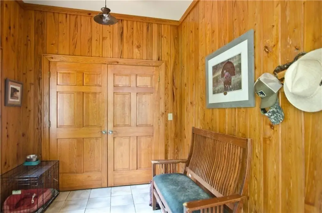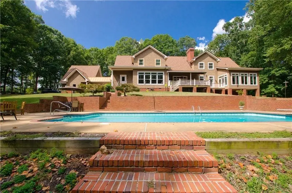 Oak Ridge Farm - A Private Luxury Estate on Lake Seaton. Oak Ridge Farm, a rare and remarkable legacy property blending refined Southern architecture with serene natural beauty. Constructed in 1999 by master builder Stanley Crews, this custom brick and cedar shake estate sits on a sprawling tract of land with over 4/10 mile of shoreline on the 700-acre Lake Seaton Reservoir, just 45 miles west of Atlanta. Crafted with rich textures and natural materials, the 10-foot ceilings, heart pine flooring, and river-recovered cypress front doors set a tone of understated elegance from the moment you enter. A dramatic two-story foyer leads to expansive living spaces, including a family room with floor-to-ceiling windows and built-in bookcases, a library paneled in walnut with a wood-burning fireplace, and a formal dining room adorned with white judges paneling and seating for 12+. The chef’s kitchen is equally impressive, featuring custom walnut-stained cabinetry, granite countertops, Dacor double ovens, 6-burner gas cooktop, warming drawer, Sub-Zero refrigerator, large island, walk-in pantry, and eat-in bar, tile flooring and direct access to a cedar-ceiling deck overlooking the lake, woods, and saltwater pool. The main level also includes a Primary suite with sitting area, sunroom access, and deck access, Luxurious master bath with steam shower, garden tub, dual vanities, and custom walk-in closet, Dedicated home office, mudroom with pecky cypress paneling, library, living room with custom cabinets and fireplace, and two half baths, Zoned HVAC, Pella windows, surround sound system, and 5G Spectrum Internet ,Attached carport with storage and breezeway. The second floor features Two large bedrooms with Jack-and-Jill bath, Third bedroom with private en-suite. Additional office/study/bedroom, Front and back staircases, Cedar-lined closet. The full finished basement includes Custom bar with sink and mini fridge, Wood-burning fireplace, Half bath, Mechanical/storage room, Exterior entrance. Oak Ridge Farm is a sanctuary for both relaxation and recreation: 20 x 40 saltwater pool with bathhouse,8 x 12 private dock on Lake Seaton Reservoir, spring-fed, two-acre stocked pond with bass and bream, 50 acres of mature hardwoods and pines with trails and food plots, rolling pastures, high bluffs, and abundant wildlife: turkey, deer, duck, and dove. The equestrian and farm features Four horse stalls, vet room, office, storage, and half bath, Bedroom and four dog kennels with fenced exercise yard, Two fenced pastures (approx. 10 and 4 acres) with water access, riding ring, BBQ cooking area, firepit. Multiple open sheds for farm equipment. Located 39 miles to Hartsfield-Jackson Atlanta International Airport, 45 miles to Atlanta, 7 miles to Tanner Medical Center and within minutes of shopping and dining. Oak Ridge Farm offers a rare combination of elegant living, private waterfront access, and fully functional equestrian and farming facilities - all in a location that balances convenience and seclusion. Whether you envision it as a full-time residence, weekend retreat, or legacy family estate, this property is truly one-of-a-kind.