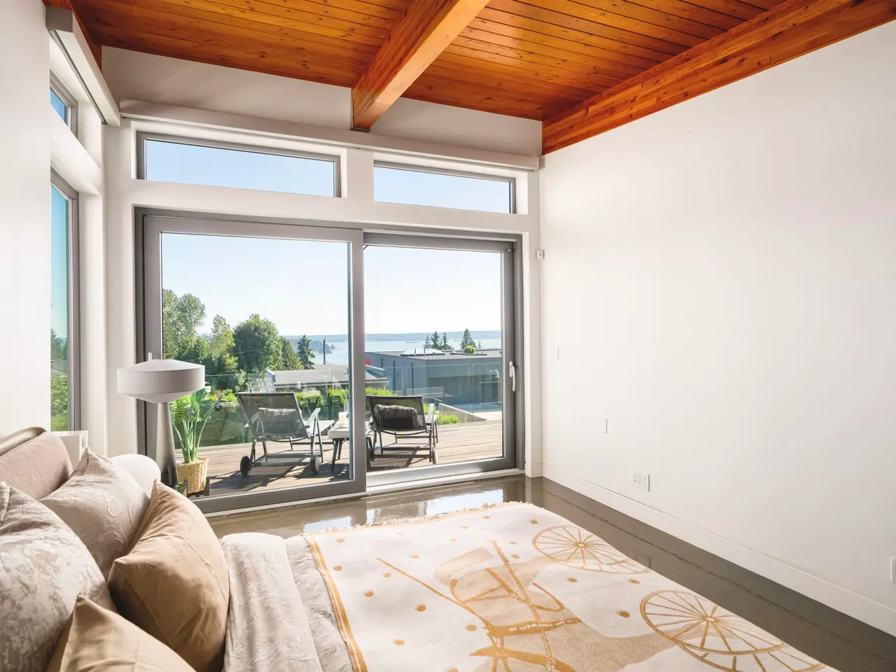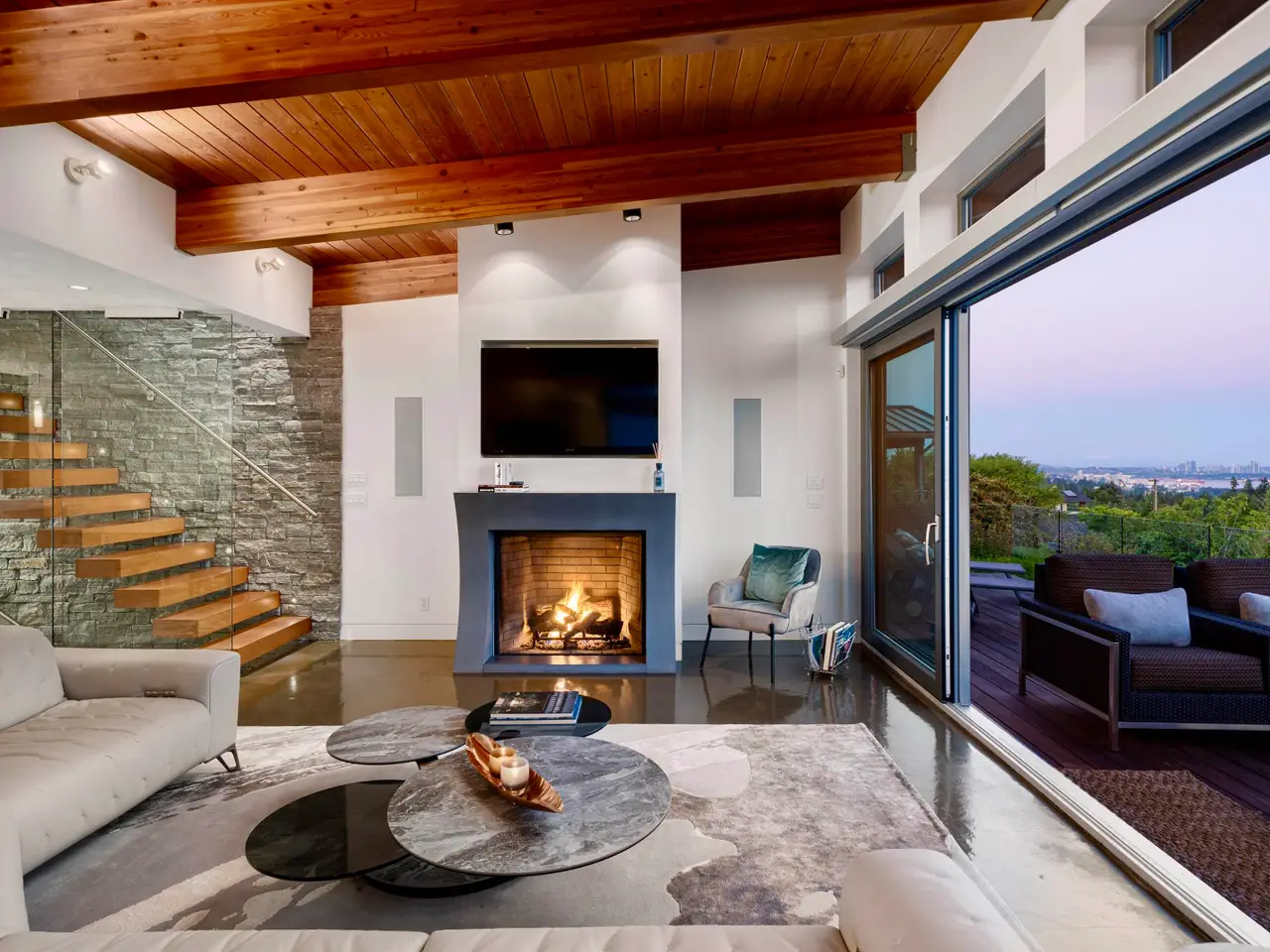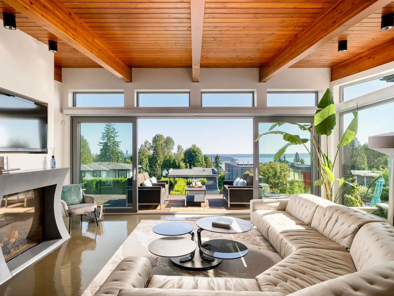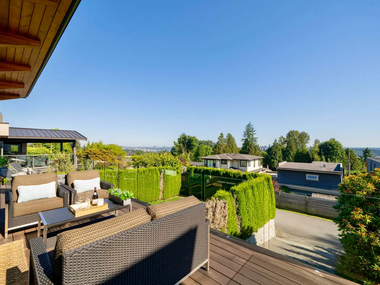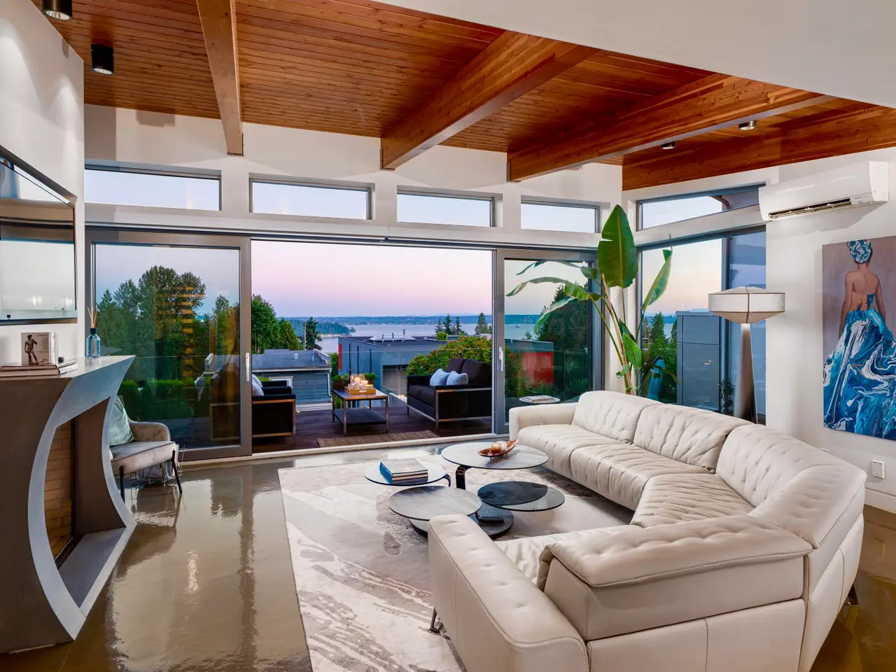 Sweeping panoramic views from Mt. Baker, Vancouver Harbour, Burrard Inlet, Strait of Georgia & Vancouver Island’s coastal mountains, an ever-changing west coast canvas from sunrise to sunset. Designed by renowned Gary Van Dijk, this modern, architecturally refined home offers open-concept living, soaring 10'-14' vaulted ceilings, expansive glazing, floating stairs &seamless indoor-outdoor flow. Primary bdrm on the main level, w/ a huge WIC & spa-like ensuite feat. oversized steam shower & Victoria+Albert soaker tub. Upper level open office can easily convert to 4th bdrm. Located in lower BP in a quiet cul-de-sac, mins to Park Royal & Mulgrave, walking distance to Sentinel Secondary, Chartwell elementary & Hollyburn; easy access to downtown & anywhere on the Shore. Meticulously maintained.