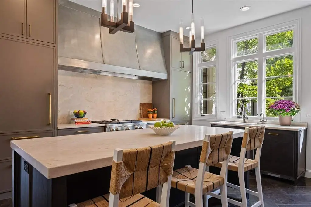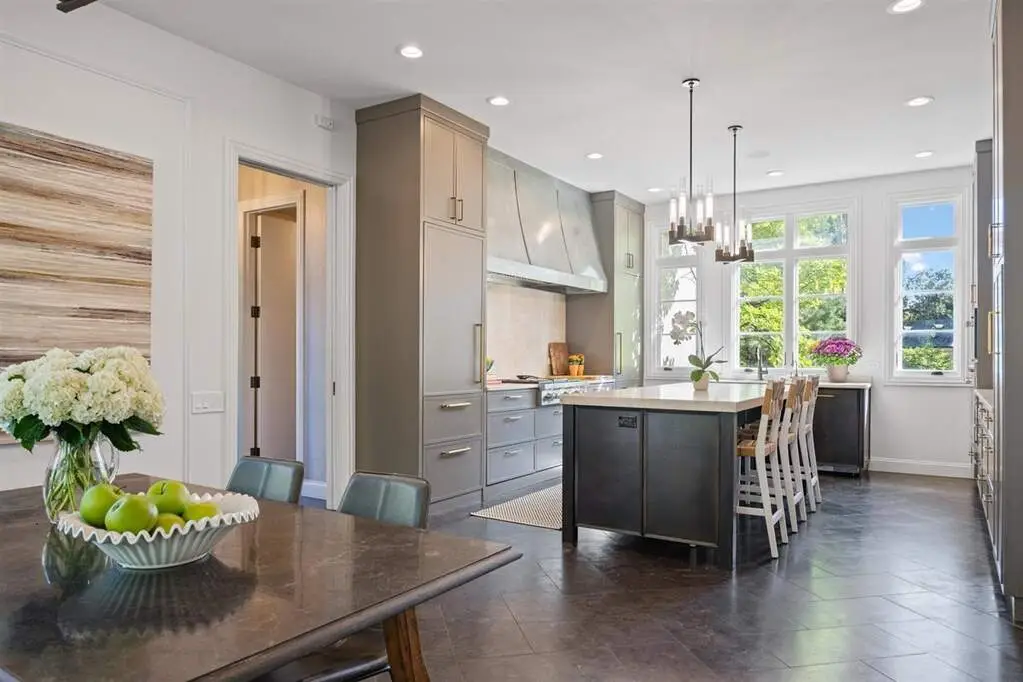 The real "key" to this East Glencoe stunner is its rare balance of fine architectural detail, luxurious lifestyle living, and unbeatable location where every day feels like a getaway with access to your own private association beach just down the block. Set high at the end of a coveted cul-de-sac with lake breezes, this stately white stucco Mediterranean home makes an unforgettable first impression. Crisp, clean lines, oversized black-inlay custom windows, and manicured landscaping hint at the curated sophistication inside. Step through grand glass doors into a dramatic two-story foyer, where 13.5-foot ceilings and walls of windows flood the home with natural light, creating an immediate sense of volume and calm sophistication. A Spanish pied-a-terre vibe flows throughout layered with character and craftsmanship: artisanal plaster trim, reclaimed wide-plank hardwood floors & full-height sliders that dissolve the boundary between indoors and out. Off the foyer, the formal living room offers the perfect spot for intimate fireside evenings, while the paneled office-wrapped in Farrow & Ball Hague Blue with bespoke built-ins-can easily flex into a first-floor bedroom thanks to an adjacent quartz-clad full bath. At the heart of the home a massive dining room bridges casual and formal living framed by arched millwork openings and oversized windows. Family room custom painted in serene monochromatic tones with Restoration Hardware style is anchored by a wall of French doors that open seamlessly to the newly designed backyard oasis-making indoor-outdoor entertaining effortless. The Chef's kitchen pairs beauty and function: dark grey custom cabinetry with Newport Brass hardware, a sculptural oversized range hood, high-end stainless appliances, and a large island with seating. Adjacent, the sunny breakfast room opens through a retractable Nano glass wall to a resort-level backyard featuring a built-in outdoor kitchen, dining pergola, cozy fire-pit lounge, and lush landscaping designed for year-round enjoyment. Practical luxury continues with a fully equipped mudroom featuring custom lockers, secondary laundry, a large walk-in pantry, powder room, and direct access to the attached three-car garage. Upstairs volume and light continue along the extra-wide hallway leading to four spacious bedrooms. The primary suite is a sanctuary with dual walk-in closets and a Four Seasons-level marble bath wrapped in Calcutta Gold-complete with double vanity, soaking tub, steam shower, heated floors, and fixtures by Waterworks and Phylrich. A guest suite with private marble bath and walk-in closet sits nearby, while two additional bedrooms share a sophisticated Jack-and-Jill bath. A second laundry room adds daily convenience. The fully finished lower level offers endless recreation and entertainment with a full theater area, playroom, custom bar, and temperature-controlled wine cellar-plus a 5th bedroom with full bath for guests or live-in arrangements. Set on a half-acre of beautifully landscaped grounds, just one block from Harbor Street's keyed gate to your private beach, this residence captures the very best of North Shore living-award-winning New Trier schools, charming downtown nearby, and a 25-minute train ride to the city. Full of character yet aligned with every modern must-have, 320 Keystone stands apart for buyers who crave refined design, authenticity, and a touch of everyday magic-not another cookie-cutter new construction home.