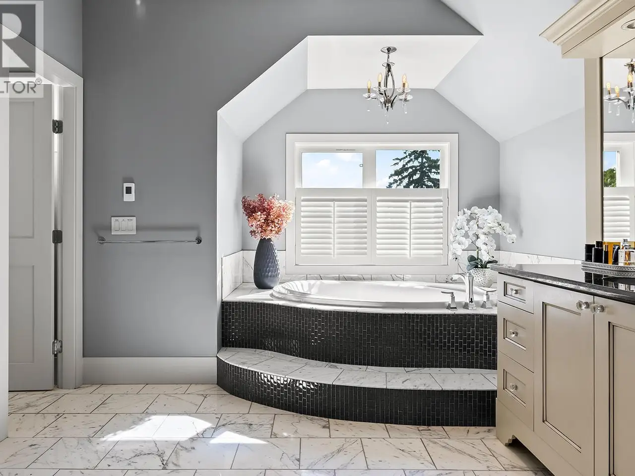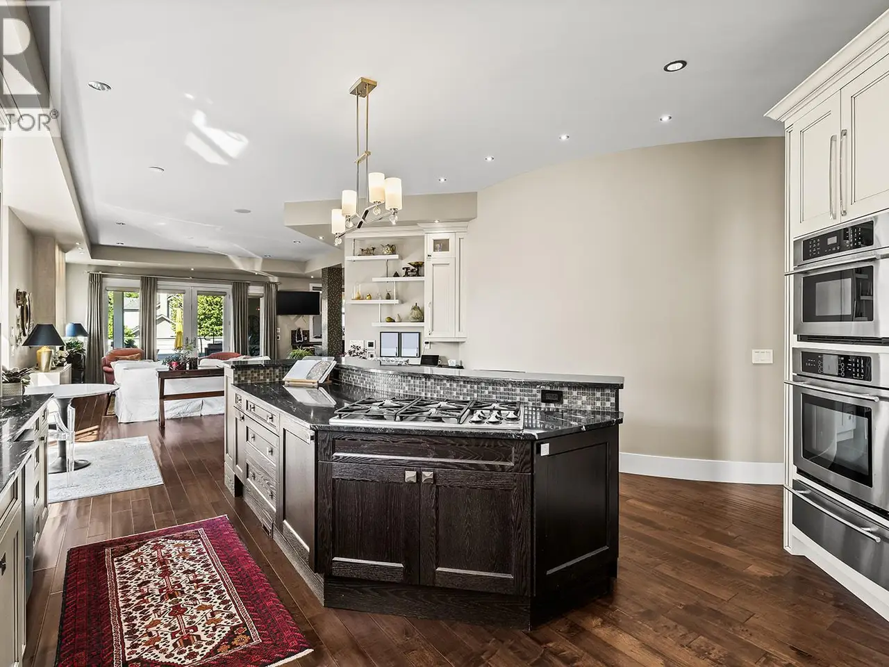 Welcome to luxury living on highly desirable Abbott Street! Combining timeless elegance with modern functionality, a spacious layout and impeccable finishes throughout. The grand double-storey foyer, embraces you with under-floor heated tile, soaring vaulted ceilings, and an abundance of natural light. An elevator, enhances accessibility and convenience. The ground level is perfect for guests or multi-generational living, featuring a private suite with kitchenette, sitting room and garden courtyard access, ideal for in-laws or Airbnb. An office, home theatre, laundry, and pool bathroom round out this level. The main floor chef’s kitchen with premium appliances and pantry, a great room with gas fireplace, two bedrooms with a shared bathroom, powder room, dining area, and a full wet bar with a dishwasher, wine and beverage fridges is an entertainer’s dream. Step outside to a stunning lounge and dining area with gas fireplace, TV, phantom screens, and hot tub. The top floor is an indulgent primary retreat with a spa-inspired marble bathroom, dressing room with laundry, private sitting area with fireplace, and a serene sun deck. Enjoy your secluded oasis with a UV pool, auto cover, and ample lounging space. A heated triple garage with additional storage completes this exquisite home. This freehold, bare land strata with private beach access has a low monthly strata $30 covering insurance for the common road. Ideally located near Pandosy Village, KGH, and the lake.