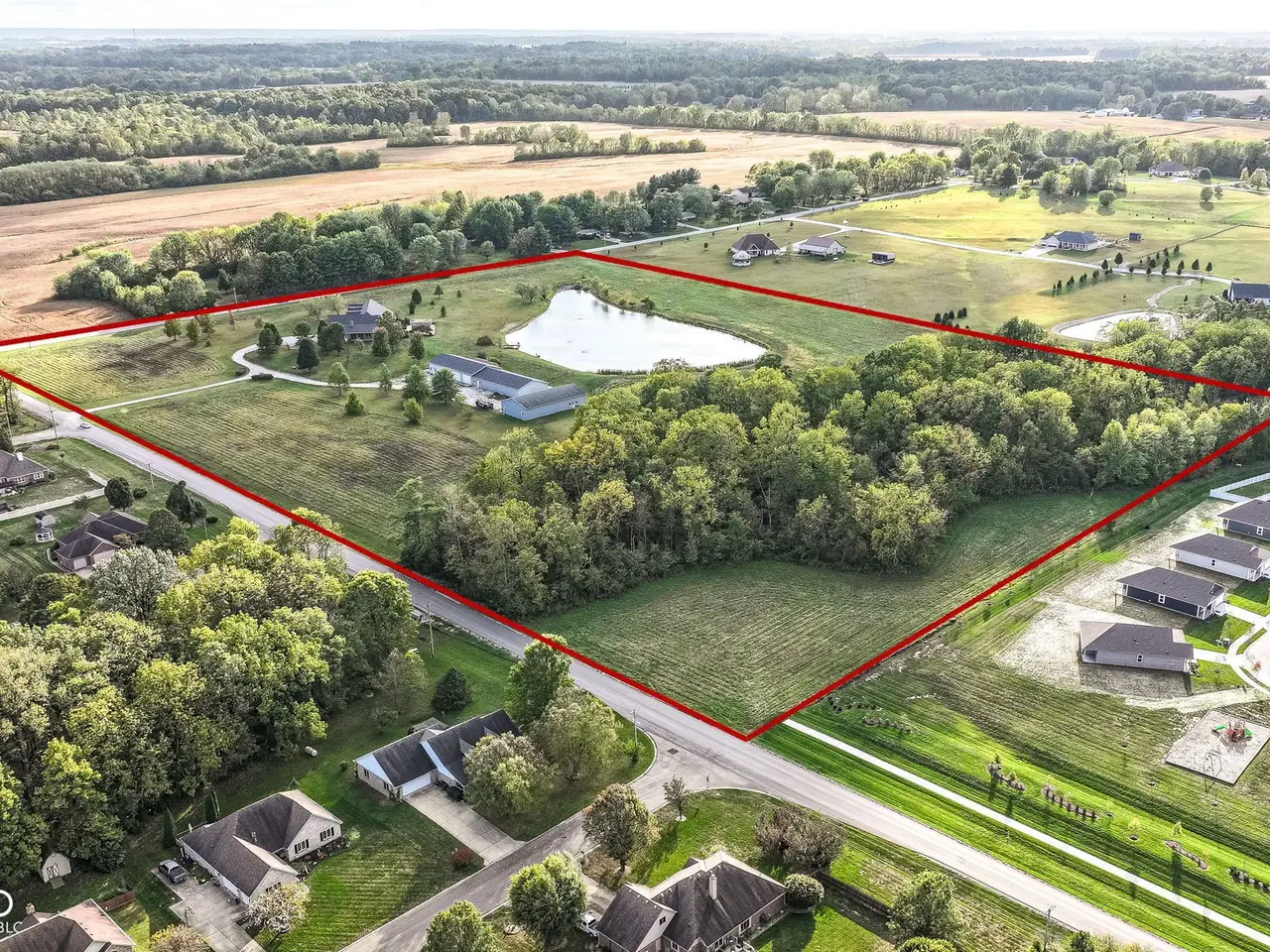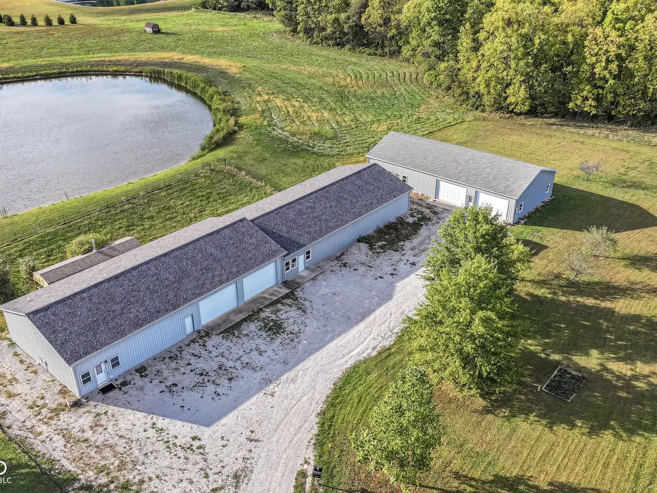 This 26.6 Acre parcel is one of the few estate class properties within 15 minutes of major Indianapolis amenities like airports, shopping, restaurants, and fast growing economic areas. Boasting a privately owned 5 acre pond, creek, forest, and pastures, you'll find wildlife like herons, ospreys, deer, turtles and more flock to the property in droves. The all brick ranch, less than 20 years old, is a main level masterpiece. Throughout the home, massive windows flank the property, and every window was placed with water views that let natural light glisten in off the private pond. Custom built for lovers of books and collections, it features a large library capable of housing thousands of books, decor, or collectibles. 6 bedrooms, with BRAND NEW carpet throughout the entire house. Custom kitchen cabinets match the rest of the home, and integrate high end built in appliances. There is no shortage of entertainment with a large game room in the basement and bonus rooms like a movie theatre, rooms for offices + exercise, and ample storage. All of which under a 1 year old roof. Additionally, there are not 1, but 3 40 x 80 ft outbuildings totaling almost 10,000 sq ft of space. Garage #1 features large equipment and tool storage. Garage #2 & #3 have full insulation, drywall, HVAC, and plumbing. Included are Workshop rooms, Offices, bathrooms, heated garages and even an additional dwelling unit / apartment. Complete with kitchen, laundry, living, bedroom, and full bathrooms. The potential of this property can only truly be witnessed in person.