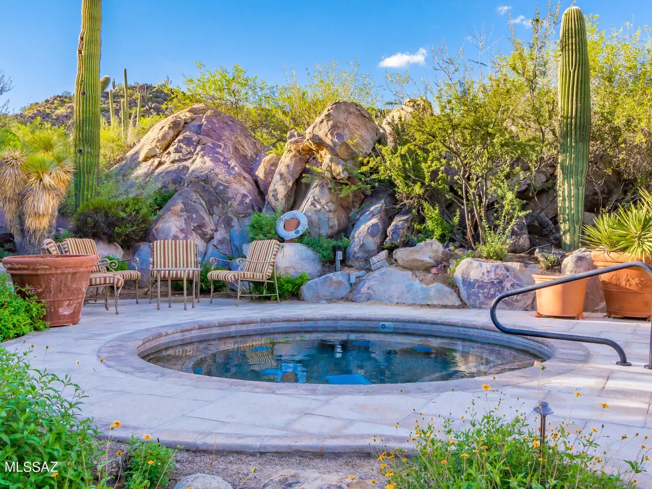 Burnt Adobe Brick Home with Modern Influences in Stone Canyon.Experience refined desert living in this beautifully executed burnt adobe brick home that blends timeless character with modern design. Soft arches, exposed adobe walls, and metal accents pair seamlessly with concrete floors and clean, organic finishes for a minimalist yet inviting aesthetic.Presented fully furnished, the interiors reflect a cohesive modern desert style, allowing for an effortless move-in experience. The kitchen is sleek with a functional layout, generous island and breakfast nook. The mudroom includes a built-in bench, drop zone, and storage closet, while the spacious laundry room provides additional cabinetry, a workstation, and sink.