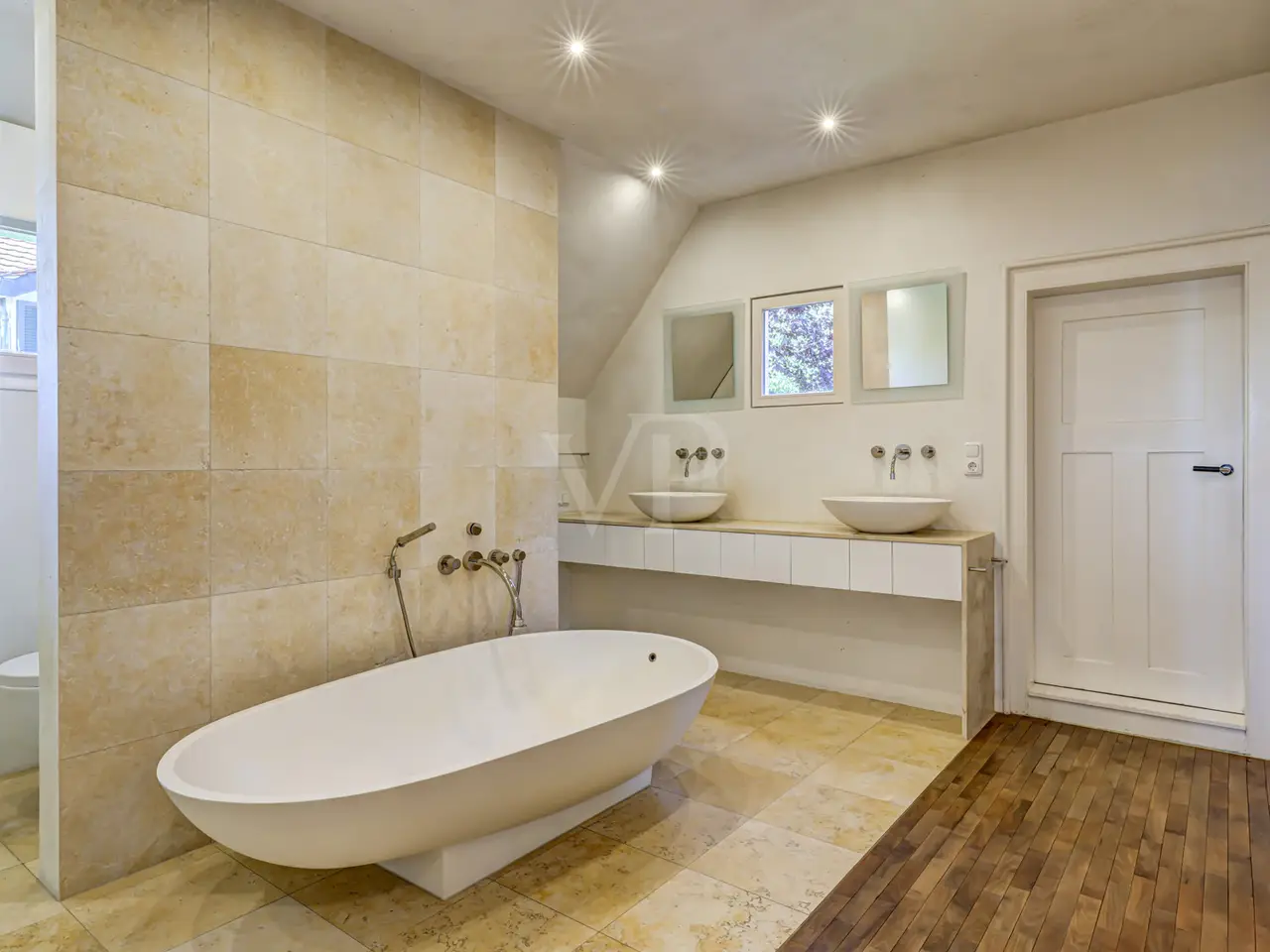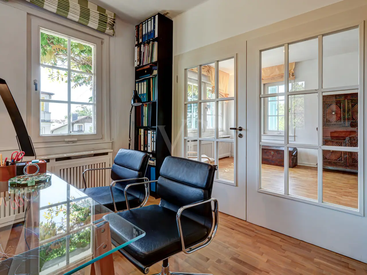 A rarity with character - Stylish old villa with history and heart This exceptional property awaits you in a quiet, charming residential area - a home that breathes history and at the same time offers modern living comfort in perfection. If you are looking for a unique property with soul, you will find it here: This stylish villa combines the architectural charm of bygone times with the comforts of modern living - ideal for families who value individuality, space and quality. A piece of history, lovingly preserved Originally built in 1911, the imposing house was extended in the 1950s with a solid solid construction extension. A living space of approx. 201 m² extends over four floors - spacious, flooded with light and thoughtfully designed. A total of seven rooms offer plenty of space for family life, work and relaxation. Three spacious bedrooms and two modern bathrooms ensure comfortable living at a high level. Style meets functionality As soon as you enter the house, you will notice its extraordinary character: original mullioned windows allow daylight to flood into the rooms and, together with the impressively high ceilings, emphasize the spacious atmosphere. The living area, partially open over two floors, becomes the focal point of the house thanks to a stylish fireplace - a place for cozy evenings and family gatherings. Directly adjacent, an elegant library invites you to retreat and read - a real highlight for book lovers. Modern furnishings for contemporary living The high-quality fitted kitchen with separate pantry leaves nothing to be desired. Equipped with modern appliances and well thought-out storage space, it becomes the centerpiece of culinary creativity. The house is also technically well-equipped and in an extremely well-kept condition, so you can move in and feel at home straight away. Romantic garden - a green refuge The fully ingrown property is a real retreat: with mature trees, lovingly landscaped beds and sheltered areas, it offers both children and adults an ideal environment to play, relax and enjoy. Particularly noteworthy is the spacious east-facing terrace - ideal for a sunny breakfast or quiet hours outdoors. Two separate garden sheds offer plenty of space for tools, bicycles or hobby equipment. Comfort even in everyday life This attractive offer is rounded off by two covered parking spaces in the carport - convenient, secure and protected from the weather. The surrounding infrastructure is impressive with short distances to schools, nurseries, shopping facilities and leisure activities - an ideal combination of rural living and urban proximity. Conclusion: This villa is not an off-the-peg house - it is a home for people with a sense for the extraordinary. A property that tells a story and at the same time is equipped for the future at the highest level. Let yourself be inspired by a place where memories are made and dreams are lived.