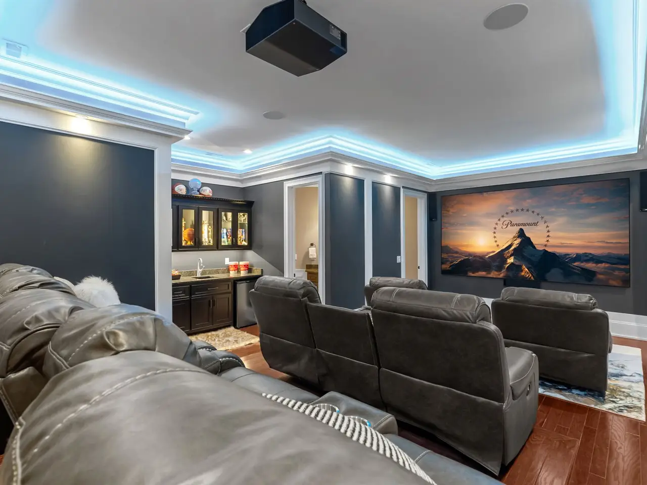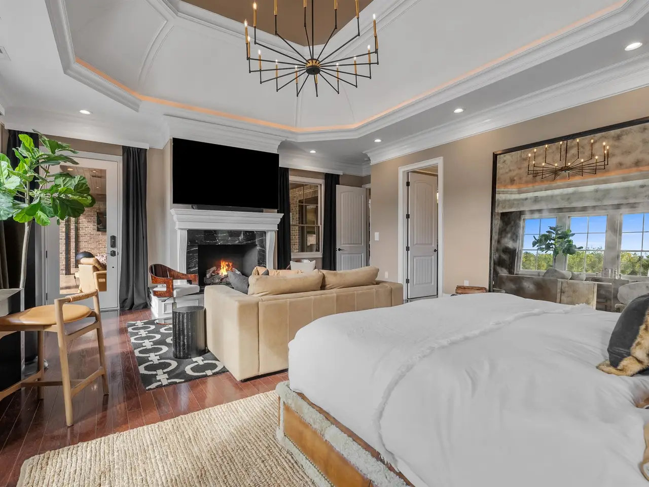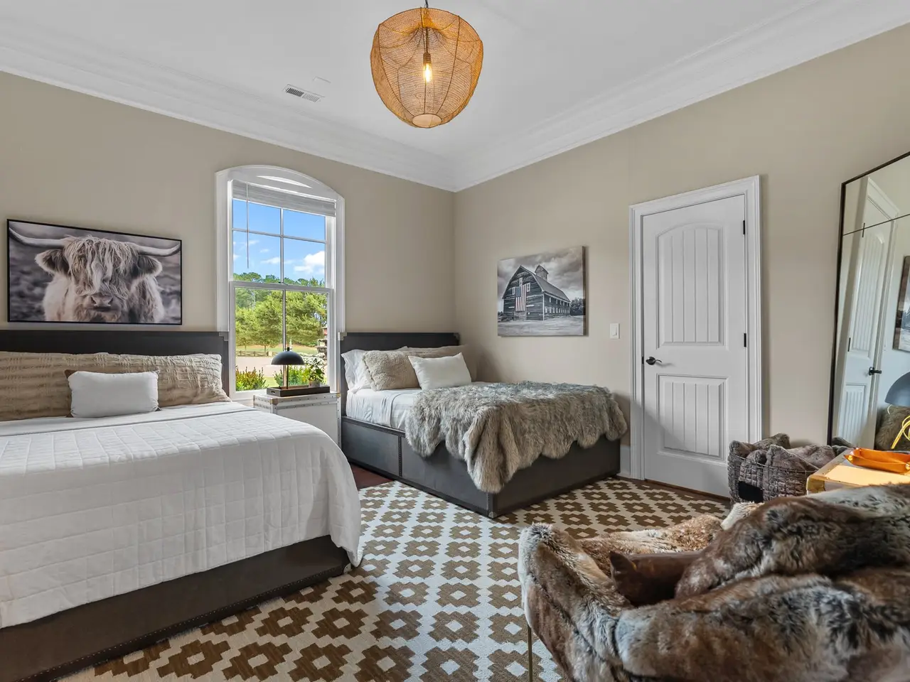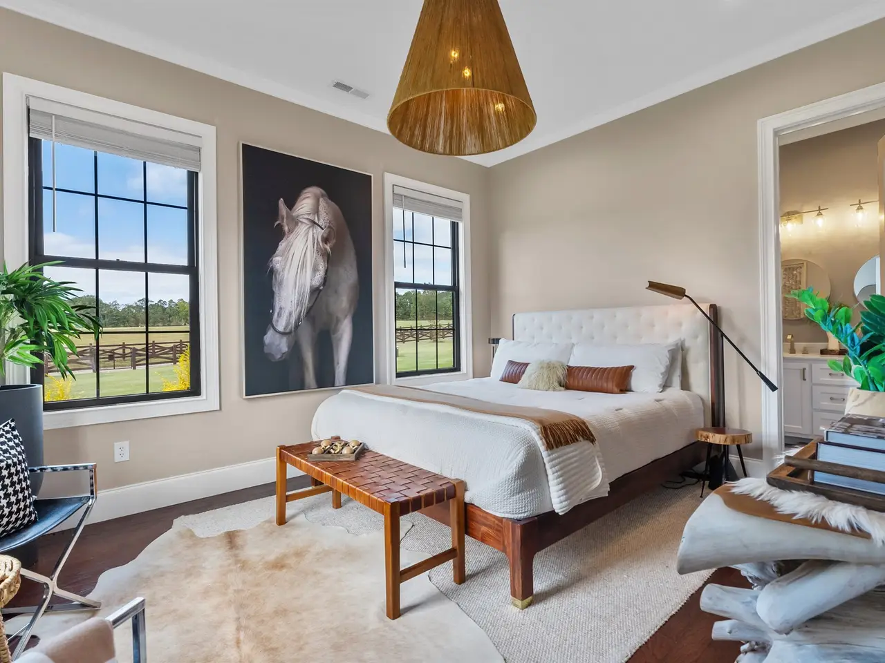 Imagine more than ten acres of pristine, perfectly curated land with an extraordinary home designed for entertaining at every level. Agape Acres Estate is tucked behind private gates, down a tree-lined paver driveway where a graceful fountain welcomes you home. This grand estate feels worlds away from everything, yet remains perfectly positioned close to all modern amenities in Simpsonville, SC. While every corner holds its own charm, the backyard truly steals the show- breathtaking, functional, and unforgettable. A sparkling saltwater pool with a spillover spa glistens beneath the Carolina blue sky, with a nearby putting green ready for friendly poolside competitions. An expansive covered porch spans the width of the home, featuring an outdoor living room, wood-burning fireplace, and full kitchen/grilling area. This space can be fully enclosed and climate-controlled for year-round comfort. Perfect for hosting holiday gatherings that flow effortlessly from indoors to the outdoor fireplace. Enjoy your morning coffee as the mist rises off the pond or unwind fireside beneath the stars. From game days to quiet nights, all the outdoor space has been intentionally designed for every South Carolina season. The pool house feels like a private resort suite, luxurious, stylish, and perfectly situated in the Carolina countryside. Inside, you'll find a hotel-inspired bedroom with ensuite luxury bath overlooking the lush backyard, an additional full guest bath, laundry area, and an attached garage with extensive storage. The poolside kitchen features a large hibachi grill ideal for brunches or alfresco dinners, and like the main porch, this entire area can be fully enclosed, and temperature controlled. These are the spaces where good food and laughter linger long after the plates are cleared. The land itself invites exploration, whether by four-wheeler or alongside a few barnyard friends. Horses or goats would feel right at home here, grazing by the pond stocked with Large Mouth Bass and Bream. The perfect spot for a quiet afternoon of fishing. Roughly four acres are fully fenced, offering a sense of peace, privacy, and panoramic views at every turn. Inside, the same sense of warmth and refinement continues. Rich hardwoods and elegant tile run throughout, with no carpet in sight. The great room, anchored by a grand fireplace and custom built-ins, flows seamlessly into the chef's kitchen, breakfast area, and elegant dining room. The formal dining space feels both sophisticated and inviting, complete with an adjoining bar that turns dinner parties into lasting memories. Imagine hosting the upcoming holidays in this elegant yet comfortable setting. The main-level primary bedroom suite is a serene retreat with a showstopper gas-log fireplace, sitting area, and two custom closets with washer/dryer area. It has the most amazing view of the backyard/pool. Two additional bedrooms with full ensuite baths, an elegant office or sitting room with a gas fireplace, and a home theater room with a wet bar/kitchenette for movie nights are all located on the main level. You'll also find two conveniently placed powder rooms and a spacious walk-in laundry room on this floor. Head to the second level to find two additional ensuite bedrooms, each with beautifully custom-tiled baths, along with an extra office, and a spacious recreation/living area featuring a well-appointed kitchenette. This home is ideal for multi-generational living or hosting long-term guests. With over ten acres of land, there's enough room to add future home sites or additional amenities. Every detail of this grand estate has been carefully curated, from the custom ceiling designs and designer lighting, to the fully finished, epoxy-coated five-car garage. Every closet custom, and every space designed to showcase exceptional craftsmanship. This is a home that seamlessly blends indoor and outdoor living spaces together. You will certainly have a hard time choosing your favorite spot.