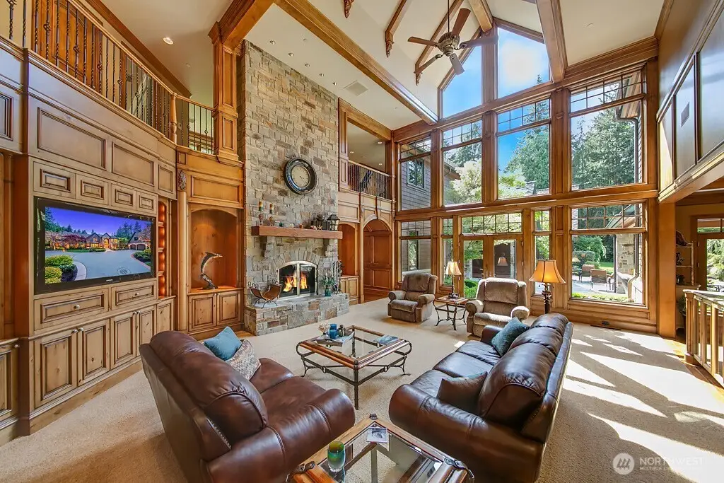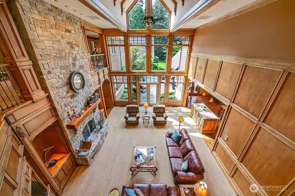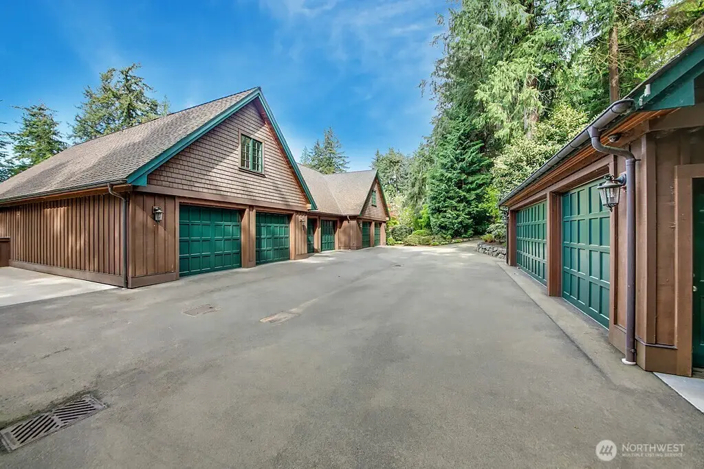 Auto enthusiasts will be captivated by the world-class collector's garage, featuring 14 bays and an impressive showroom - just the beginning of the unmatched luxury this private gated estate offers. Set on 2.79 acres, the home seamlessly blends distinctive European architecture with the natural splendor of the Northwest. Meticulously crafted interiors showcase soaring cathedral ceilings and rich wood and stonework, echoing the region's rugged beauty. Step outside to a covered heated patio designed for year-round enjoyment, with a stone fireplace, hot tub and tranquil waterfall - complemented by a nearby steam room. Entertain in style with a billiards parlor, bar and home theater. Minutes from waterfront parks, I-5, downtown Edmonds and Seattle.