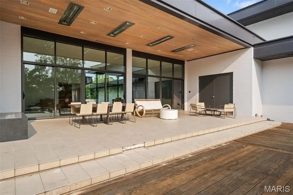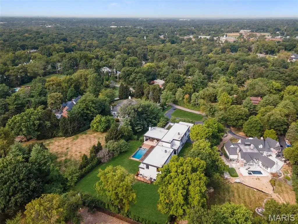 Secluded on a private lane in Ladue, this rare, 12-year-old modern architectural gem boasts over 10,000 sq ft with floor-to-ceiling windows flooding the home with natural light, accented by 14 ft ceilings and high-end finishes throughout. The sophisticated great room is perfect for entertaining, while the art gallery with bar area provides additional options for your guests. The brand new custom kitchen and walk-in pantry offer integrated appliances behind custom cabinetry. Cleverly separated from the entertaining spaces, the private family living area offers a tranquil retreat featuring a main flr luxury suite with sitting room and his/her closets. Find 4 bedrm suites and laundry on the 2nd level. The lower level showcases a 2-lane bowling alley, media rm, large rec room with wet bar and a bedrm suite. Walk out to the saltwater pool and covered patio with fire feature. An indoor half-court basketball/pickleball court is perfect for a pickup game. A 4-car garage, generator and more. An indoor half-court basketball/pickleball court is perfect for a pickup game. This home is a perfect setting for an art collection.
