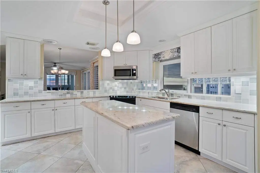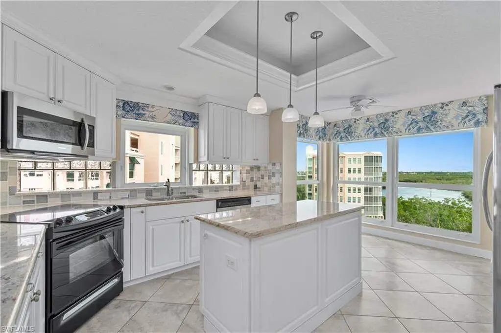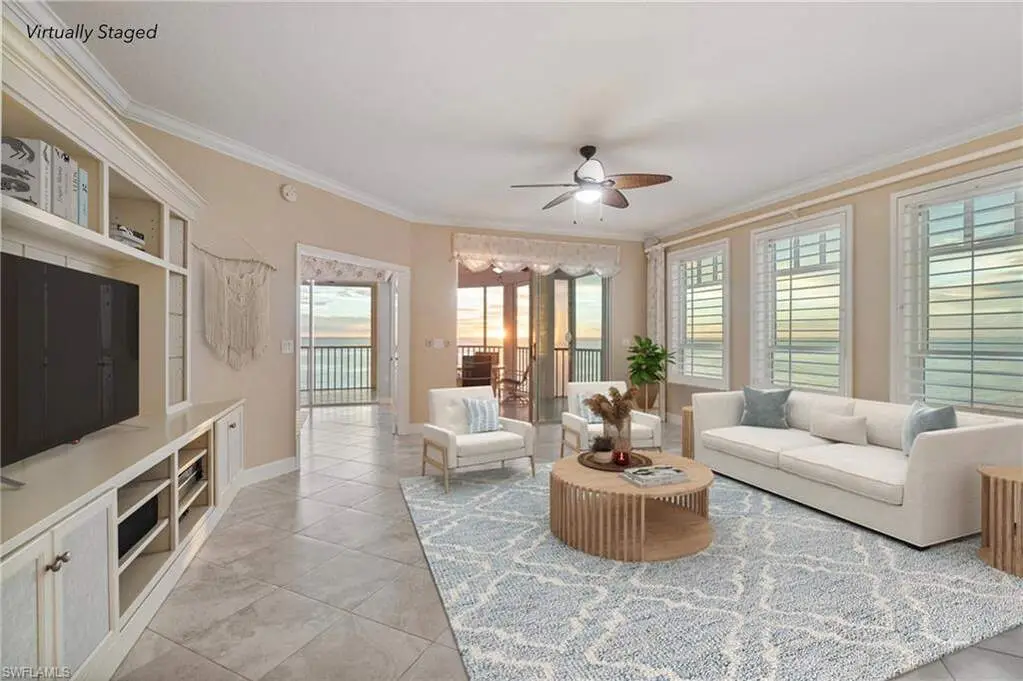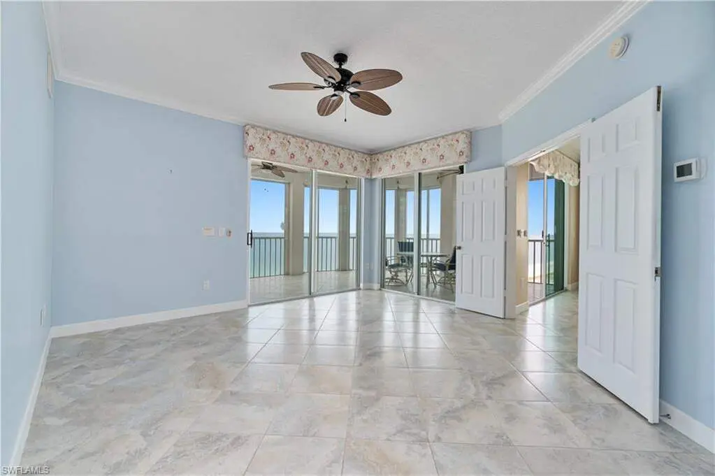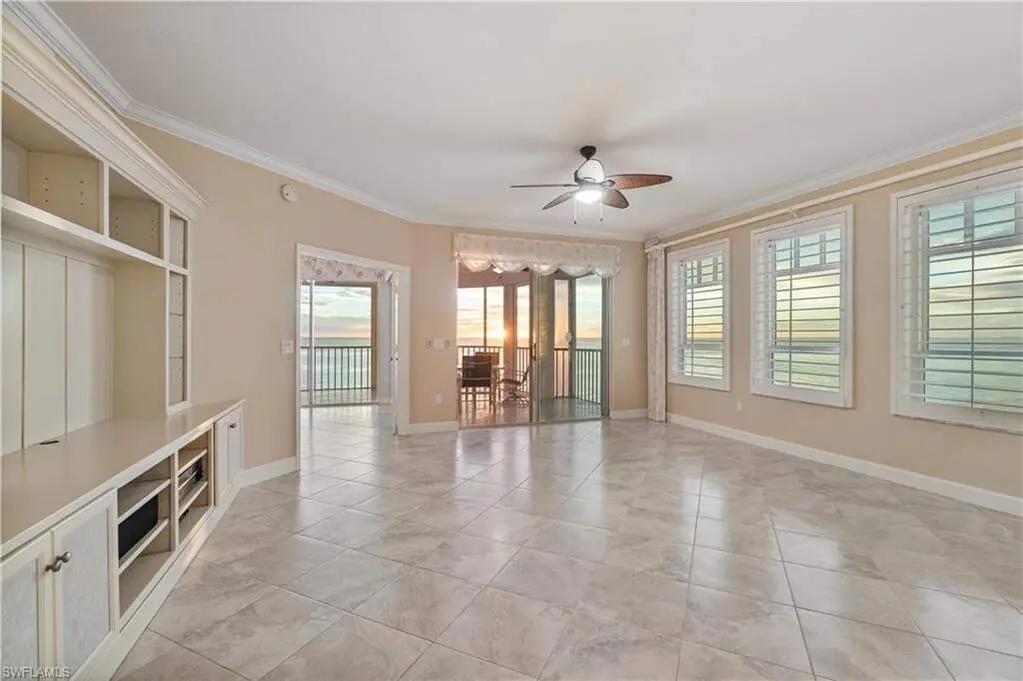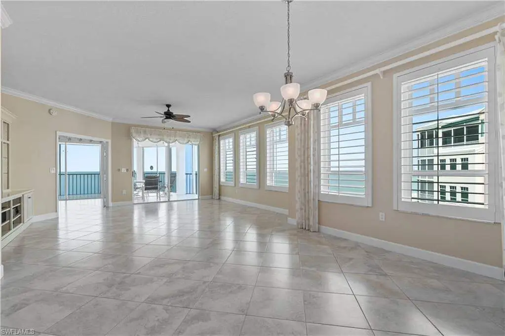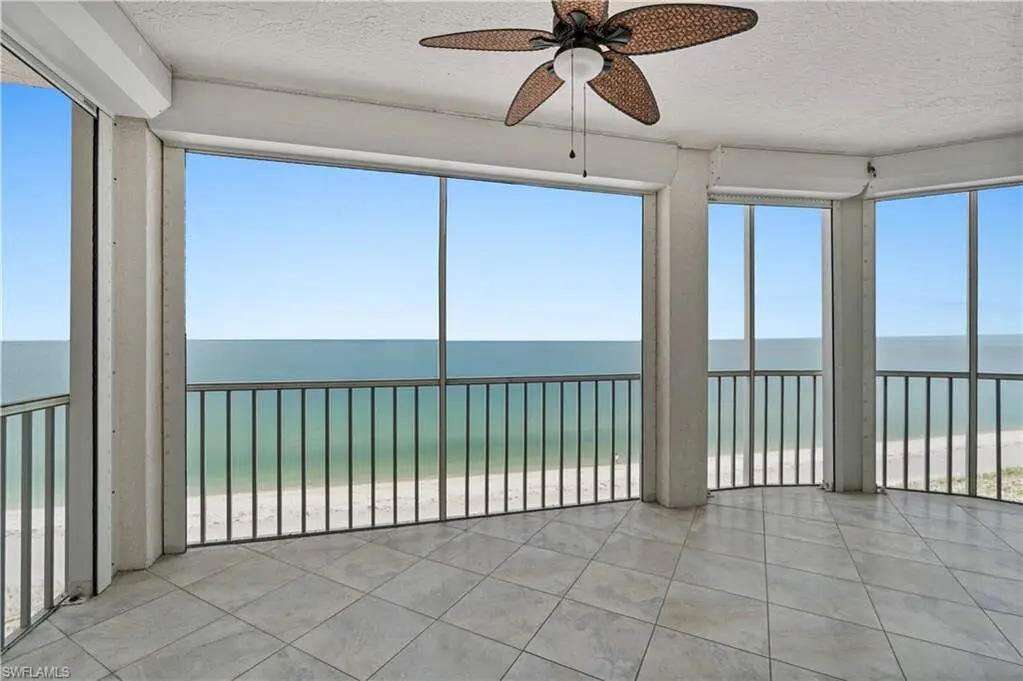DIRECT BEACHFRONT, END-UNIT WITH 6TH FLOOR UNOBSTRUCTED GULF VIEWS in the coveted Barefoot Beach Club! Enjoy panoramic, front-row views of the Gulf from this beautifully maintained residence in North Naples' premier coastal community. Bathed in extraordinary natural light courtesy of the extra windows available in a rare end-unit. With over 2,000 sq ft under air, this residence features 3 bedrooms, 3 bathrooms, tile flooring throughout, and electric hurricane shutters. The kitchen boasts white cabinetry, granite countertops, a built-in desk, and breathtaking views of both the Gulf and Bay. Step out to the wraparound screened lanai to take in endless sunsets, spot dolphins and manatees, and watch boats sail by. The primary suite offers private lanai access and a spacious en-suite bath with dual vanities, soaking tub, and a walk-in closet with custom built-ins. Nearby to the BRAND-NEW CLUBHOUSE with state-of-the-art fitness center & resort-style pool. Barefoot Beach residents enjoy 3 miles of beach, 2 pools/spas, manned/gated entry & on-site mgmt. OPTIONAL "Club at Barefoot" offers tennis, 2 restaurants & beachside food/bev/chair service. Excellent Collier County location minutes to Mercato, Waterside & easy access to RSW Airport.