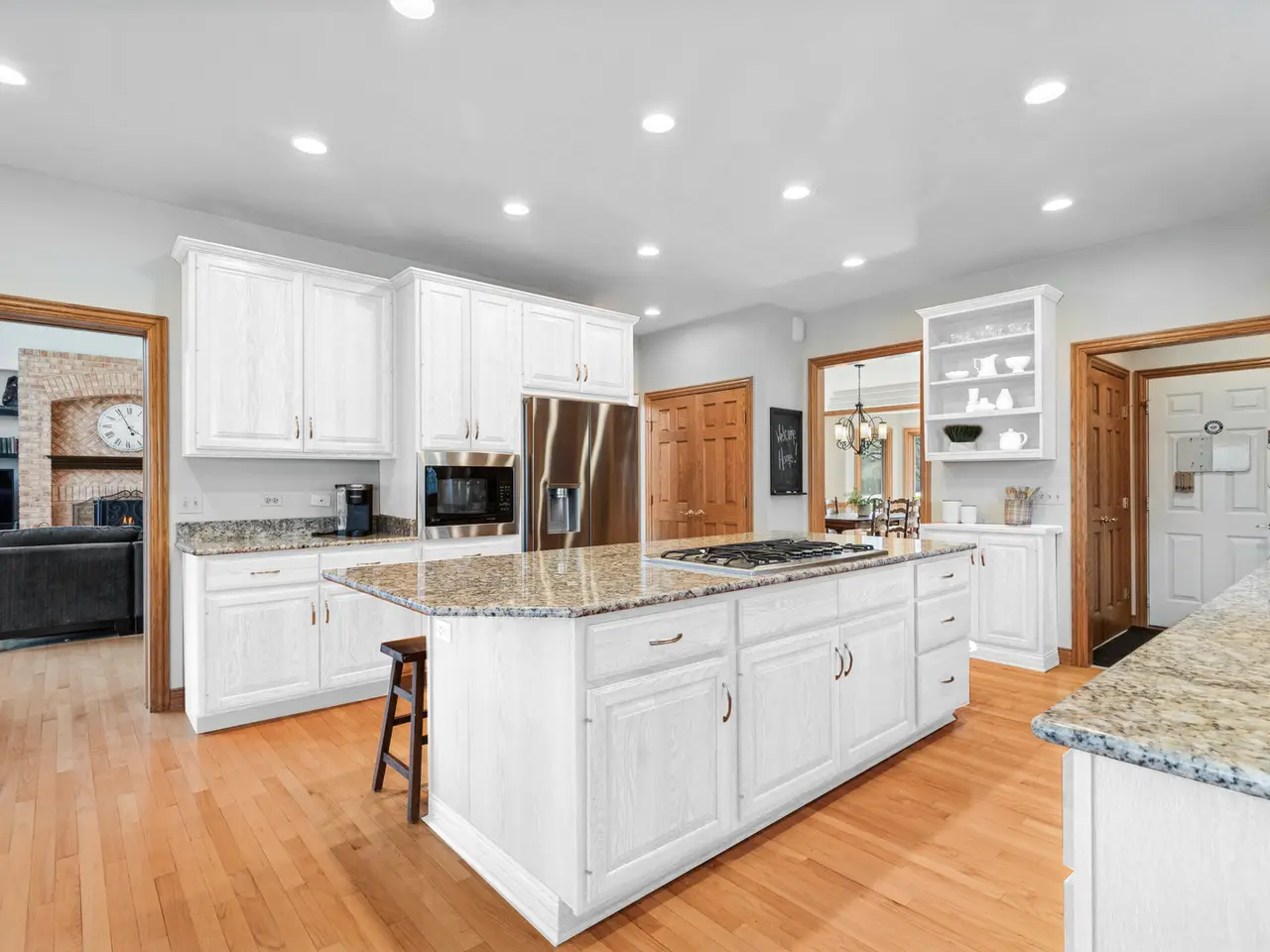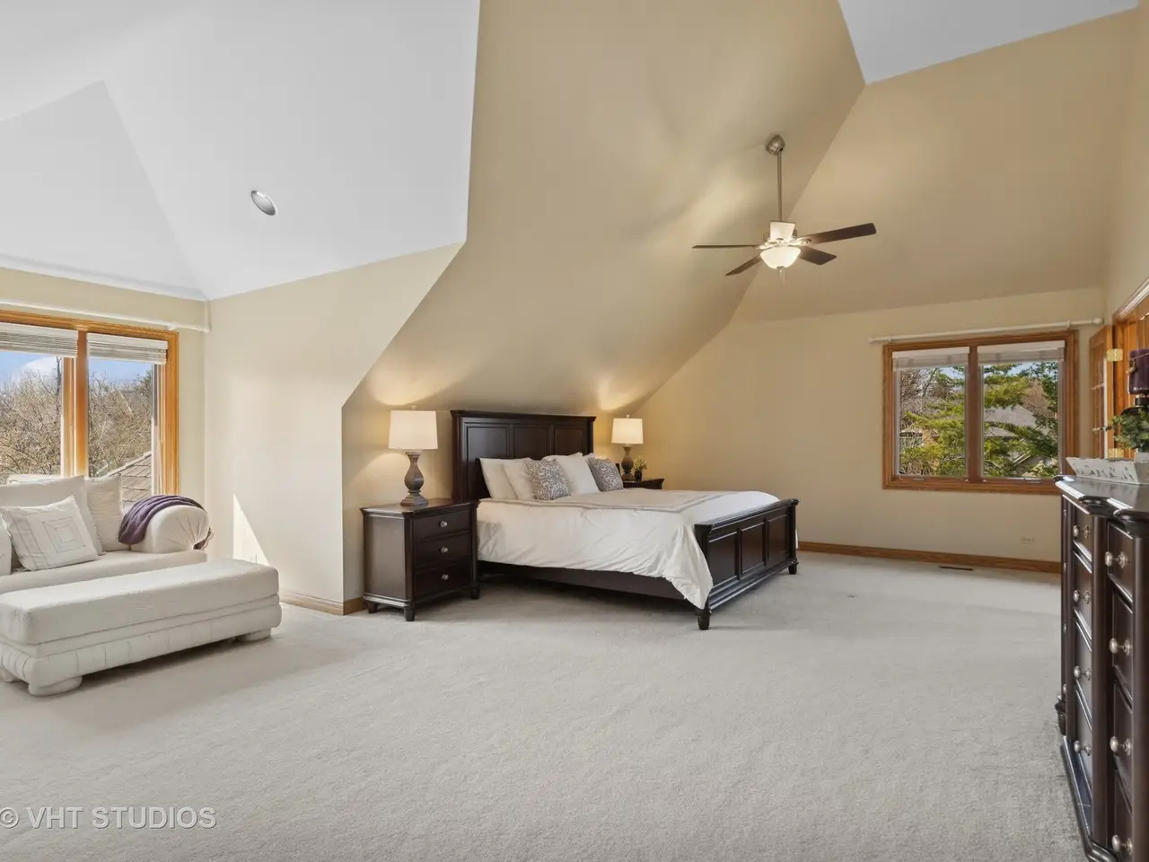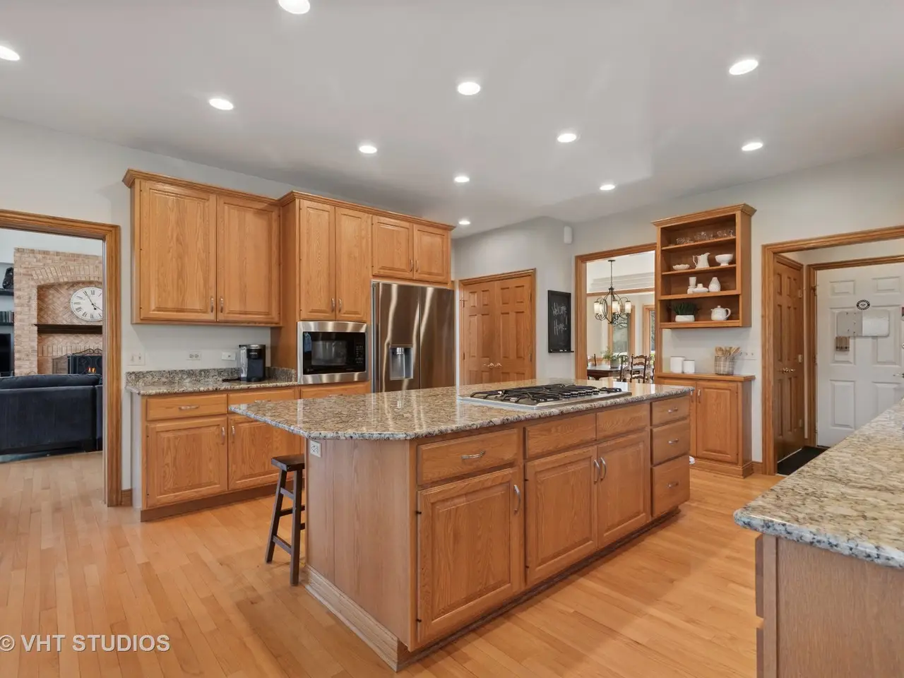Tucked away on a quiet street in Libertyville's sought-after Wineberry neighborhood, this architecturally stunning 5-bedroom, 4-bathroom home offers the perfect mix of space, style, and privacy. Backing to open land, the backyard is incredibly serene-ideal for relaxing evenings or hosting friends and family. As you walk through the front door, you're welcomed into a dramatic great room with a soaring wall of windows that fills the space with natural light. The custom wet bar and beautiful fireplace make it a perfect spot for both entertaining and everyday living. The gourmet kitchen is not only spacious but thoughtfully designed, featuring granite countertops, high-end stainless appliances, and a unique octagon-shaped breakfast nook that makes every meal feel just a little more special. This home is made for today's lifestyle, with a first-floor office and a main-level bedroom with an adjacent, recently remodeled full bath-ideal for guests, extended family, or multigenerational living. There's also a formal dining room with plenty of space for hosting during the holidays or special occasions. Upstairs, the primary suite is a true retreat, complete with a cozy sitting area and a gorgeous, fully updated spa-inspired bathroom with a soaking tub, oversized walk-in shower, and dual vanities. Two more generously sized bedrooms share a large, well-appointed bath. The finished English basement offers so much extra space-whether you envision a media room, home gym, or a game room, there's room for it all. And tucked away downstairs, you'll find a hidden wine cellar that holds up to 3,000 bottles-a dream for any wine lover. With a new roof, fresh updates, and an unbeatable location near Libertyville's vibrant downtown, award-winning schools, METRA, and I-94, this home truly has it all. It's an incredible opportunity to enjoy luxury, comfort, and community-all in one amazing place.