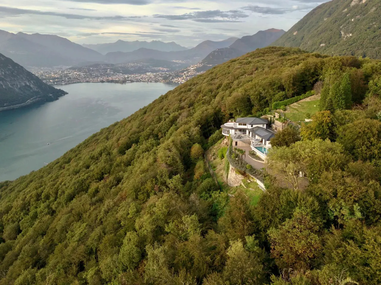 • Secluded location without neighbors • Panoramic views over Lake Lugano, up to Mont Blanc • Superb home automation & highest quality equipment • 20 minutes from Lugano, 25 minutes from Chiasso/Italy