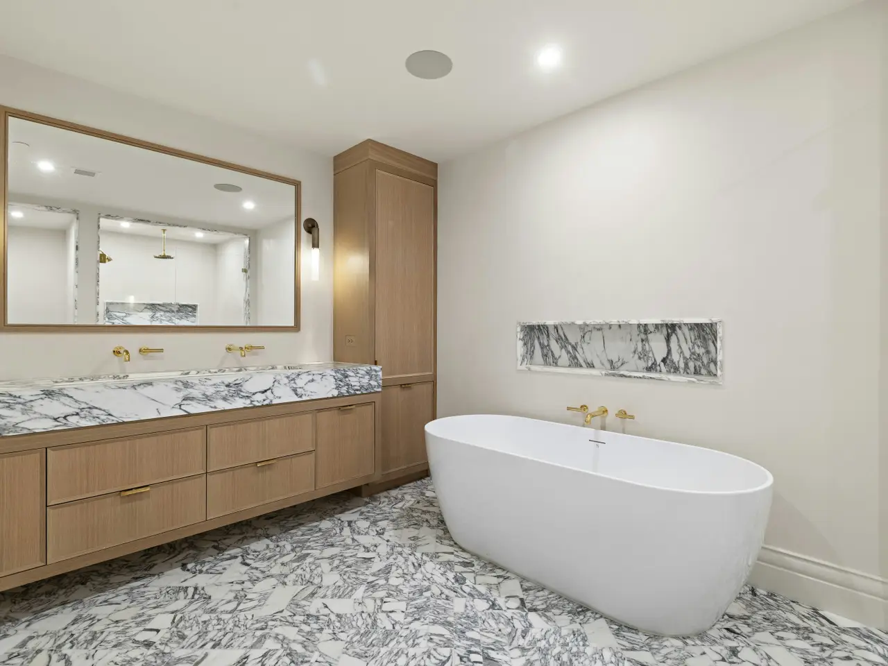 225 Park Avenue is another outstanding new development project by HRG Development. Taking design cues from the historic neighborhood and led by exacting detail and quality craftsmanship, this bespoke ground up new construction 4 bedroom 3 bathroom luxury duplex residence feature large open floor plan with private roof deck, state-of-the-art designer kitchen and bathroom with all the benefits of a newly constructed steel and concrete building with commercial elevator and triple pane windows in a convenient downtown location.  The professional Chef's kitchen features custom white oak cabinetry, large pantry, breakfast/coffee cabinet, and oversized white-oak island. Wolf, Subzero, and Bosch appliances including built-in Subzero refrigerator/freezer with internal water dispenser, 36" Wolf Professional induction range with electric convection oven, Wolf combination speed oven/microwave, Bosch custom panel dishwasher, custom range hood with Wolf Pro liner. Marble kitchen countertops and backsplash; brass kitchen faucet and oversized sink with garbage disposal. The living room features a wet bar with custom painted and white oak cabinetry, brass and glass shelving, bar sink and faucet. Built-in Subzero under-counter wine refrigerator and Subzero under-counter drinks refrigerator and marble countertop. Primary bathrooms with dual white oak vanity, oversize trough sink and storage cabinet, oversized glass-enclosed curb-free shower in Tadelakt plaster finish with linear drain, floating bench, and luxury 3 piece shower comprising overhead rain shower, wall mount showerhead, and hand-held shower, freestanding bathtub with wall mounted faucet, and separate WC with Kohler Innate smart toilet. Second bathroom with dual white oak vanity, soaking tub with shower fixtures, and wall hung Duravit toilet. Third bathroom with single white oak vanity, curb-free shower and wall hung Duravit toilet, Waterworks, Watermark, and Kohler Castia fixtures.  Private roof deck with NYC views includes an outdoor kitchen with built-in natural gas BBQ with sink, and refrigerator and private terrace off guest bedroom. Triple pane windows create a virtually airtight, silent interior. Ground floor lobby with trash/recycling room, mailboxes, elevator access and deeded storage. Full-size stretcher complaint passenger elevator provides direct access to unit via key FOB entry. Distributed audio/speakers throughout including outdoor spaces Closed cell spray foam insulation and sound insulation throughout    Easy-to-use Akuvox video intercom with 7" touch screens located on each floor with built-in mic and speaker for clear communication. Supports facial recognition, fob entry, and SmartPlus app integration for secure and convenient access. Accessible remotely via cloud or smartphone app. Each room is equipped with a Strong VersaBox for tidy equipment storage behind the TV, along with HDMI and networking cables for seamless TV and internet setup. LED recessed lights and Lutron Caseta smart lighting system New 25-year PVC roof with planted green roof area. Storm water management and retention tank. 2 years garage parking spot included. 225 Park is nestled in downtown Hoboken and conveniently located 1.5 blocks from Church Square Park.  This ideal location offers limited through traffic and is a short distance from the Hoboken PATH, Ferry and Train Terminal and the future home of HOBOKEN CONNECT.