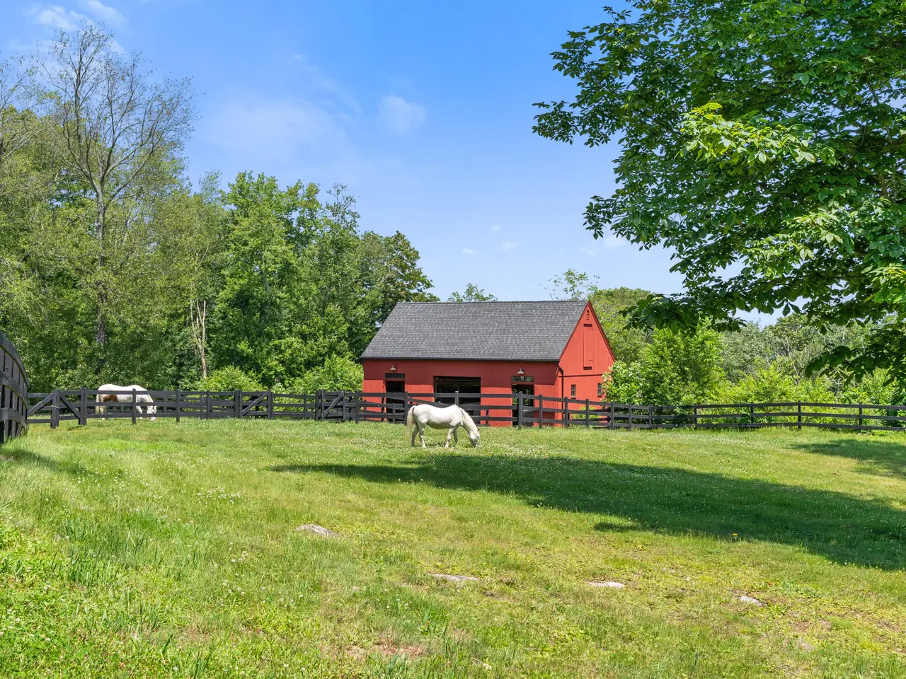 LUXE MODERN FARMHOUSE w/4-STALL BARN on OVER 10 ACRES! Nestled deep within a private enclave of fine homes, this expansive 4-bed, 3.5-bath residence offers over 5,100sf of artfully designed living space. At 31 Birch Hill Road, you don't just live...you exhale. The covered front porch sets the tone for the beautifully coordinated aesthetic that awaits just beyond. A light-filled floor plan is accentuated by 9' ceilings, gorgeous hardwood floors, & elevated millwork. Foyer opens to formal living room flowing into home office w/fireplace. A true chef's dream, the kitchen is anchored by a Viking range, matching hood, & seamlessly integrated SubZero refrigerator door & drawer arrangement. Soapstone countertops pair exquisitely w/custom cabinetry providing high design & practical storage. The oversized island doubles as a prep station w/informal dining counter. The space effortlessly continus into adjoining family room, w/2nd flireplace, & spacious dining area. Walls of windows & French doors offer glimpses of surrounding scenic landscape. Main level continues w/2nd family room/den, half bath, laundry room, & access to attached 3-car garage. Upstairs, the primary bedroom is a peaceful retreat, including lounge room, spacious sleeping area, 2 walk-in closets, & ensuite bathroom w/soaking tub, walk-in shower, & dual vanities. 3 additional bedrooms, w/1 featuring ensuite bathroom access, & another full bath servicing upper level. Adding flexibility for the future, a walk-up attic remains unfinished, yet offers exciting potential for additional living space. Whether envisioned as a studio, guest/in-law suite, or home office, this blank canvas awaits your personal touch. Function meets indulgence outside, where you'll find a pergola-covered brick patio for summer evenings watching fireflies glitter over the treetops. This home is complimented by a picture perfect 22'x36' post and beam barn, complete w/4 stalls opening to fenced paddocks, ideal for equestrian pursuits or as a versatile structure for hobbyists & collectors alike. Nature lovers & outdoor enthusiasts will find immense value in the abuting Johnston Preserve, comprising over 1,700 acres of protected land & extensive River-to-Ridge trail system. Beyond your immediate surroundings, enjoy proximity to numerous lifestyle & community amenities, including Fox Hopyard Country Club, ranked by Golfweek in 2024 as the #4 best golf course in CT, offering members a private pool, tennis/pickleball courts, & casual to fine dining overlooking the hillside landscape. Chester-Hadlyme Ferry, Devils Hopyard Air Field, & Hamburg Cove are just a few further highlights as to why the region continues to draw discerning homeowners seeking a refined rural lifestyle within reach of cultural & commercial hubs. Other notable features include professionally landscaped grounds, irrigation system, whole house generator, home audio system, hardie board siding, to name a few. This residence offers more than just a place to live - it provides a setting for life to unfold. Whether your dreams include space for pets to roam, weekend gatherings under a clear starlit sky, or simply the peace of stepping out your door into serenity without isolation, this property delivers on every level. A special offering not to be missed.